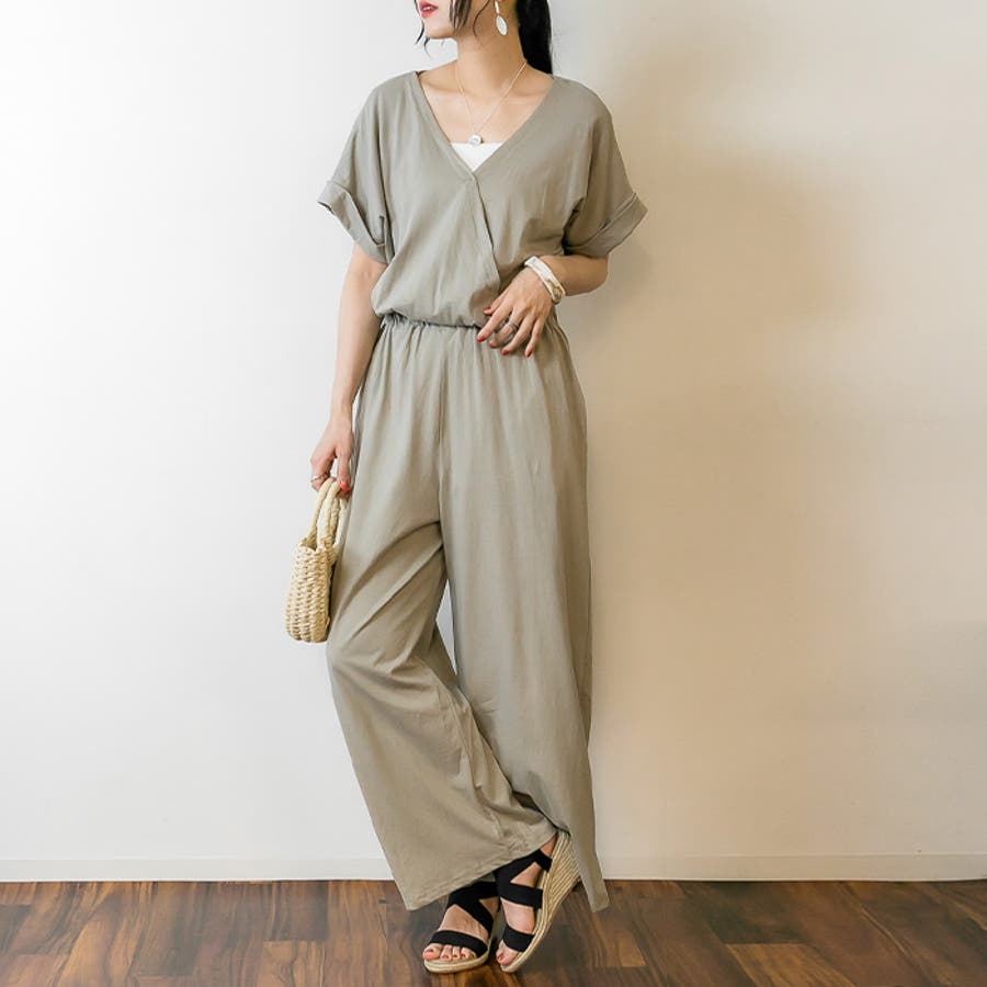 とても着やすくて涼しいので、暑い日に活躍してくれそうです!さん (30代 / 女性 / 身長155~160cm )購入アイテム:カラー オールインワン-グレーベージュサイズ FREEいつものボトムスサイズ:サイズ感:少し大きい - ワンピースの方はちょうどいい!投稿日:2021.09.01