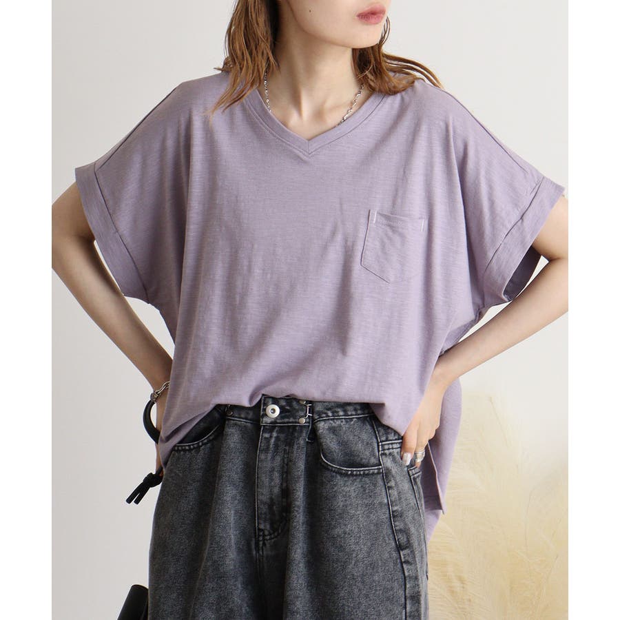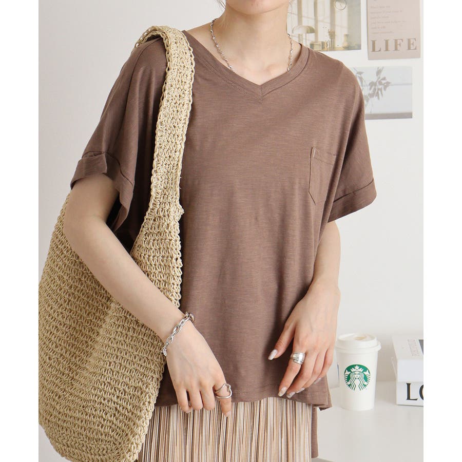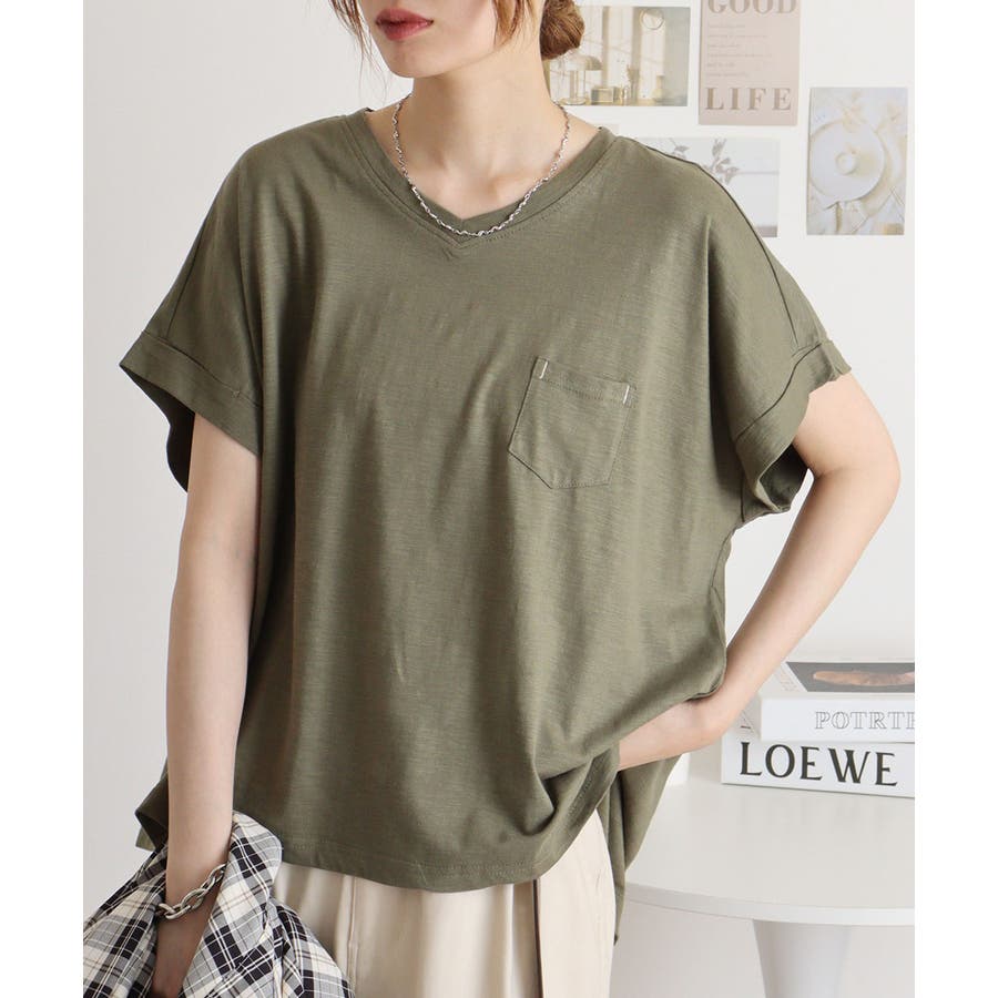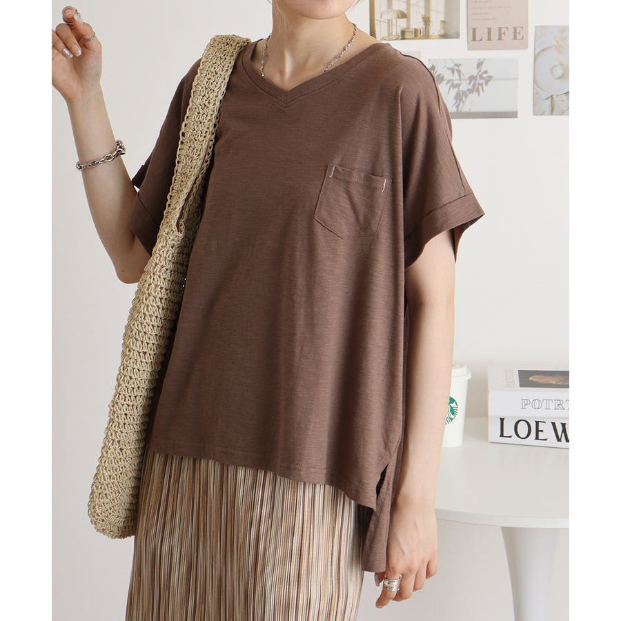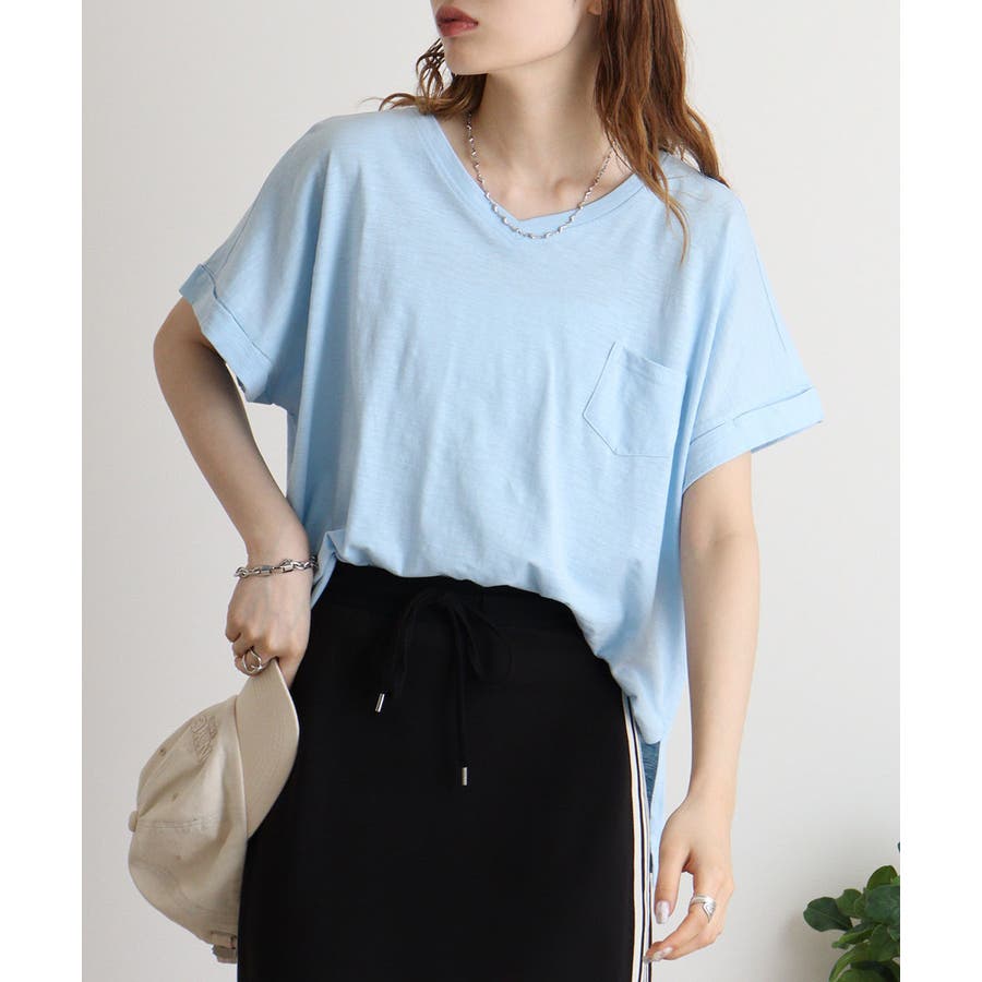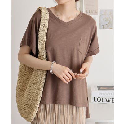 オーバーサイズポケット付きVネックTee