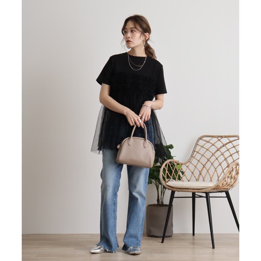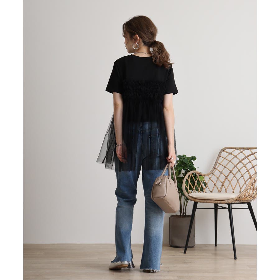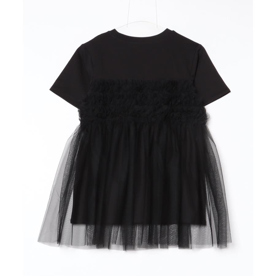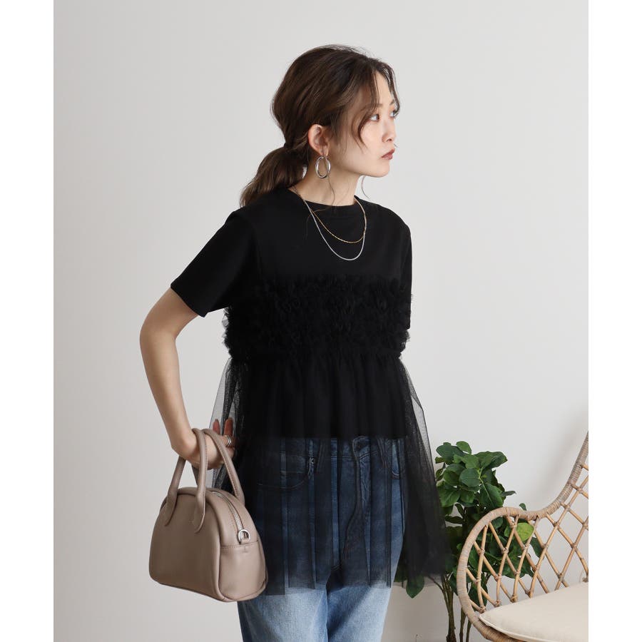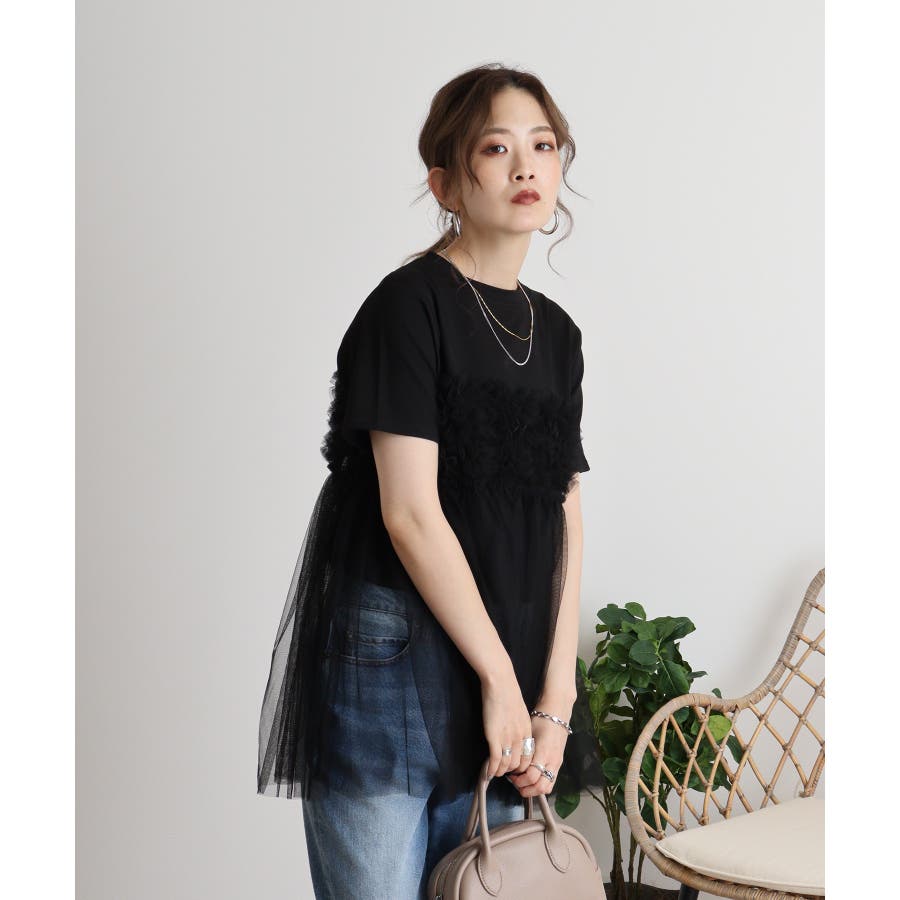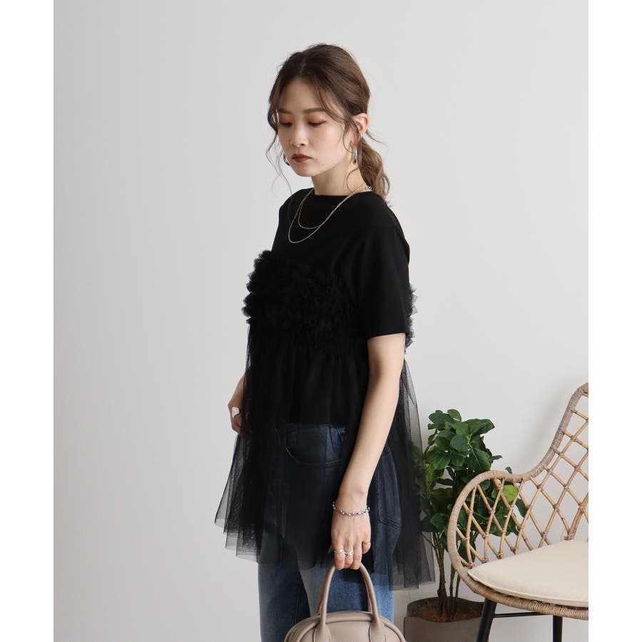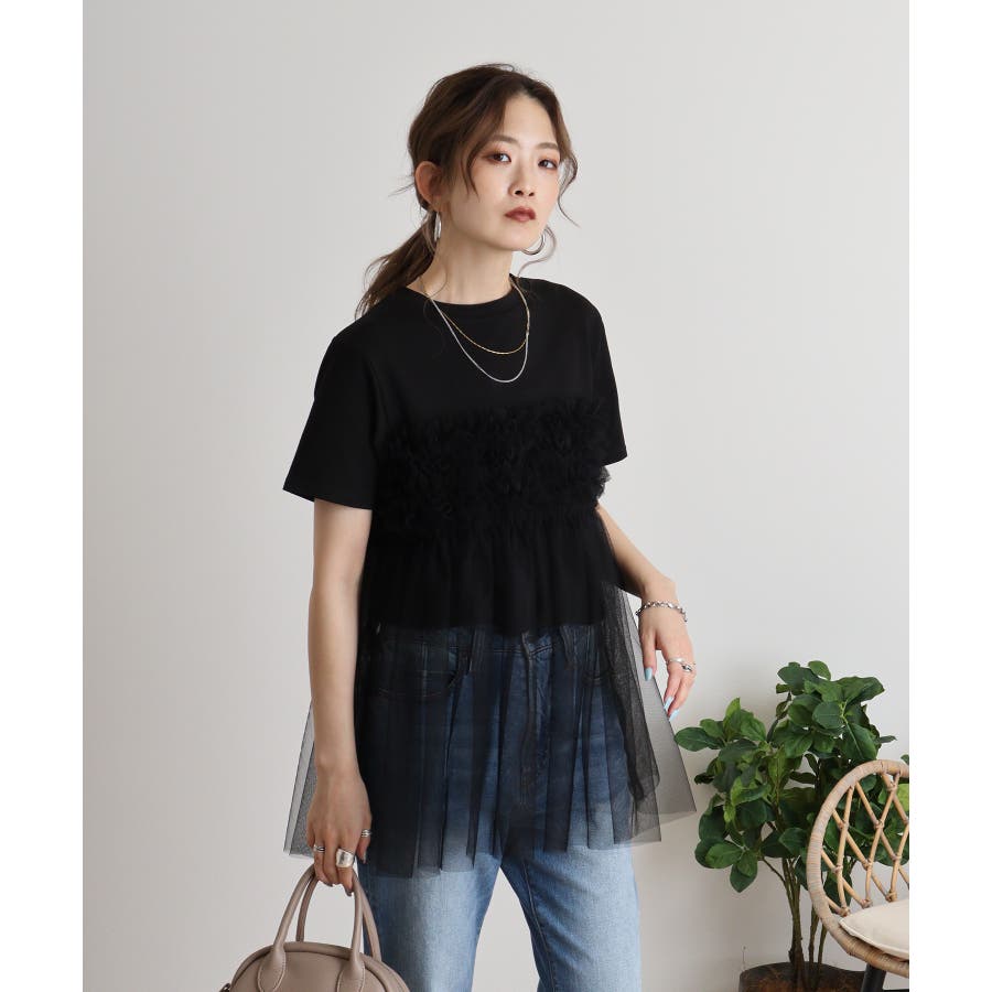 カジュアルなTシャツデザインとフェミニンなチュールの組み合わせが絶妙なバランスを生み出し、日常のコーディネートに特別感をプラスします。