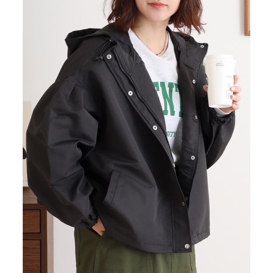 フード・裾にはアジャスター付きで、丸みのあるシルエットにアレンジすることも可能。