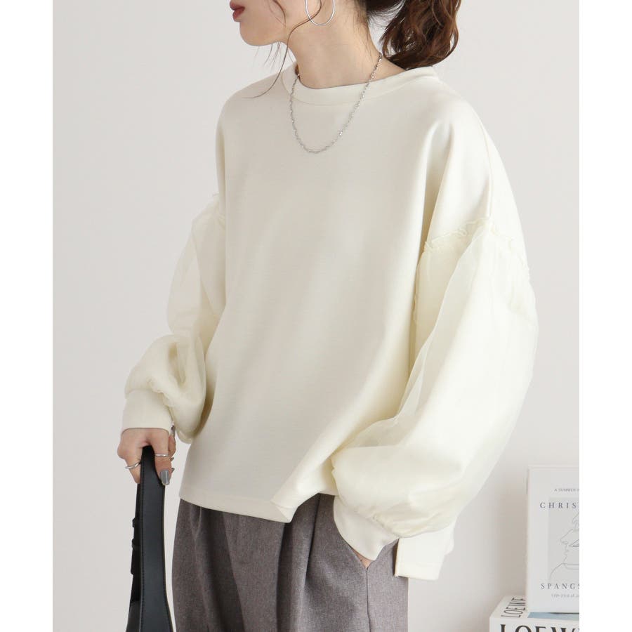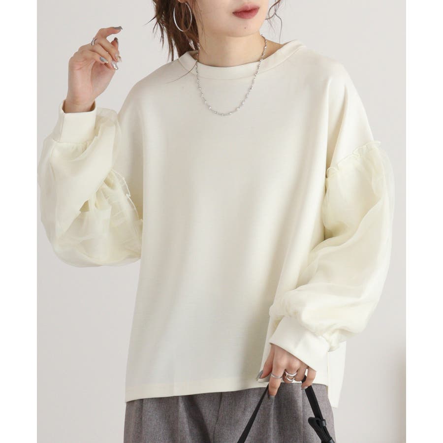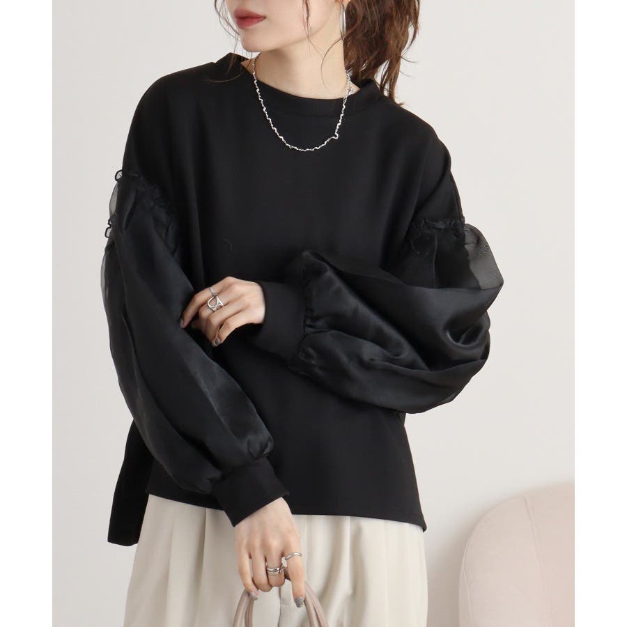 トレンド感溢れるボリュームスリーブと軽やかなオーガンジー素材が特徴のプルオーバーです。