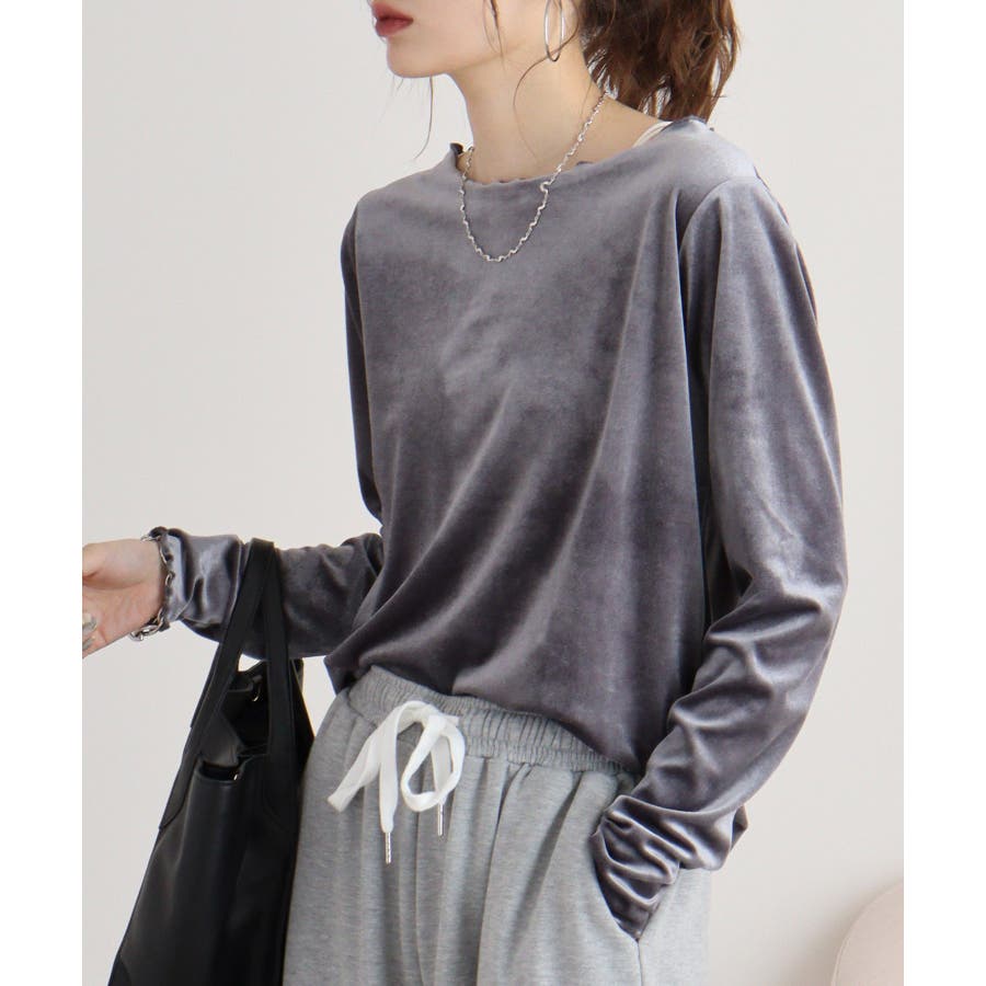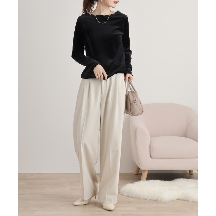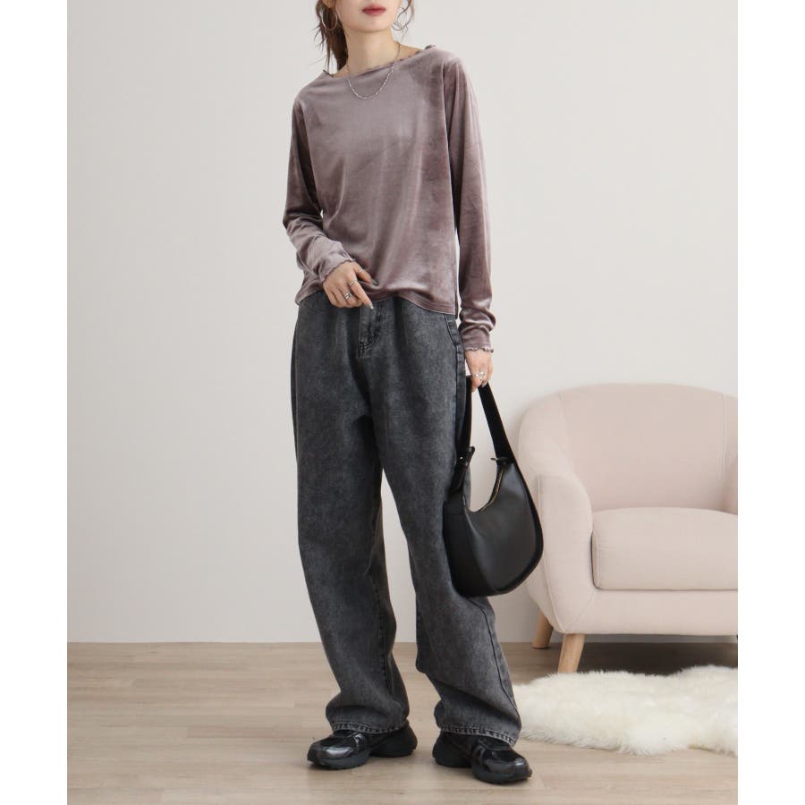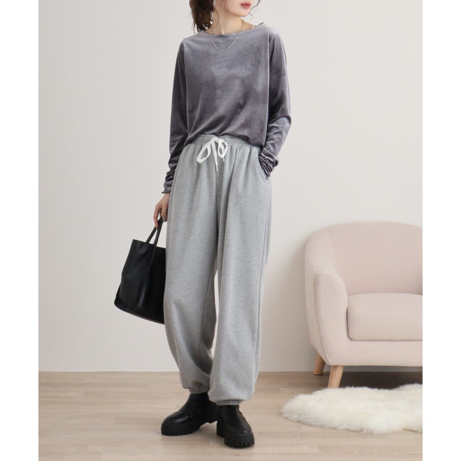 ベロア素材の光沢感と柔らかな肌触りが魅力の大人のカジュアルアイテム。