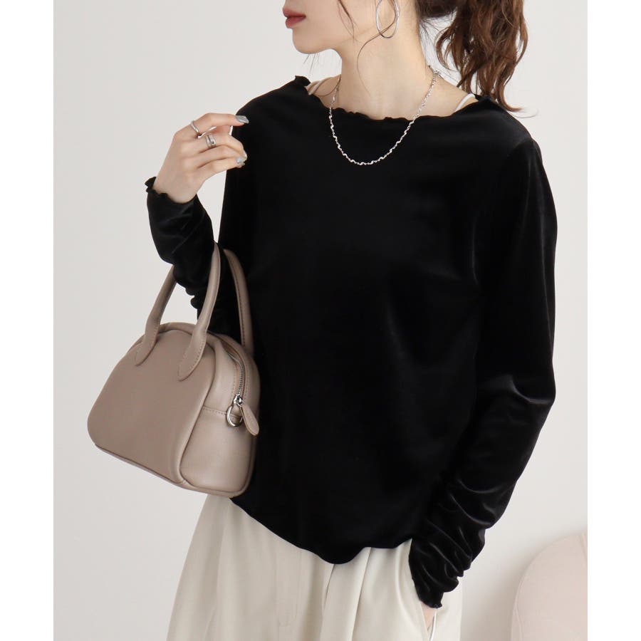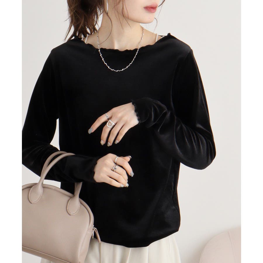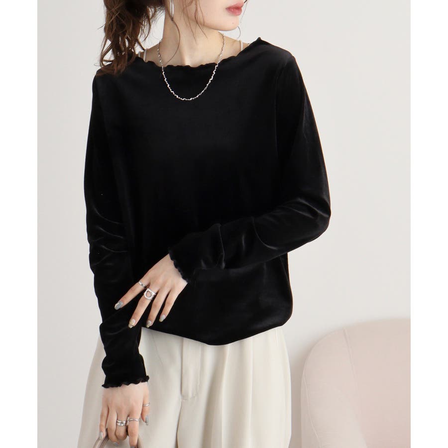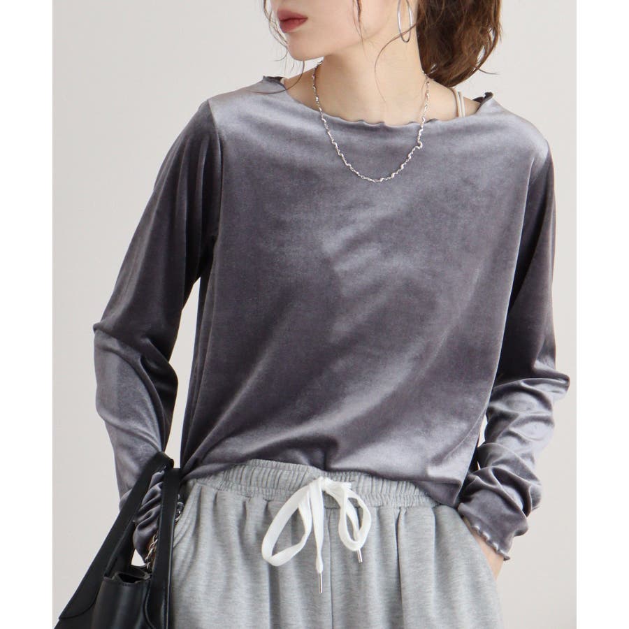 ベロア素材の光沢感と柔らかな肌触りが魅力の大人のカジュアルアイテム。