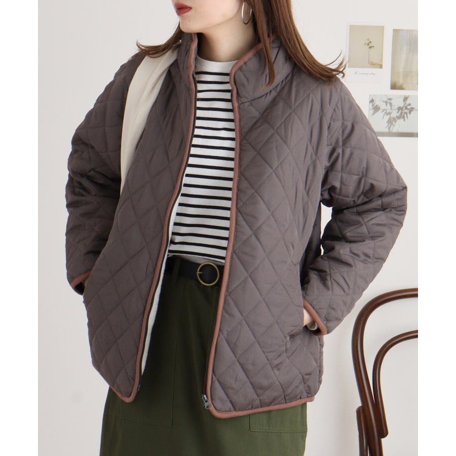 ひょうたんキルトのデザインが上品さをプラスした、暖かみのあるジャケット。