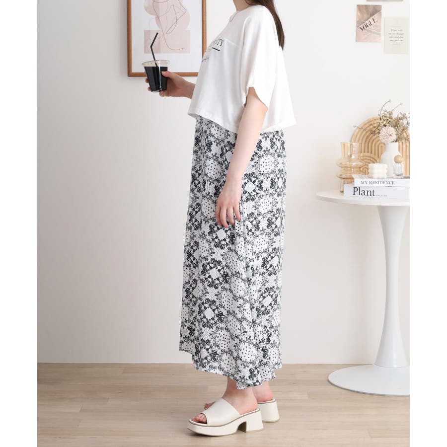 ャミワンピースは上品な小花柄にフレアシルエットが華やかさをプラス。歩くたびにふんわりと揺れる軽やかさが涼しげな印象です。