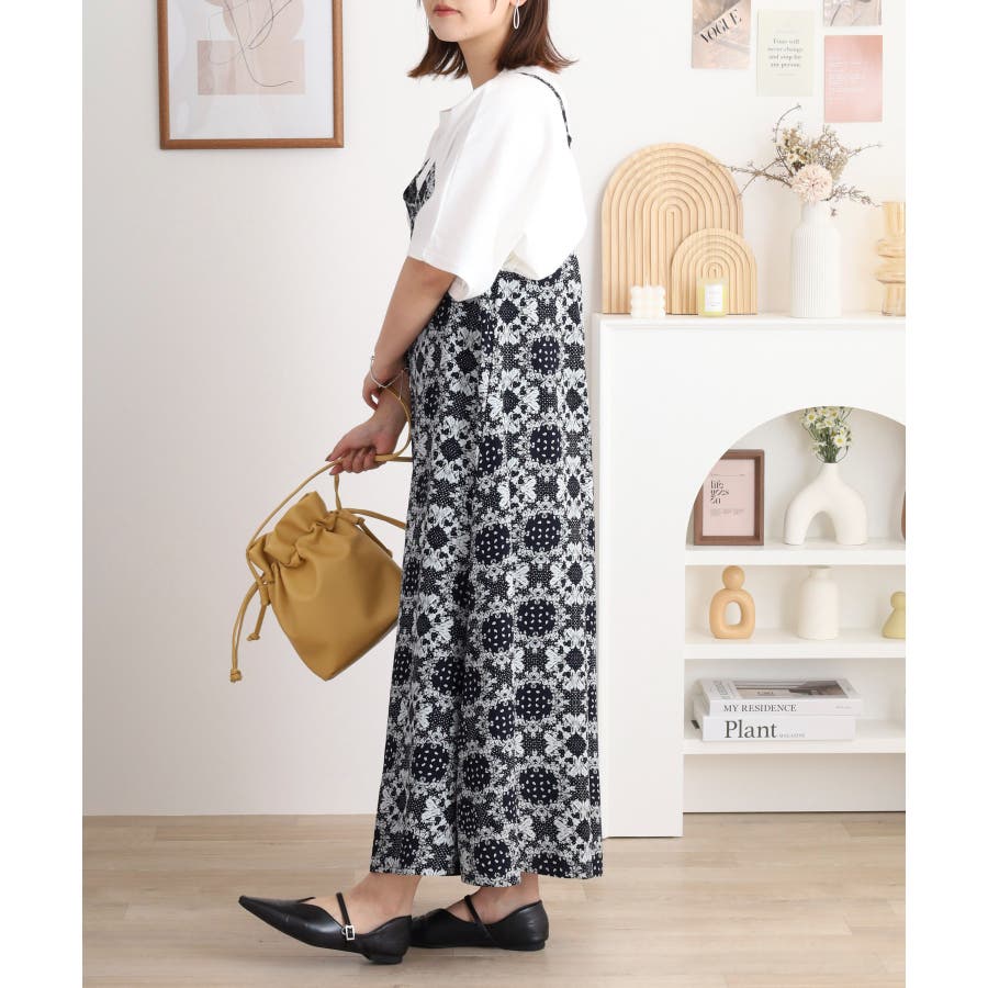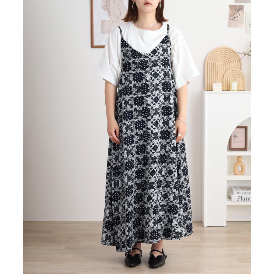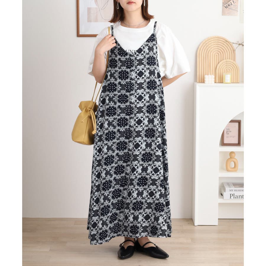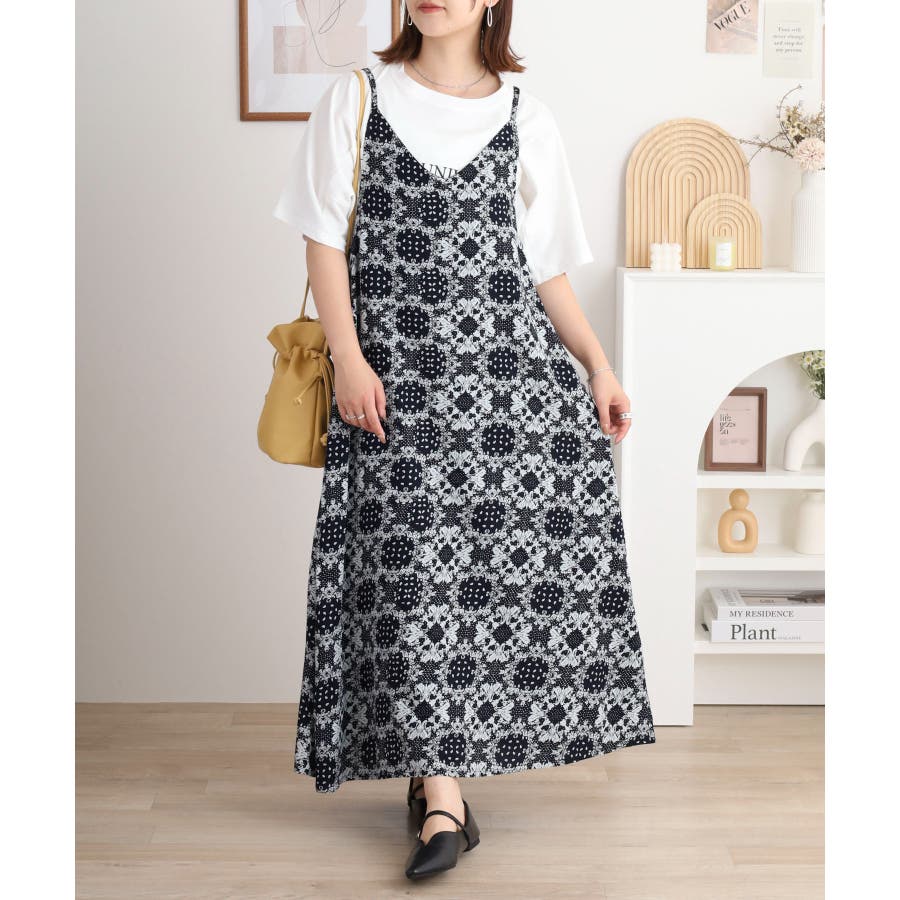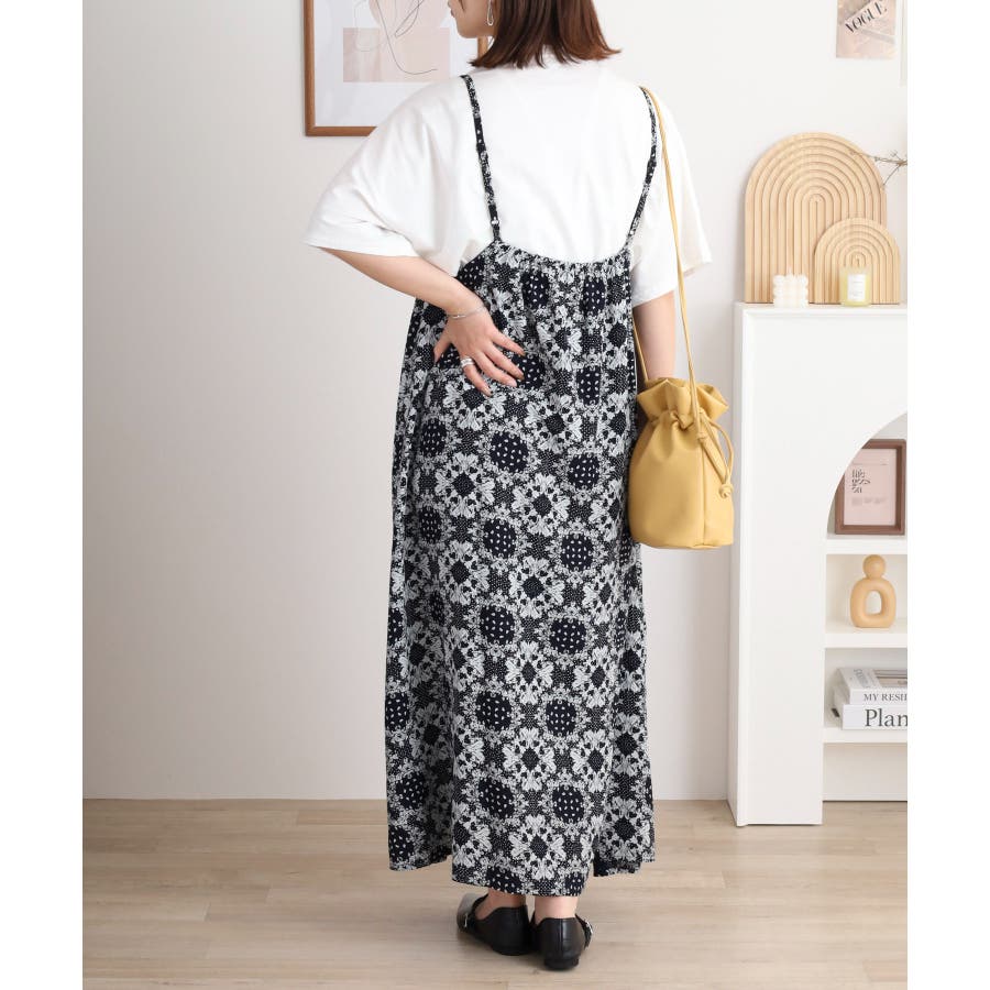レーヨンキャミOP+小花柄天竺Tシャツアンサンブル