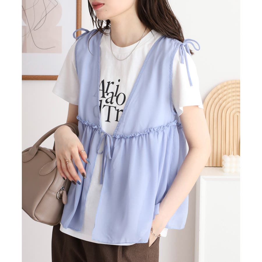 シフォンベスト+天竺AラインシルエットTシャツアンサンブル