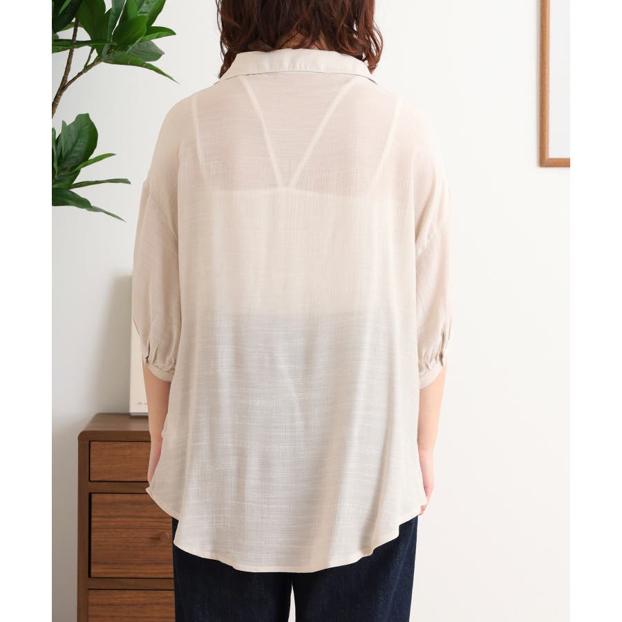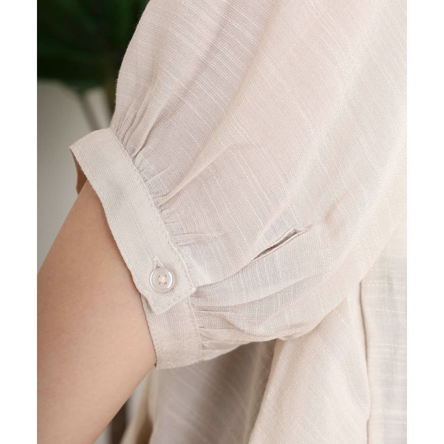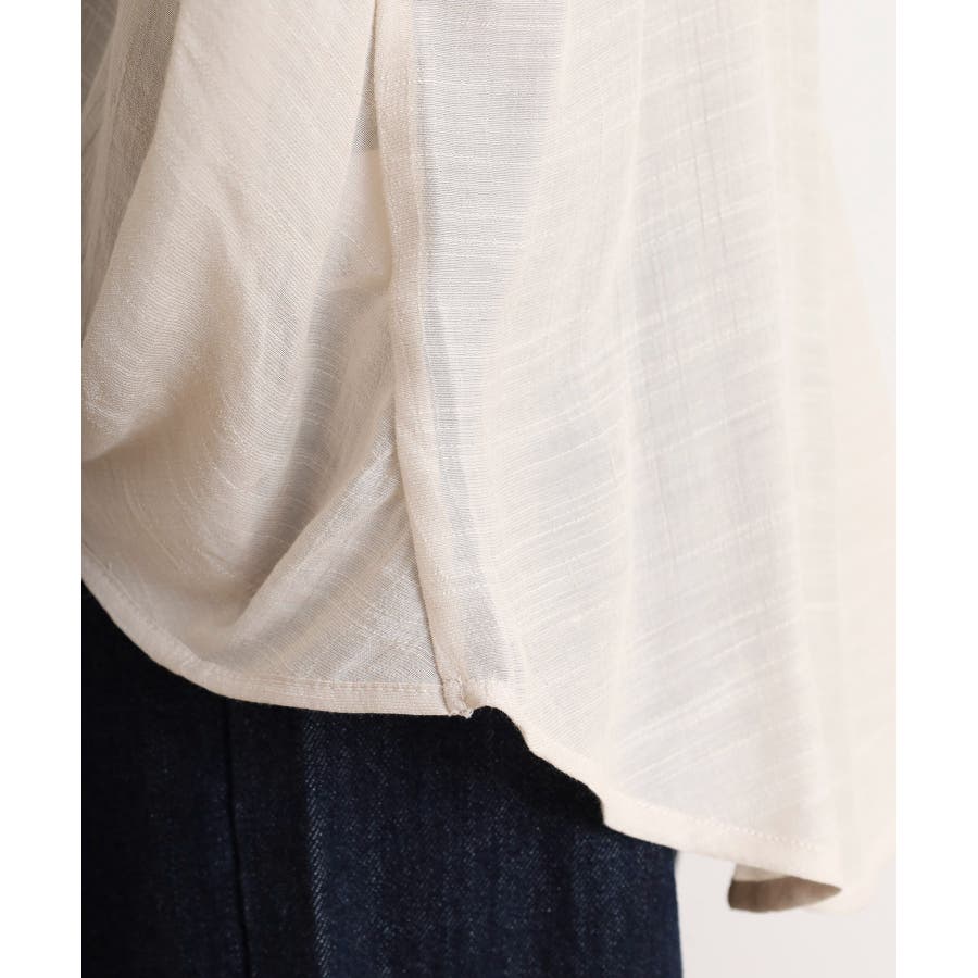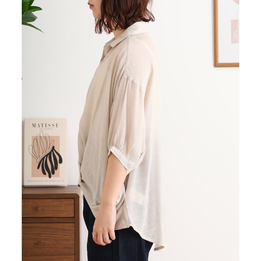 ナチュラルな風合いが魅力のシアー素材を使用し、涼しげな着心地を叶える一着。