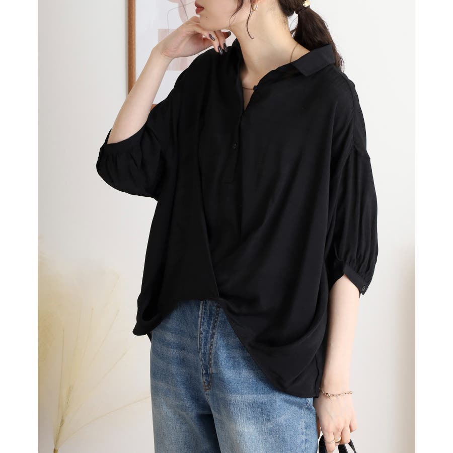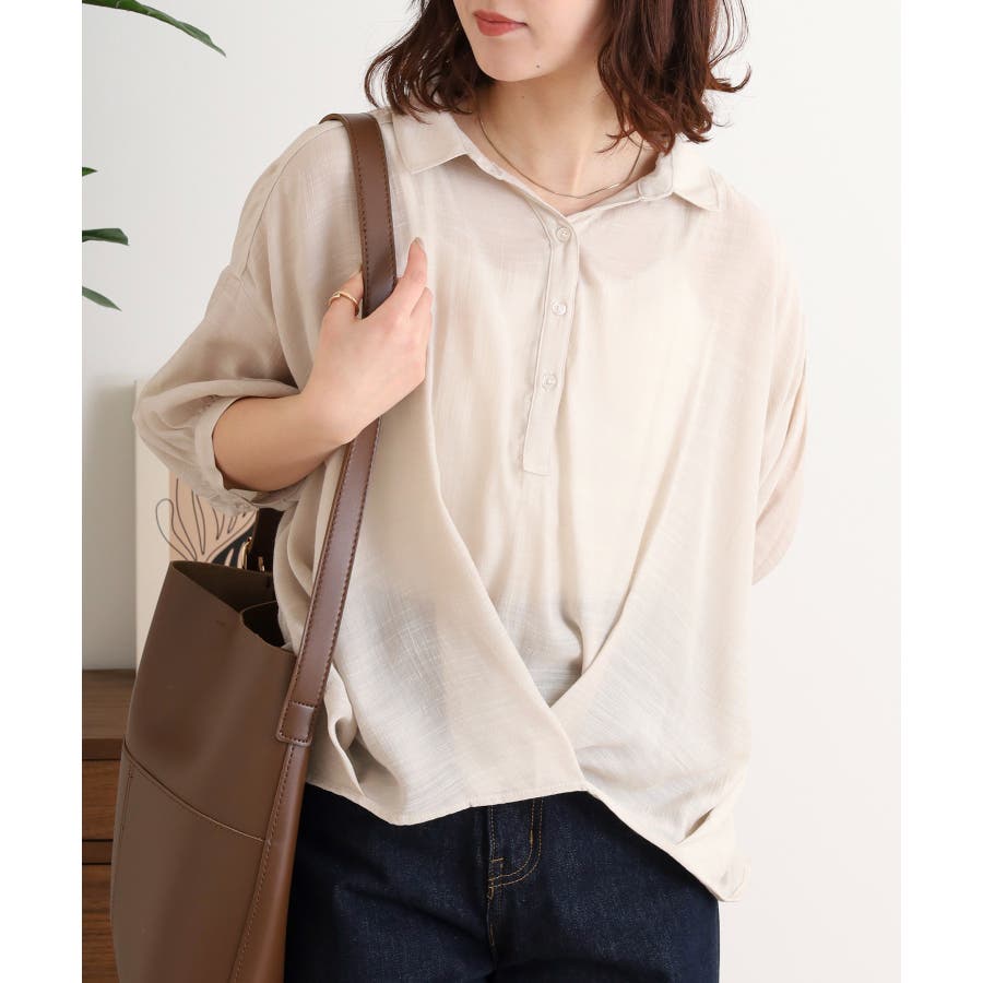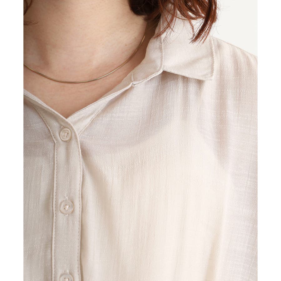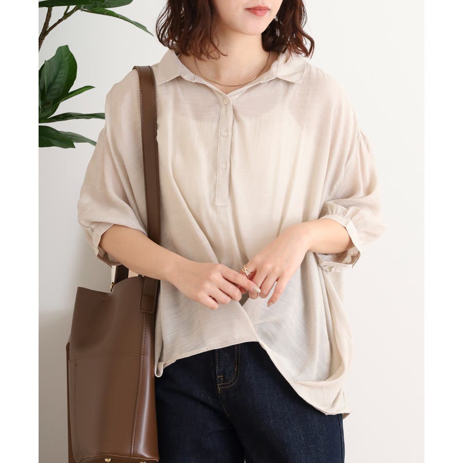 ナチュラルな風合いが魅力のシアー素材を使用し、涼しげな着心地を叶える一着。
