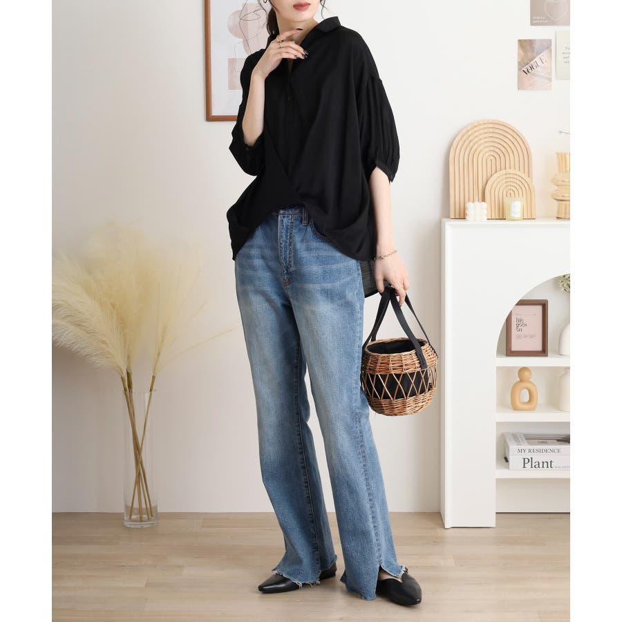 シンプルにデニムパンツ(ジーンズ)やイージーパンツ、ワイドパンツに合わせるカジュアルスタイルも◎