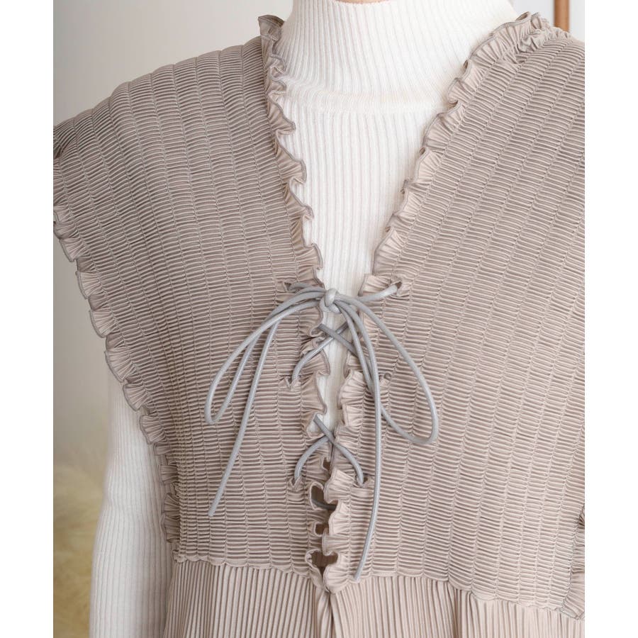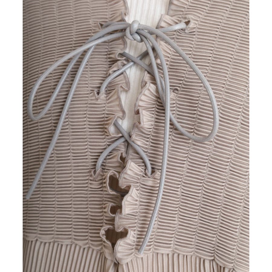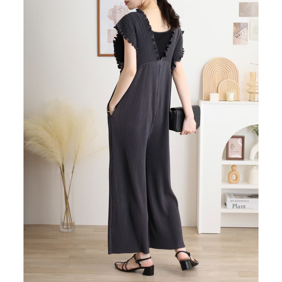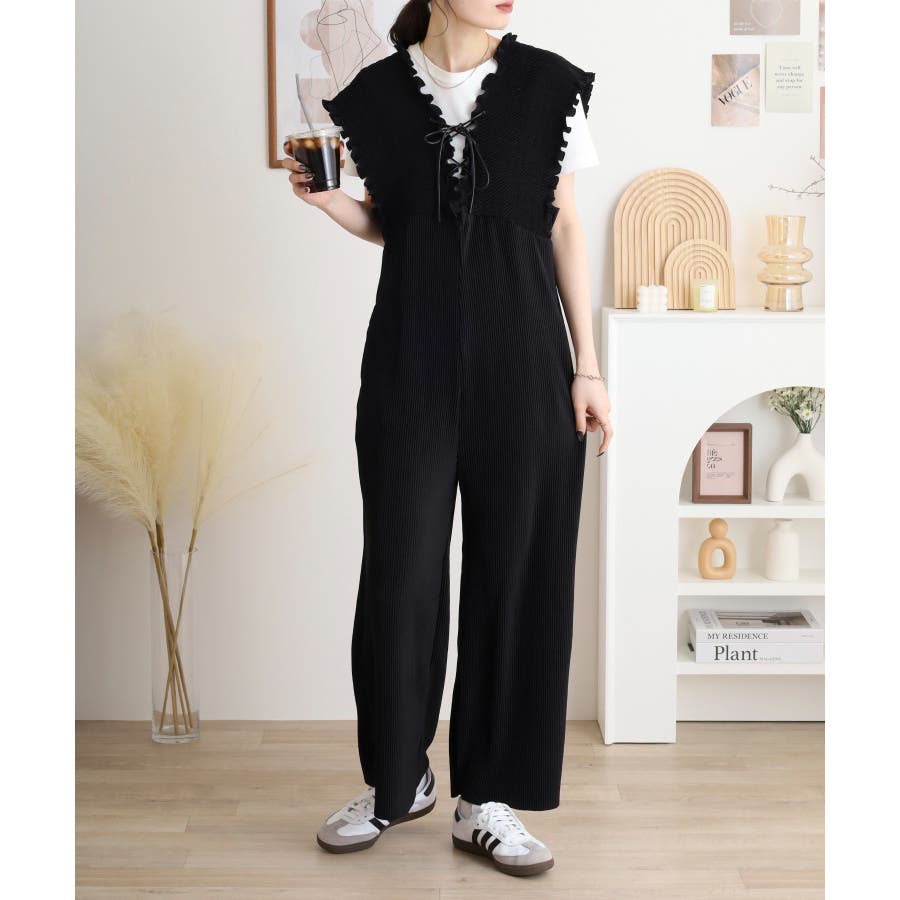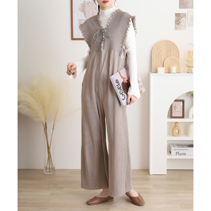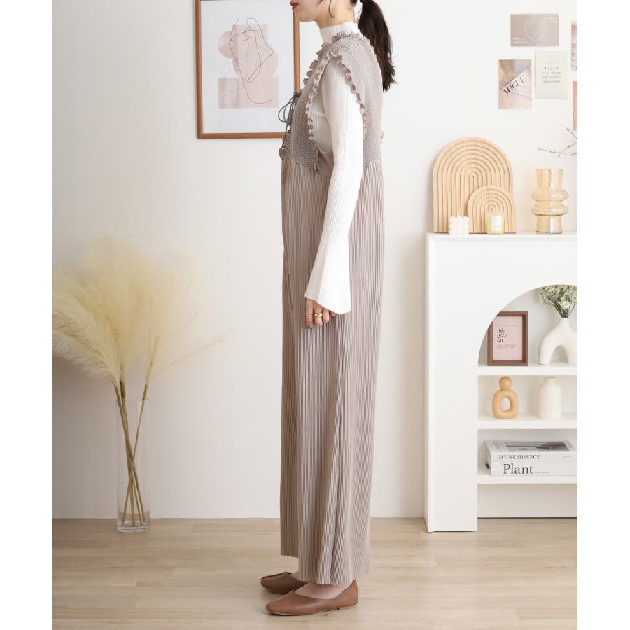 胸元レースアップギャザーオールインワン