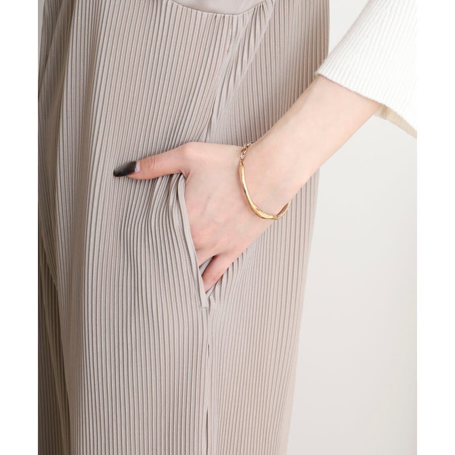 軽やかなポリエステル素材を使用し、動きのあるプリーツワイドパンツは好みの長さにカットOK。