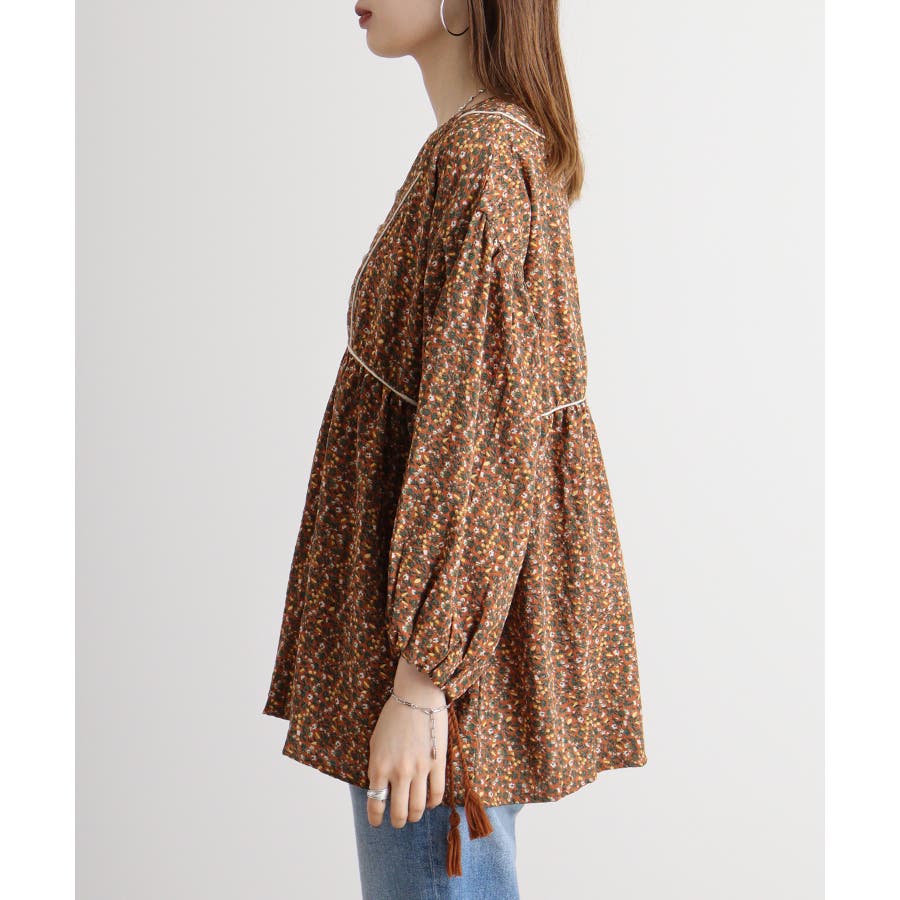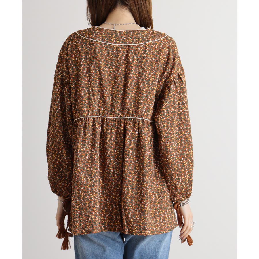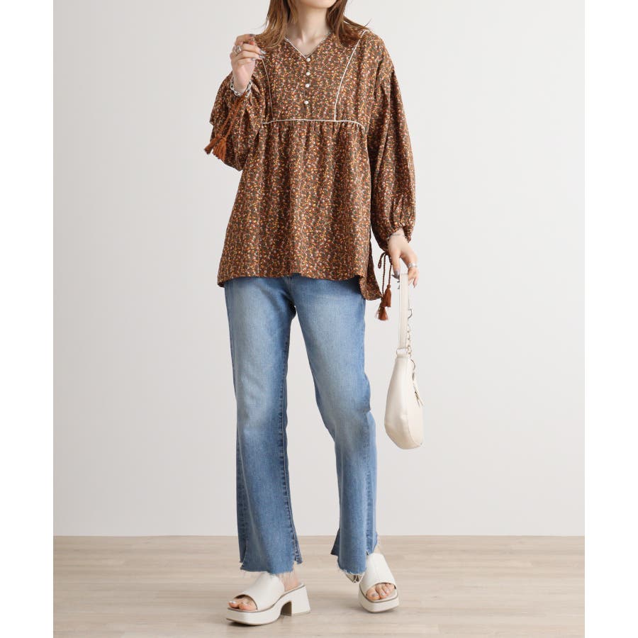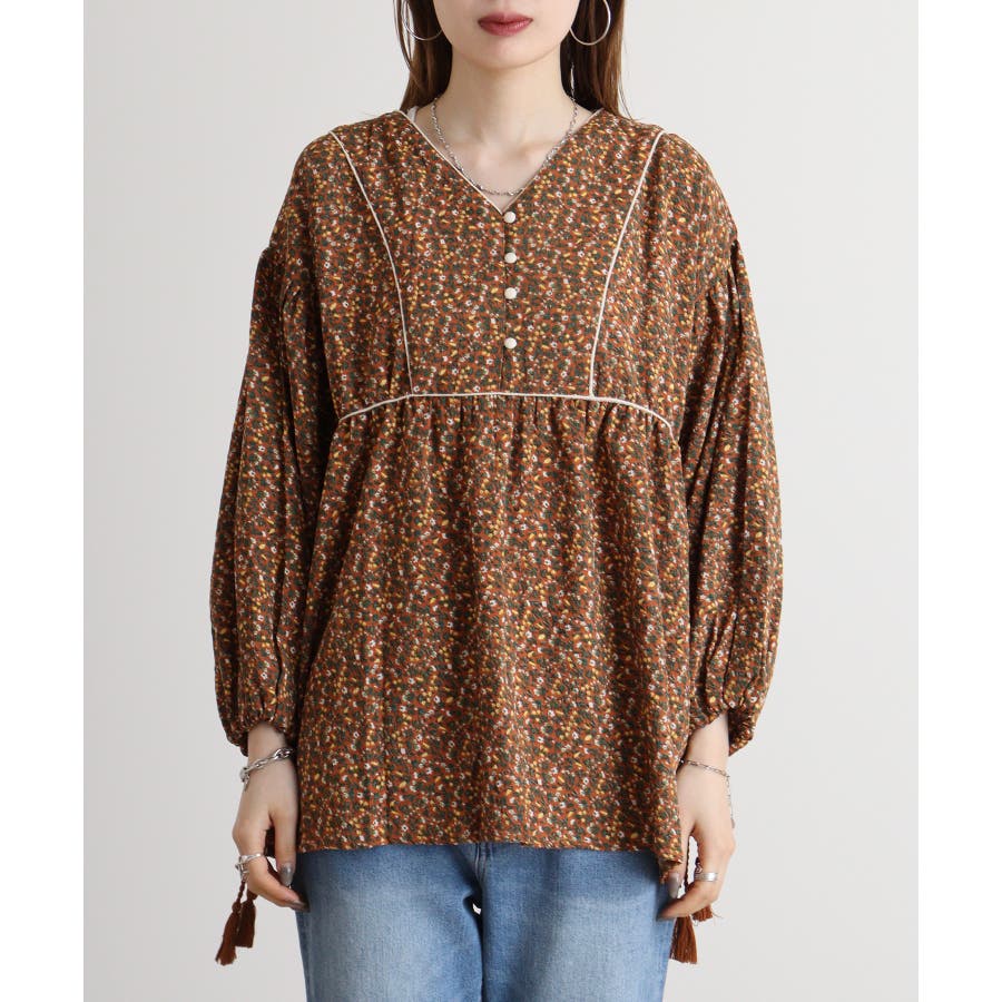 ジャガードプリント長袖トップス