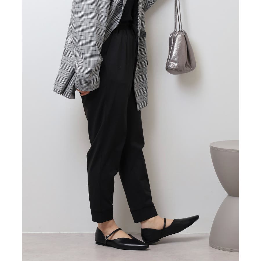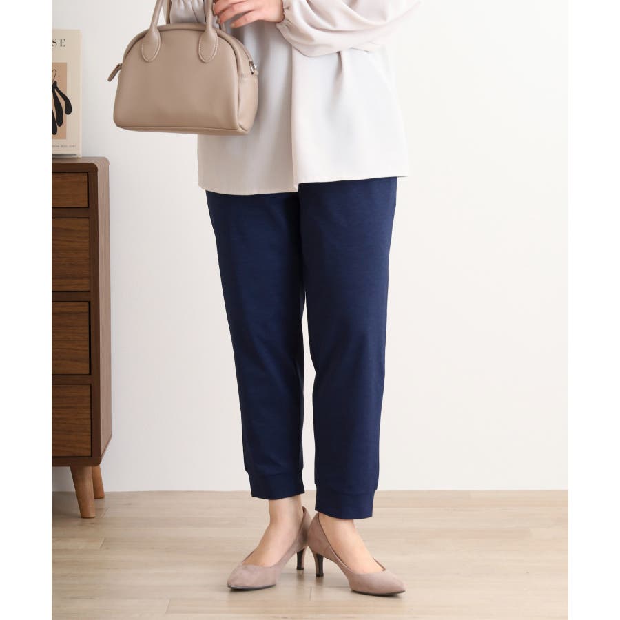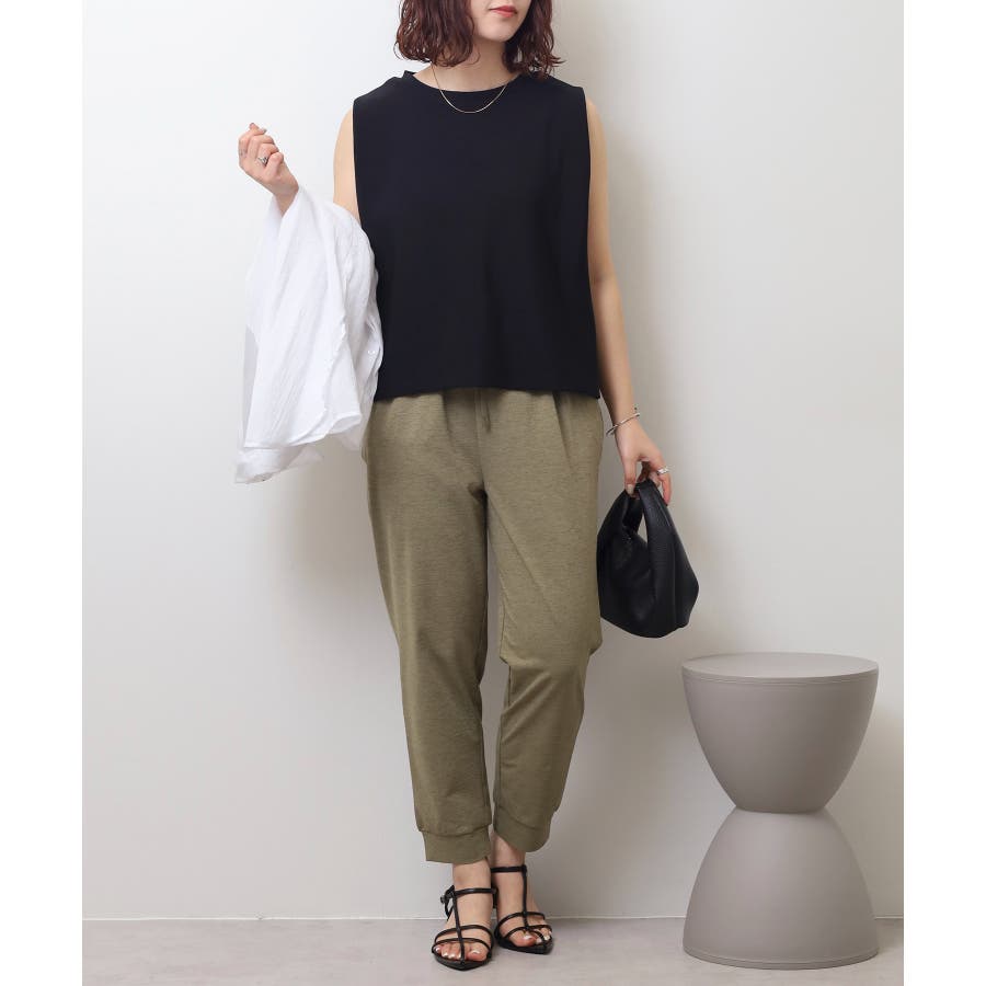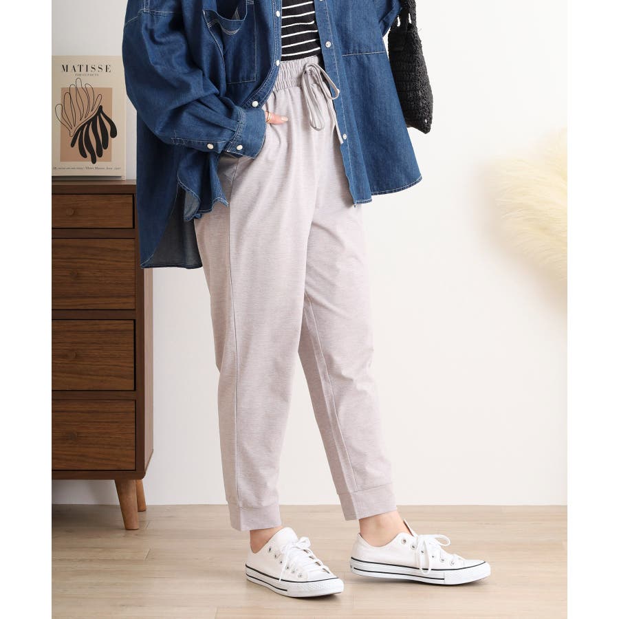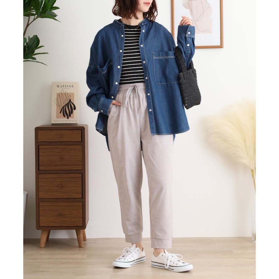 裾にかけて細くなる美脚シルエットが、カジュアルながらもきれいめな印象をプラスします。