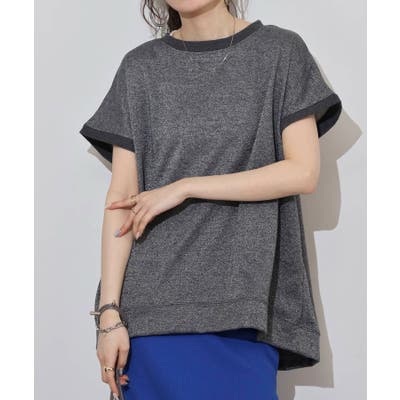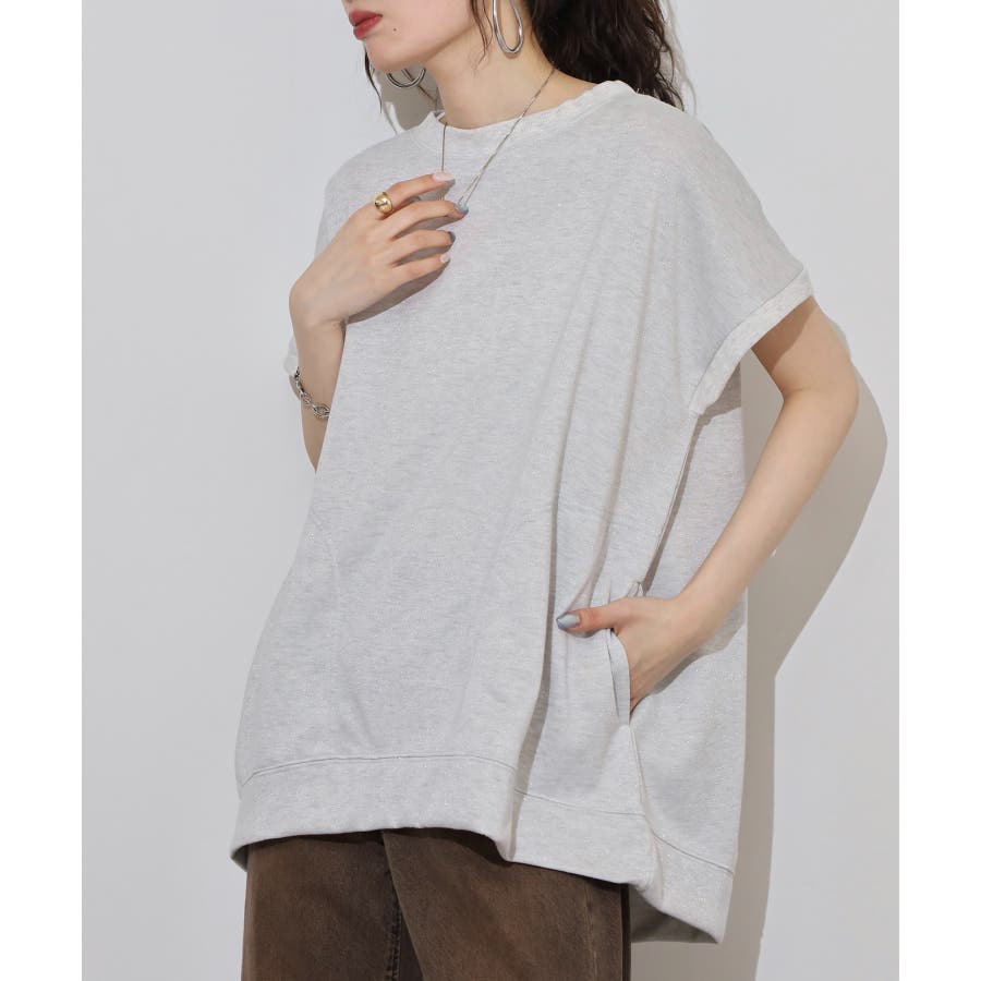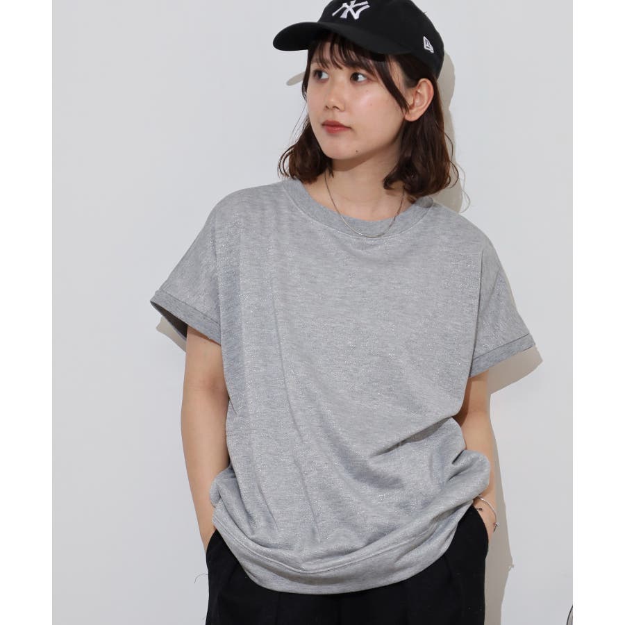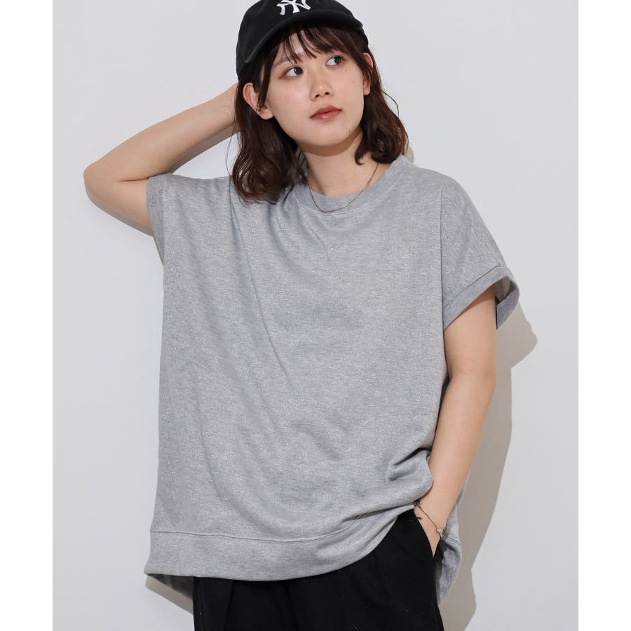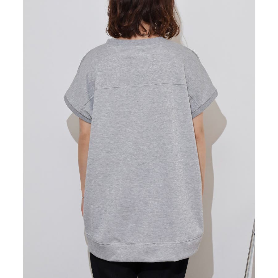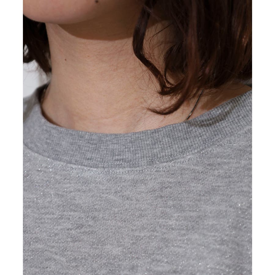 ラメ混裏毛デザインフレンチスリーブプルオーバートップス