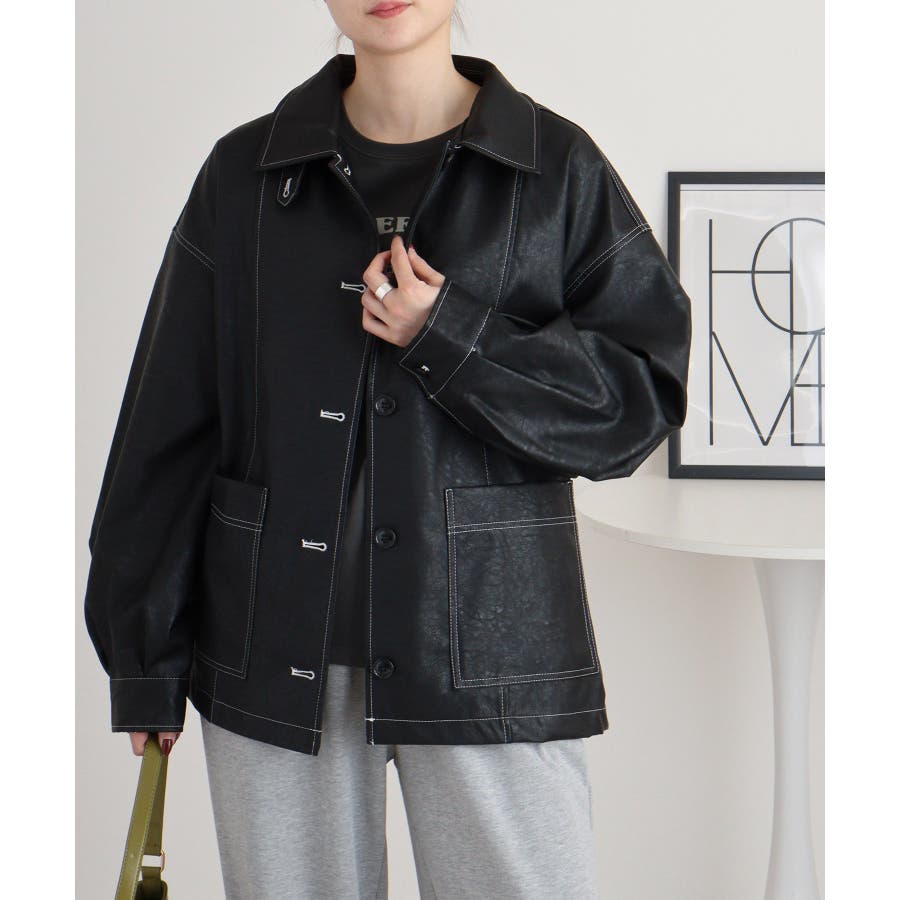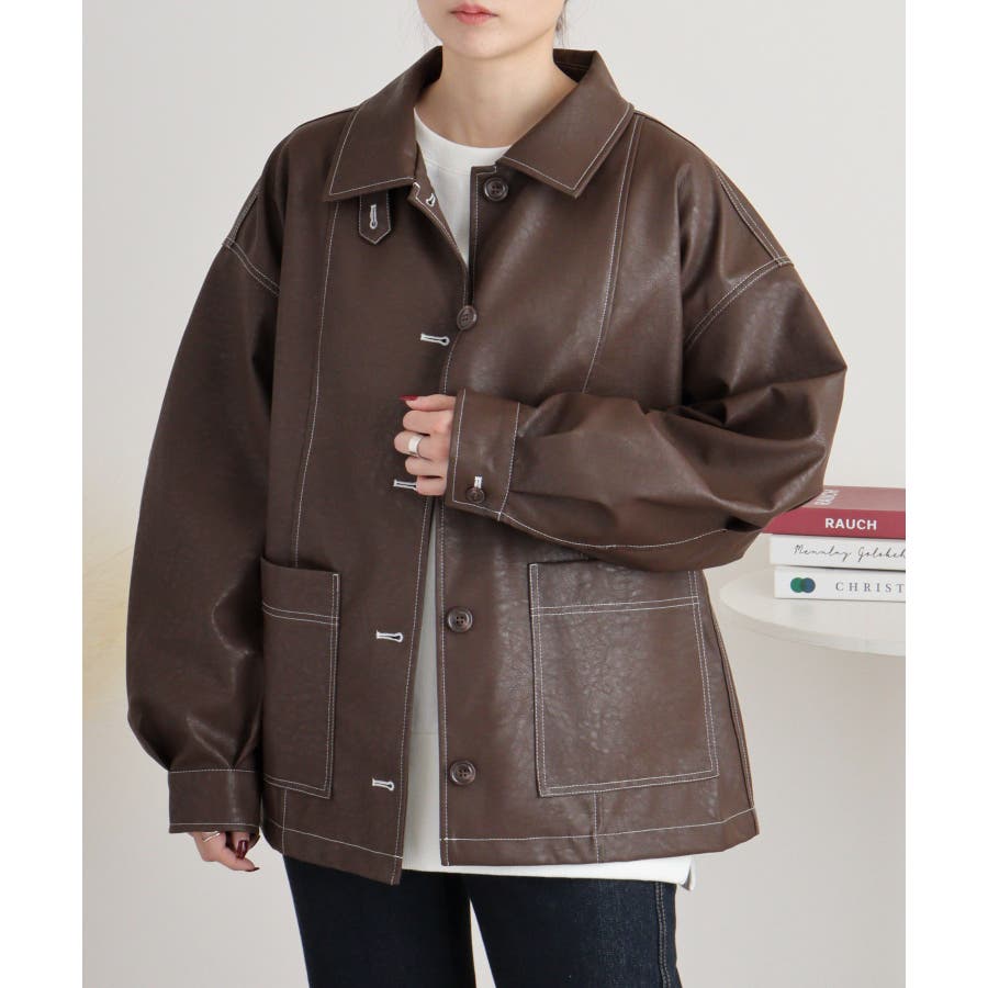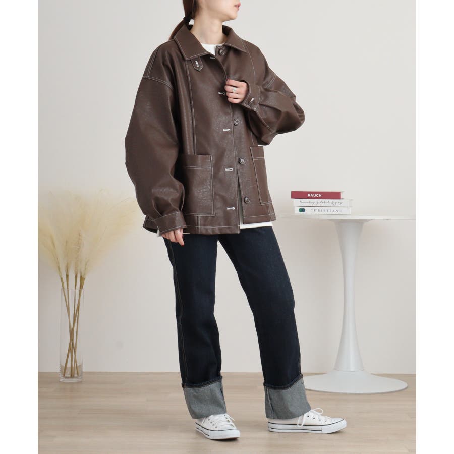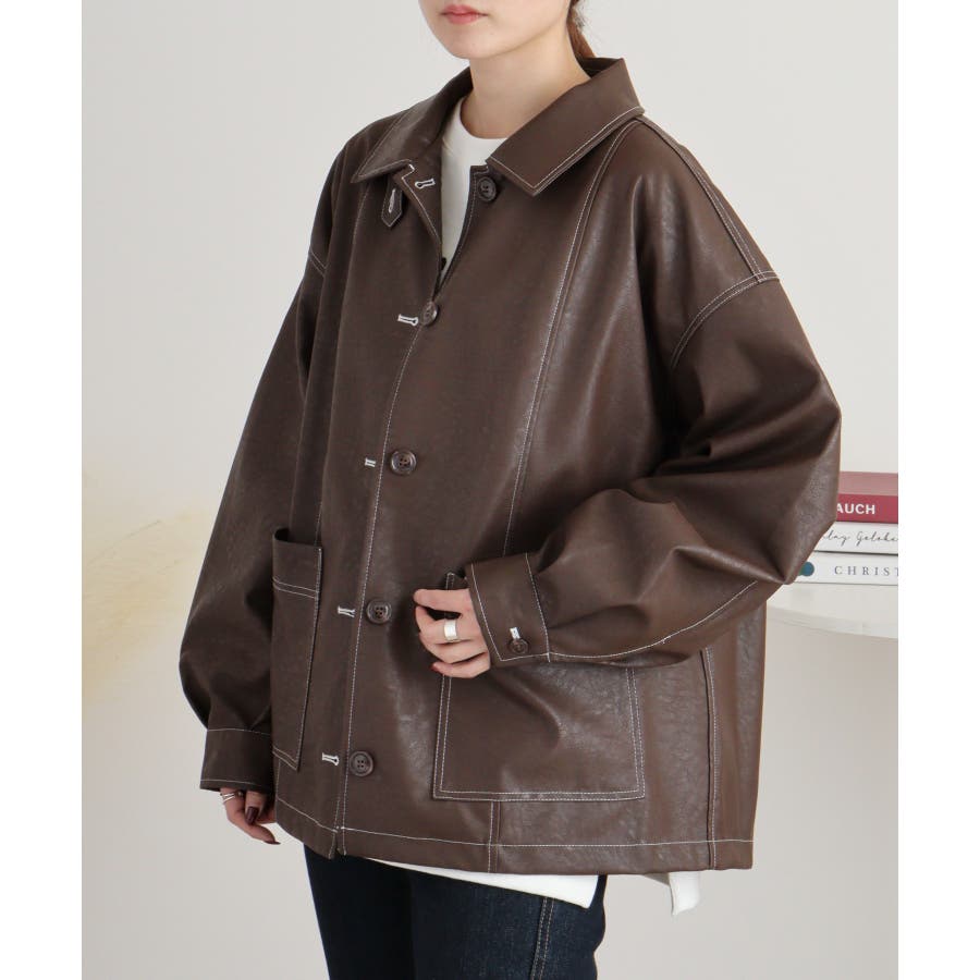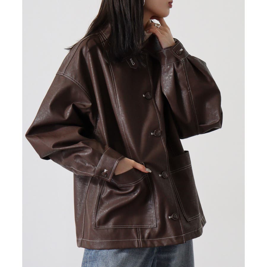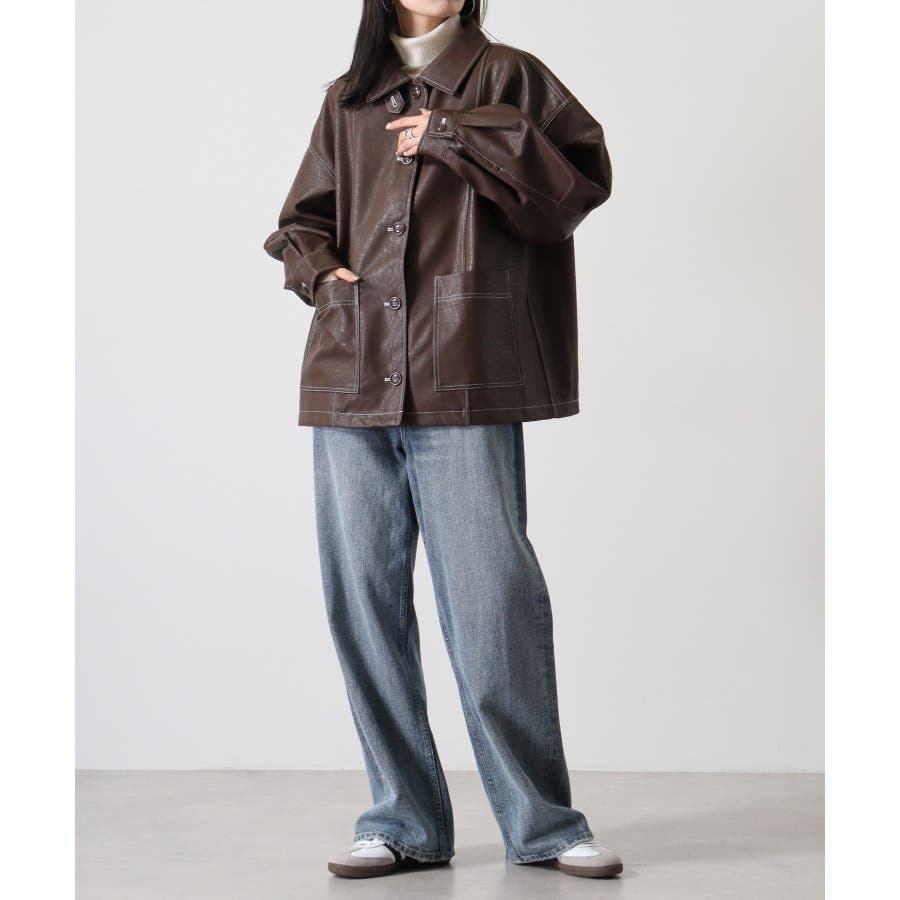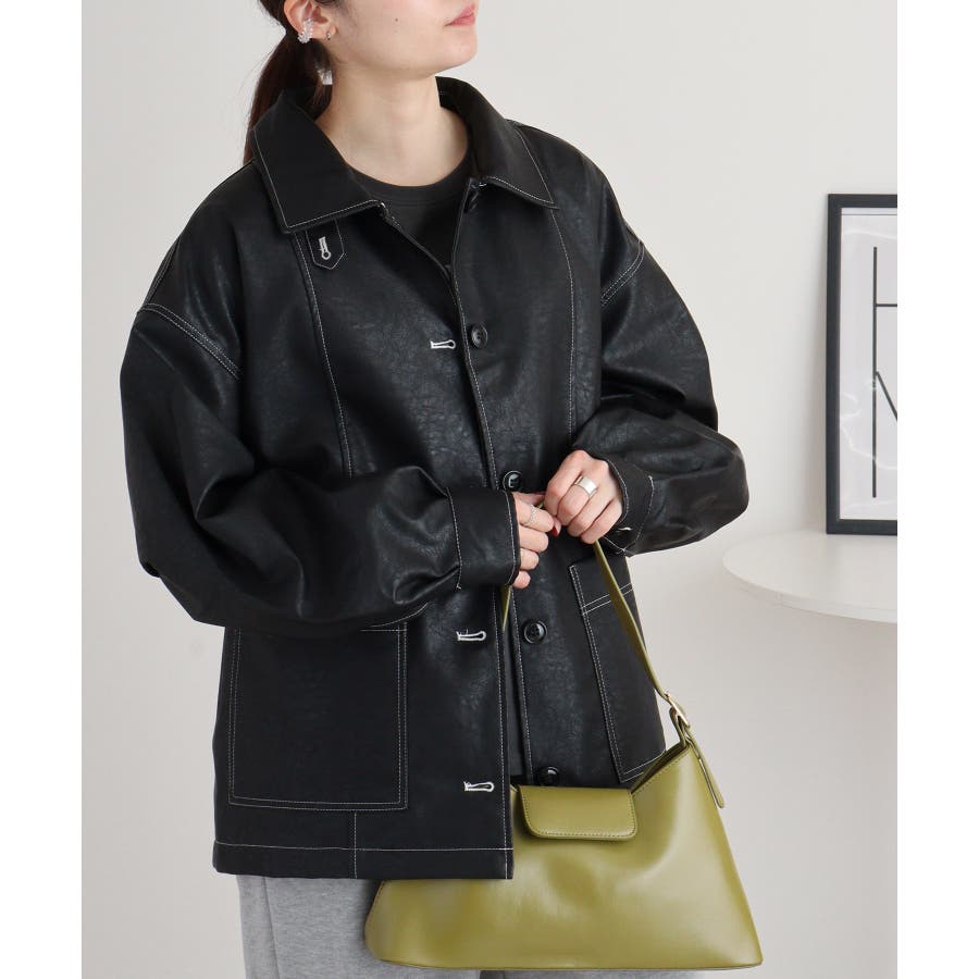 今年のトレンドを押さえたヴィンテージライクなフェイクレザー素材が魅力の一着。