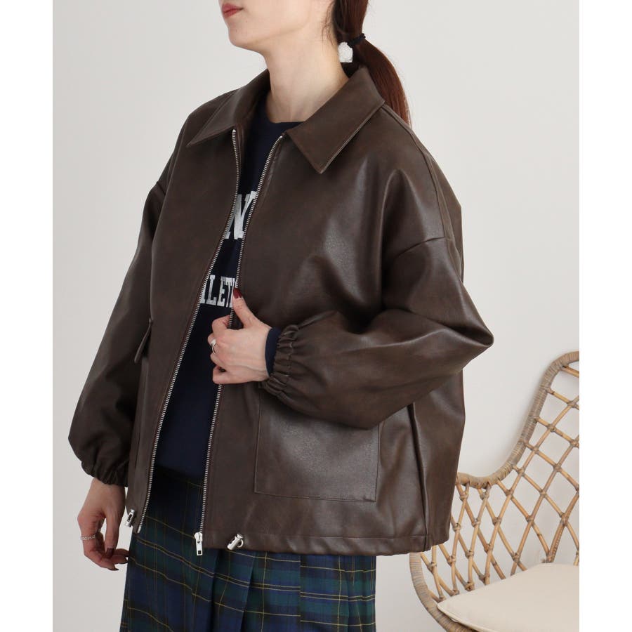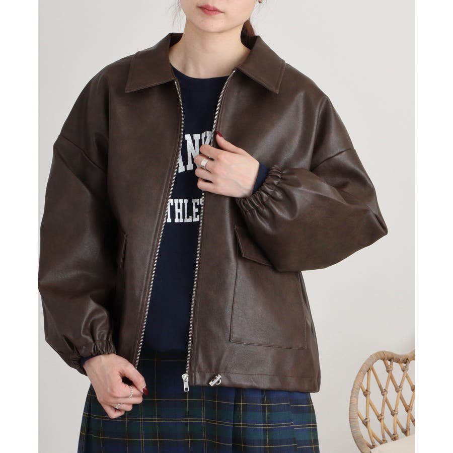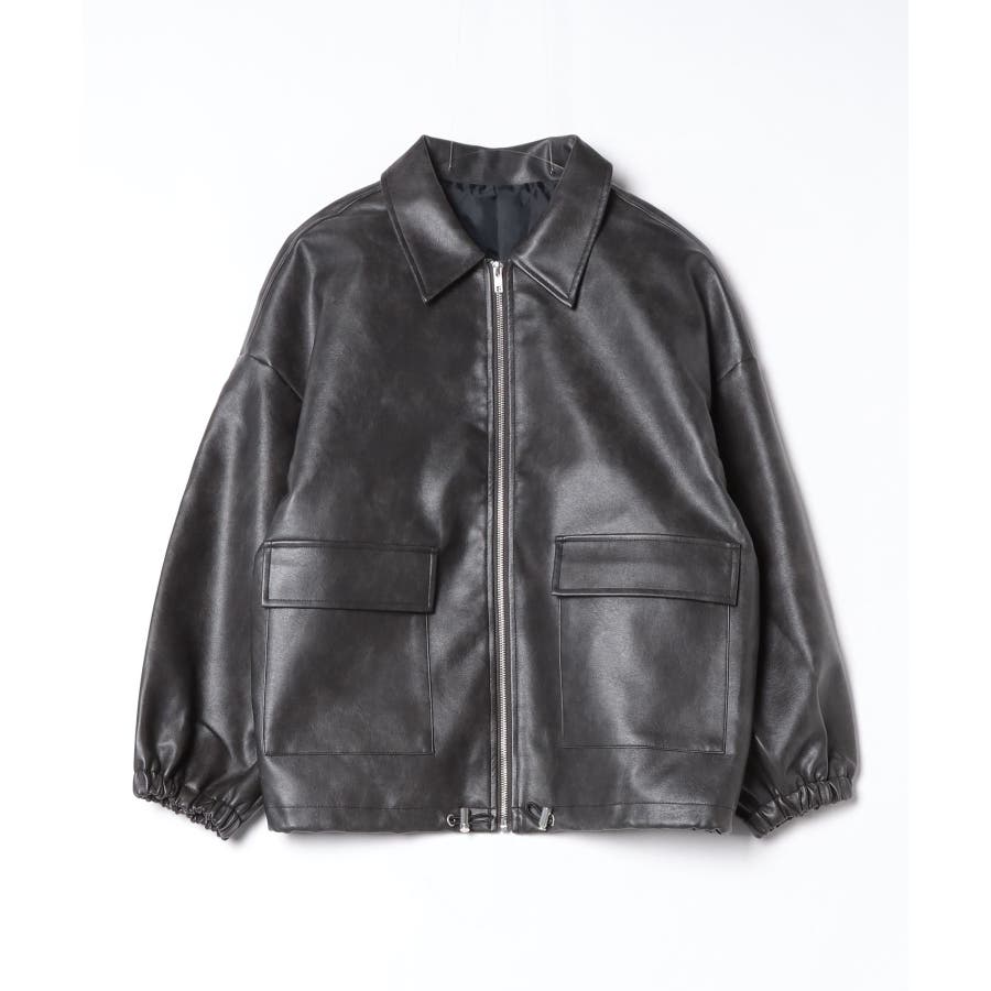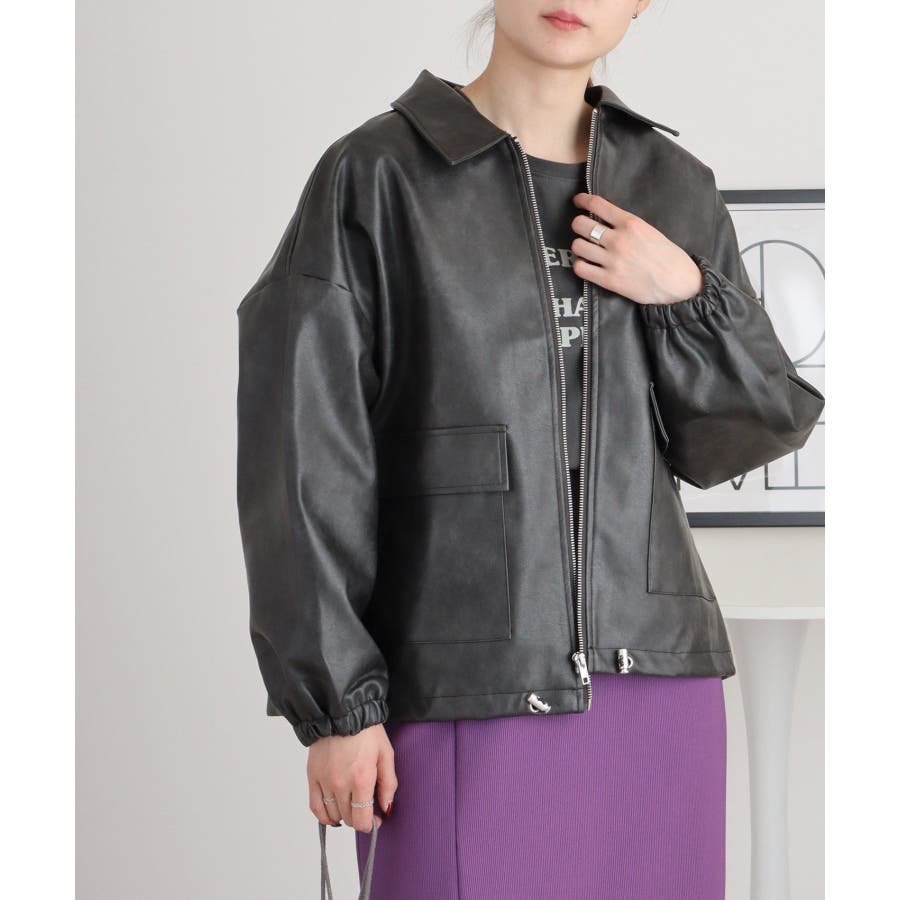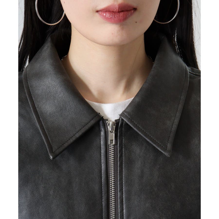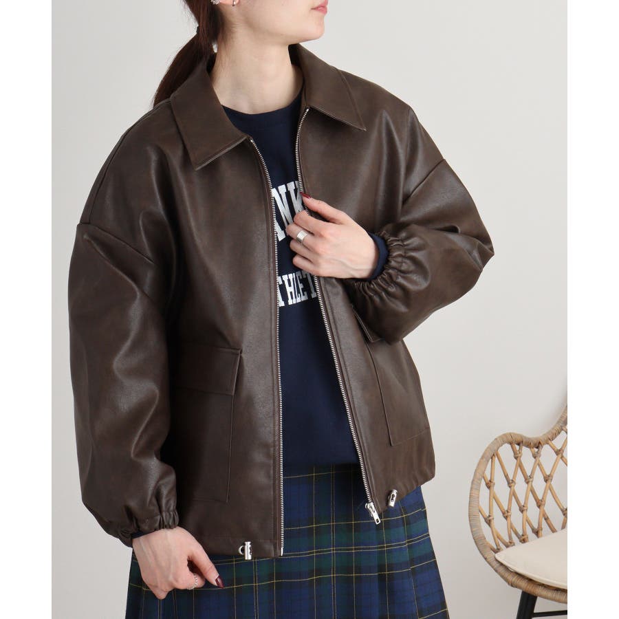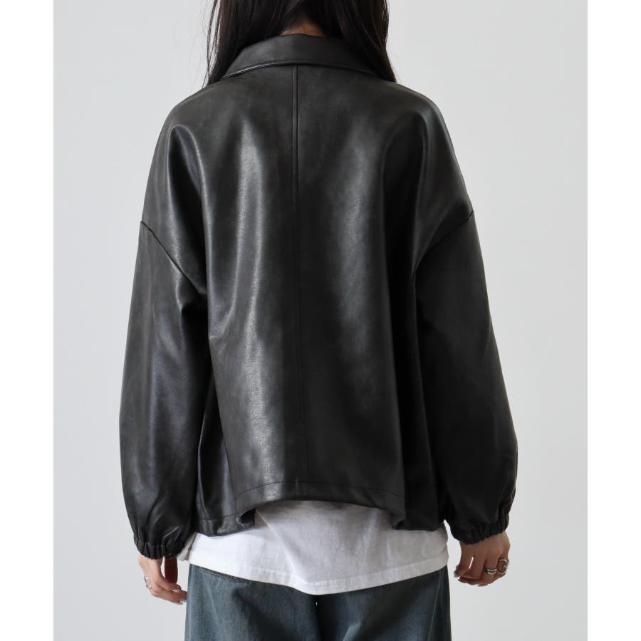 ビンテージフェイクレザーステンカラーブルゾン