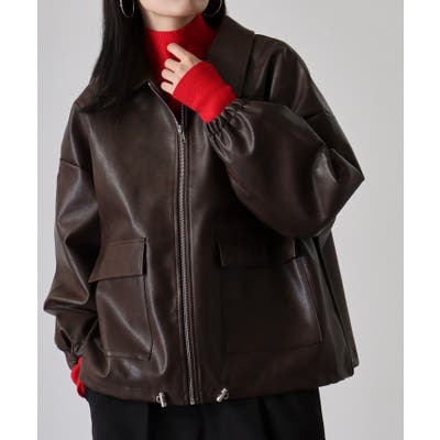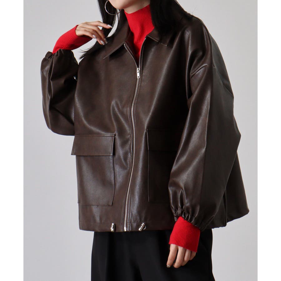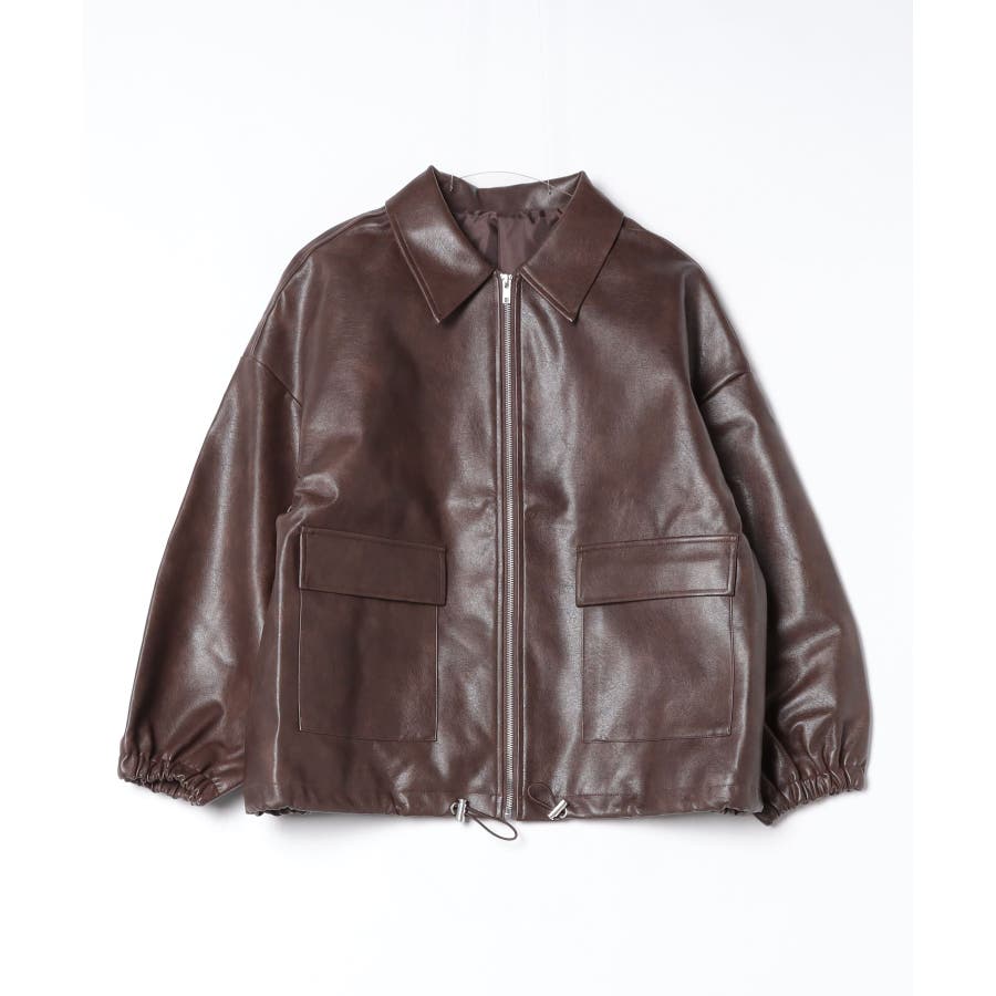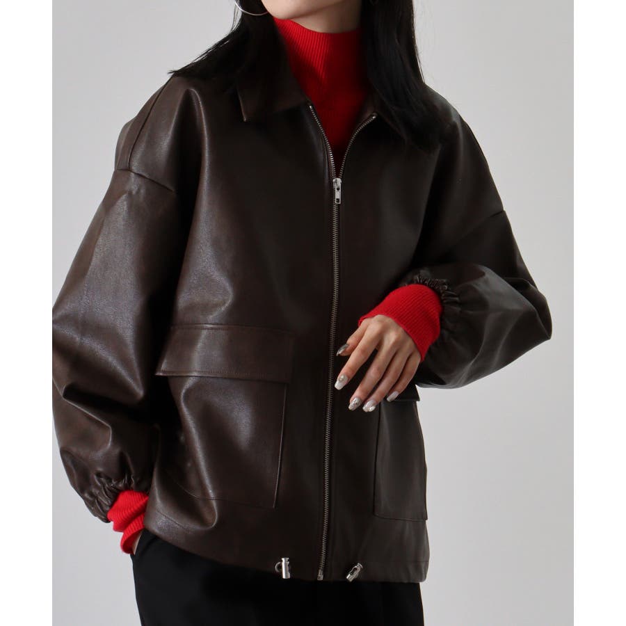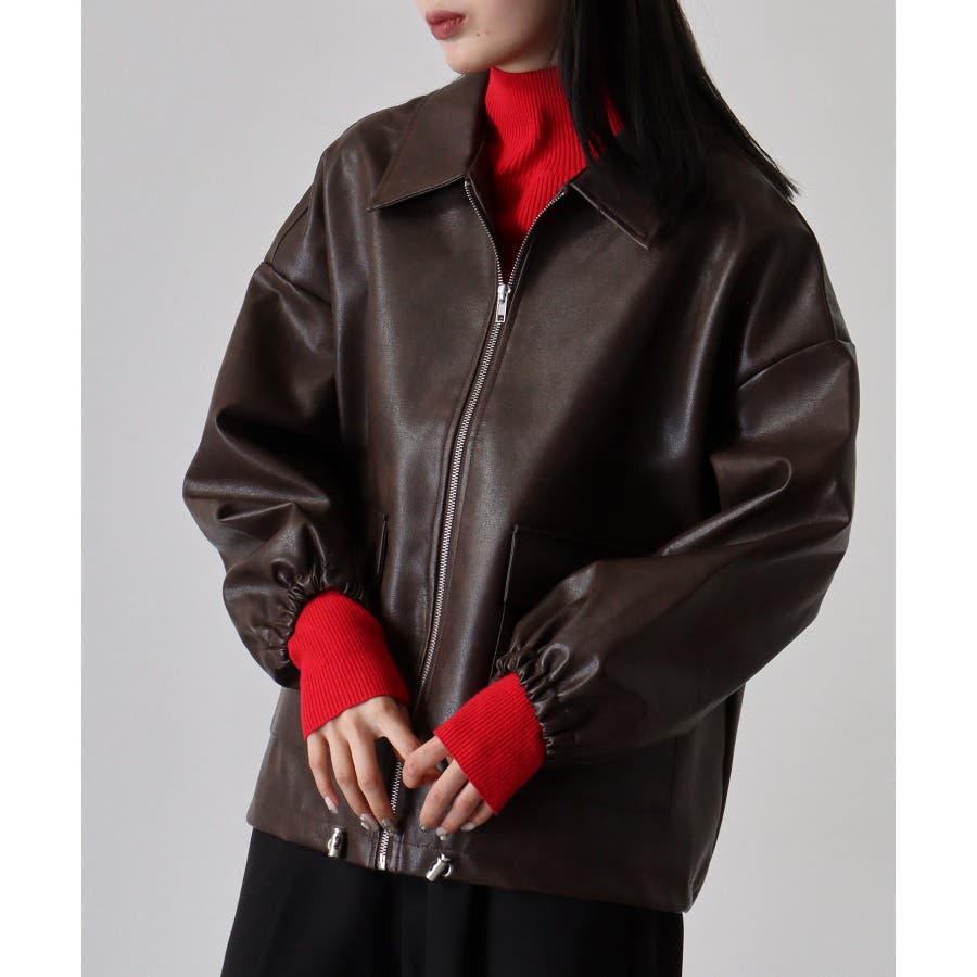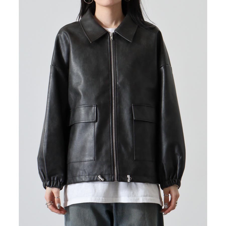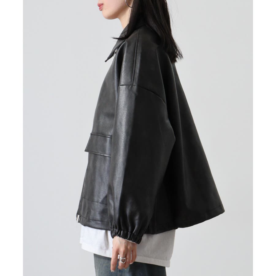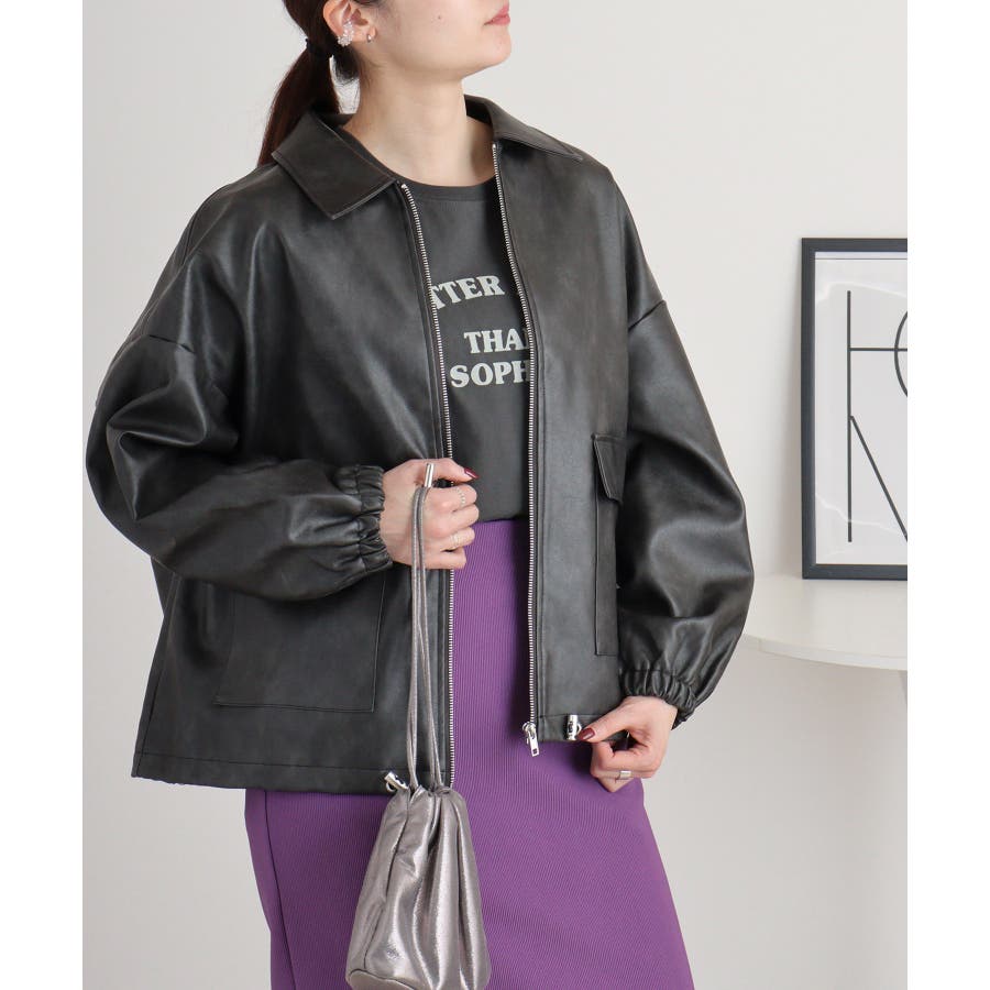 ビンテージフェイクレザーステンカラーブルゾン