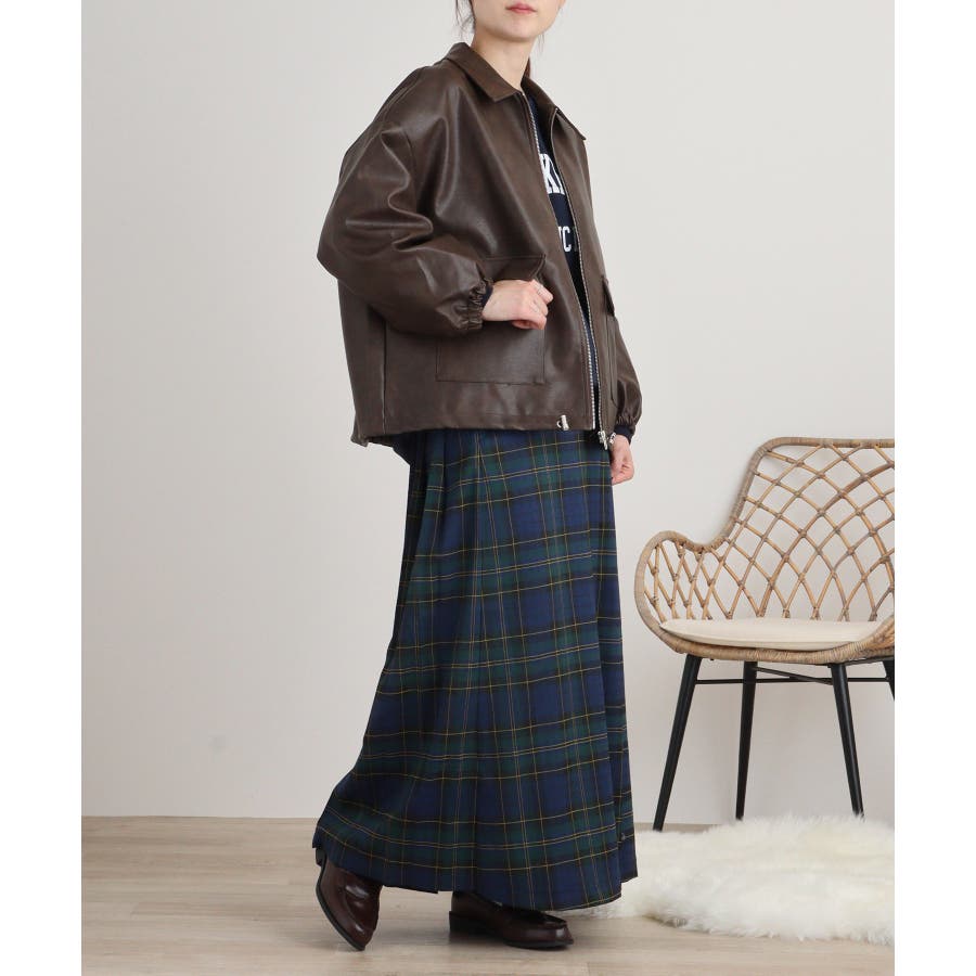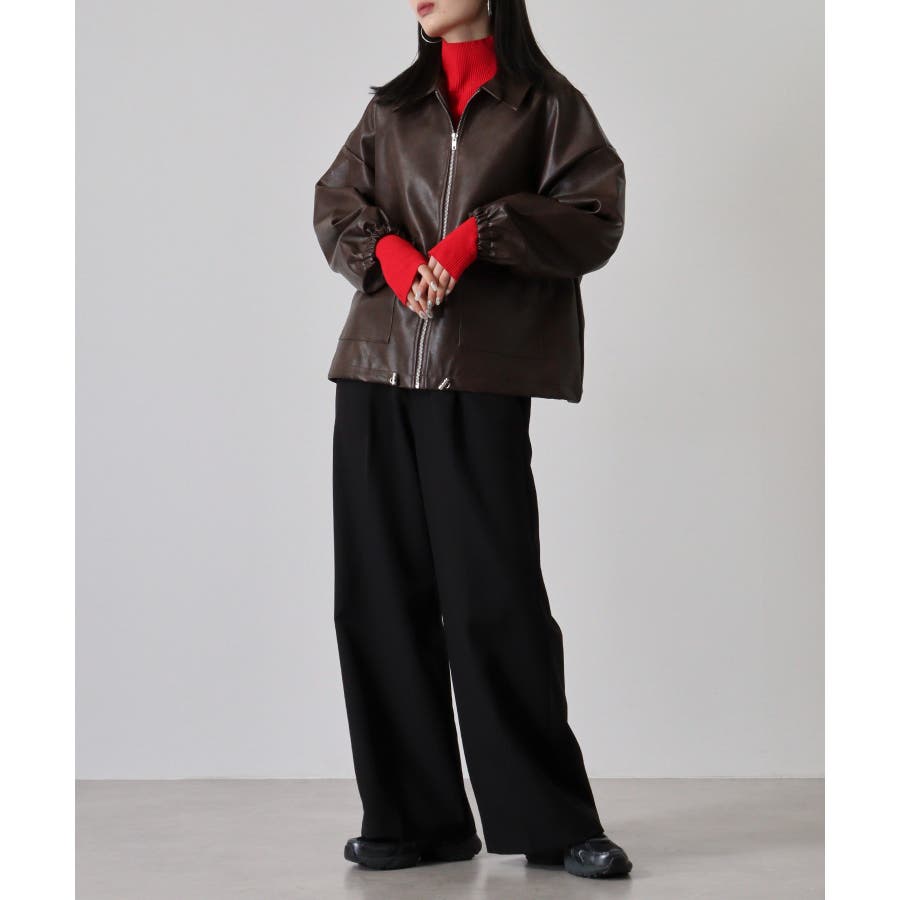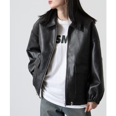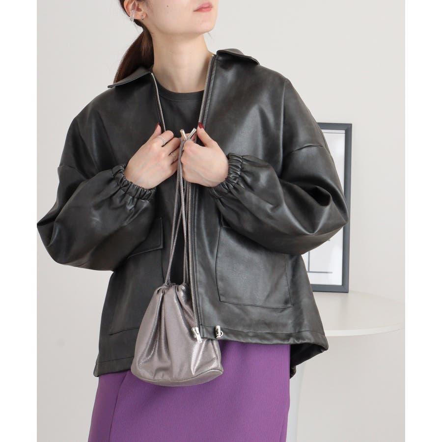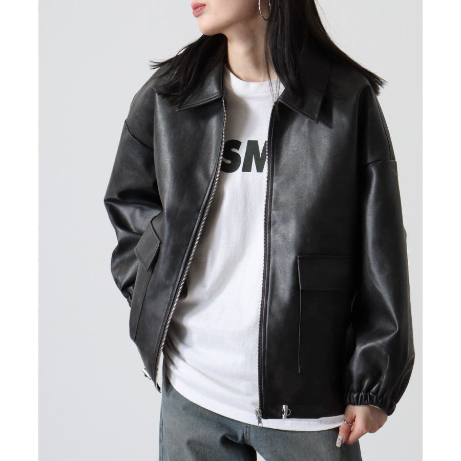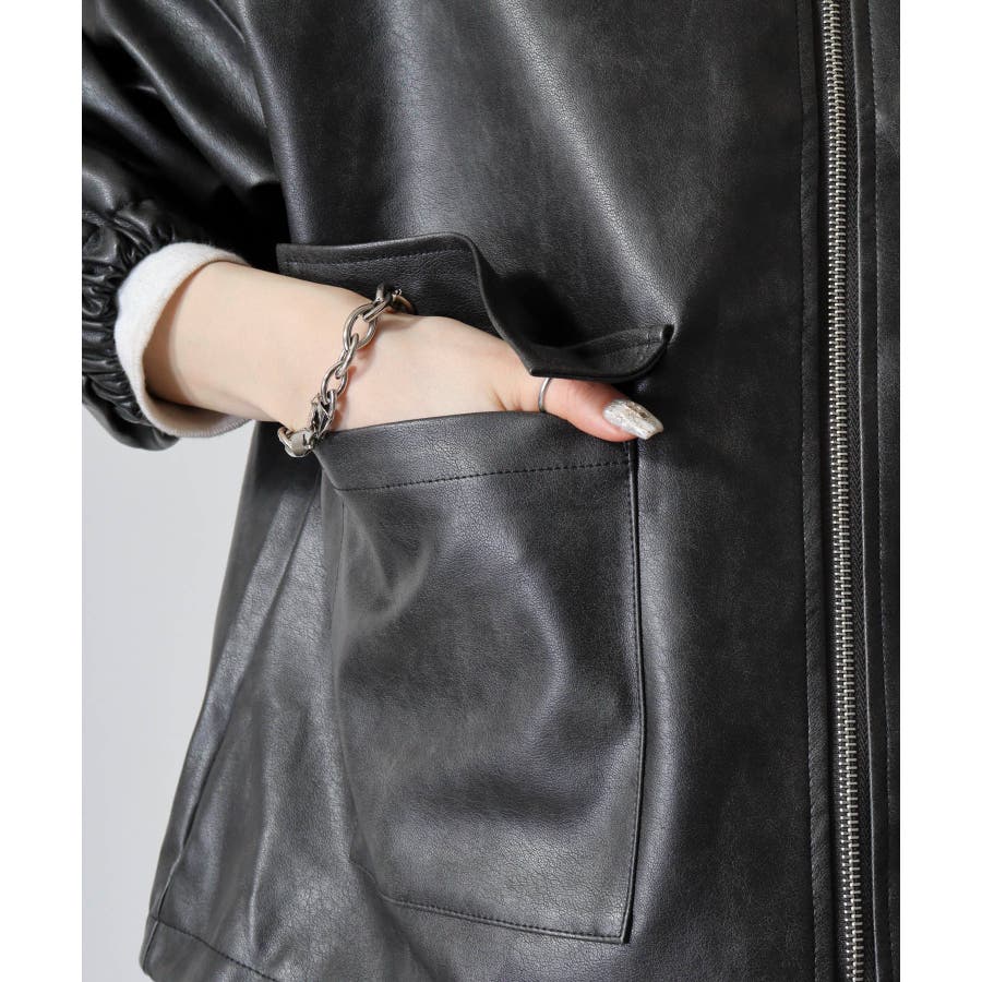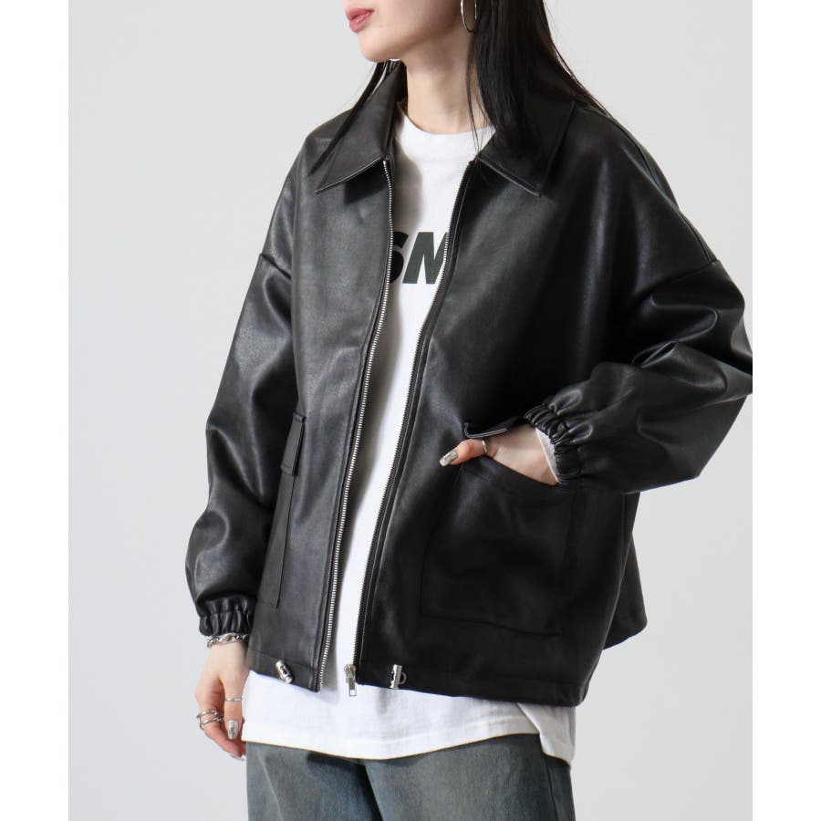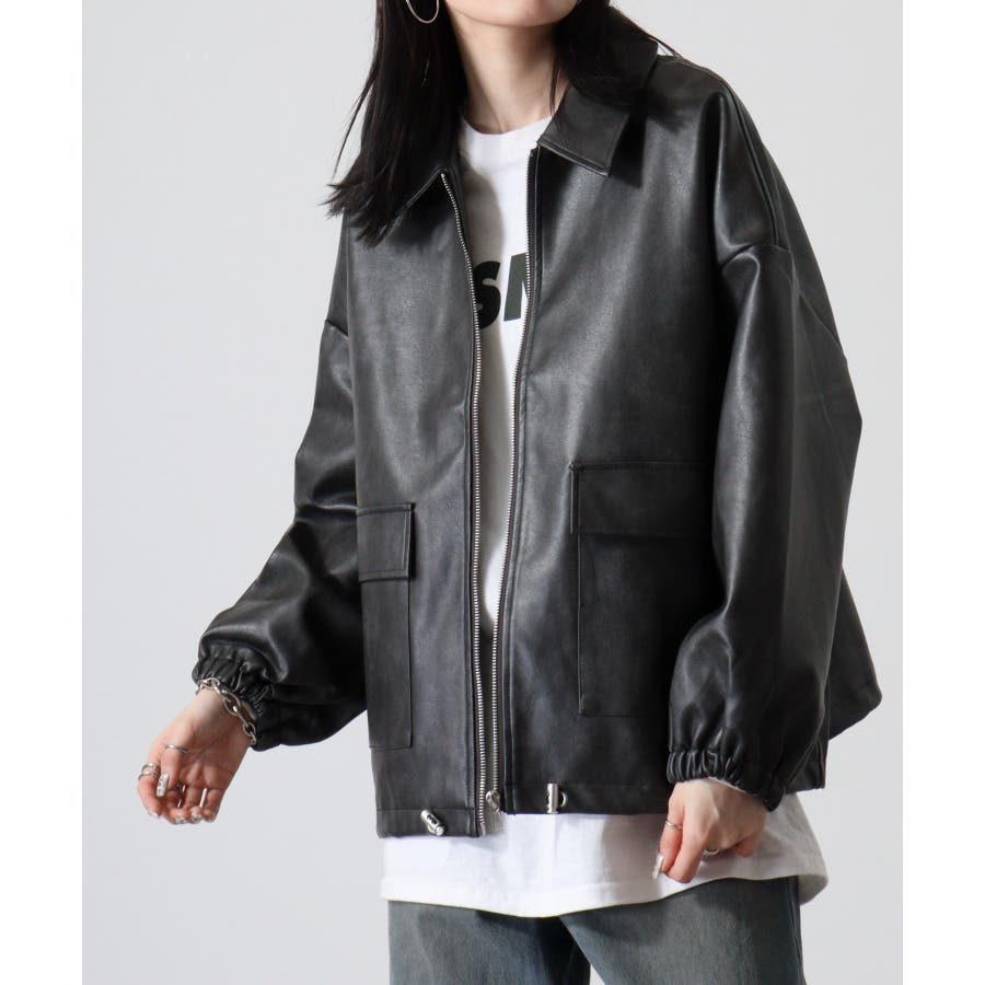 ビンテージフェイクレザーステンカラーブルゾン