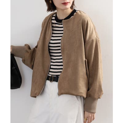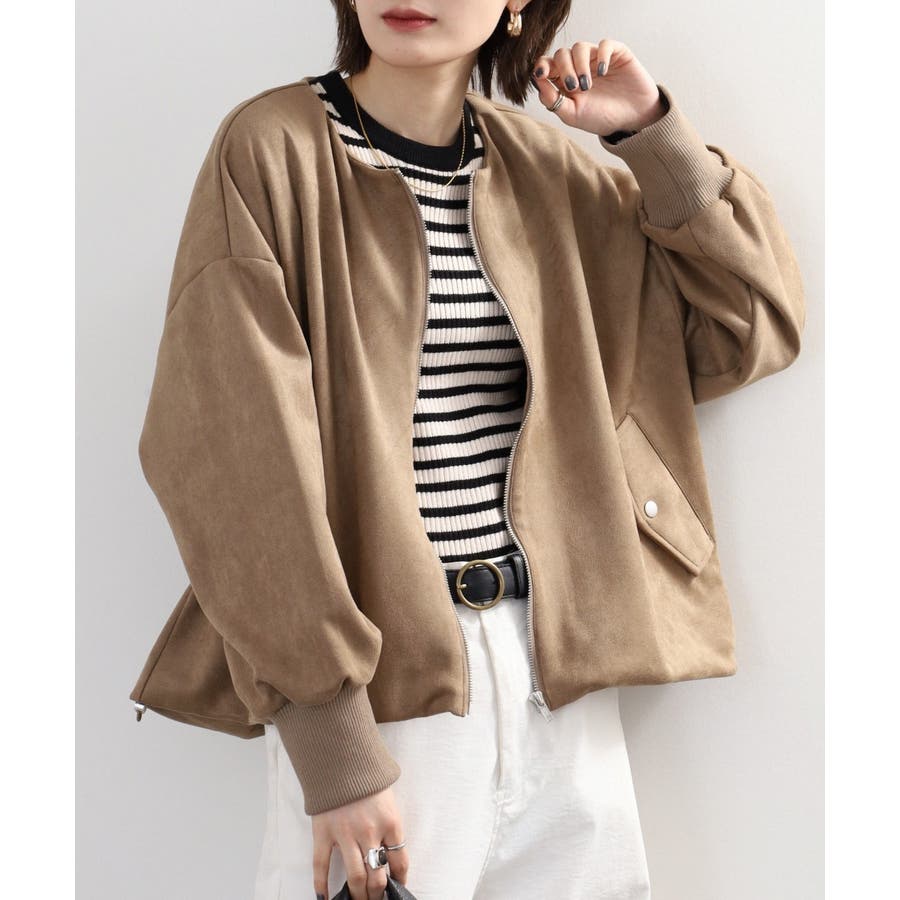 フェイクスエードポンチの上品な質感と軽やかな着心地が魅力で、バルーンシルエットが自然な立体感をつくる万能ブルゾン。