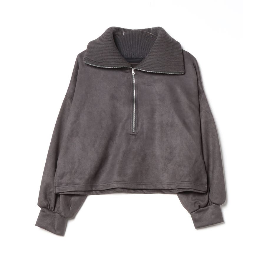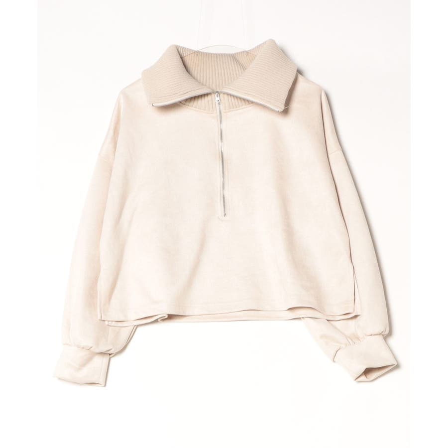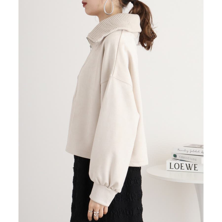 ハーフジップのデザインがアクセントとなり、シンプルながらもこなれた雰囲気を演出。