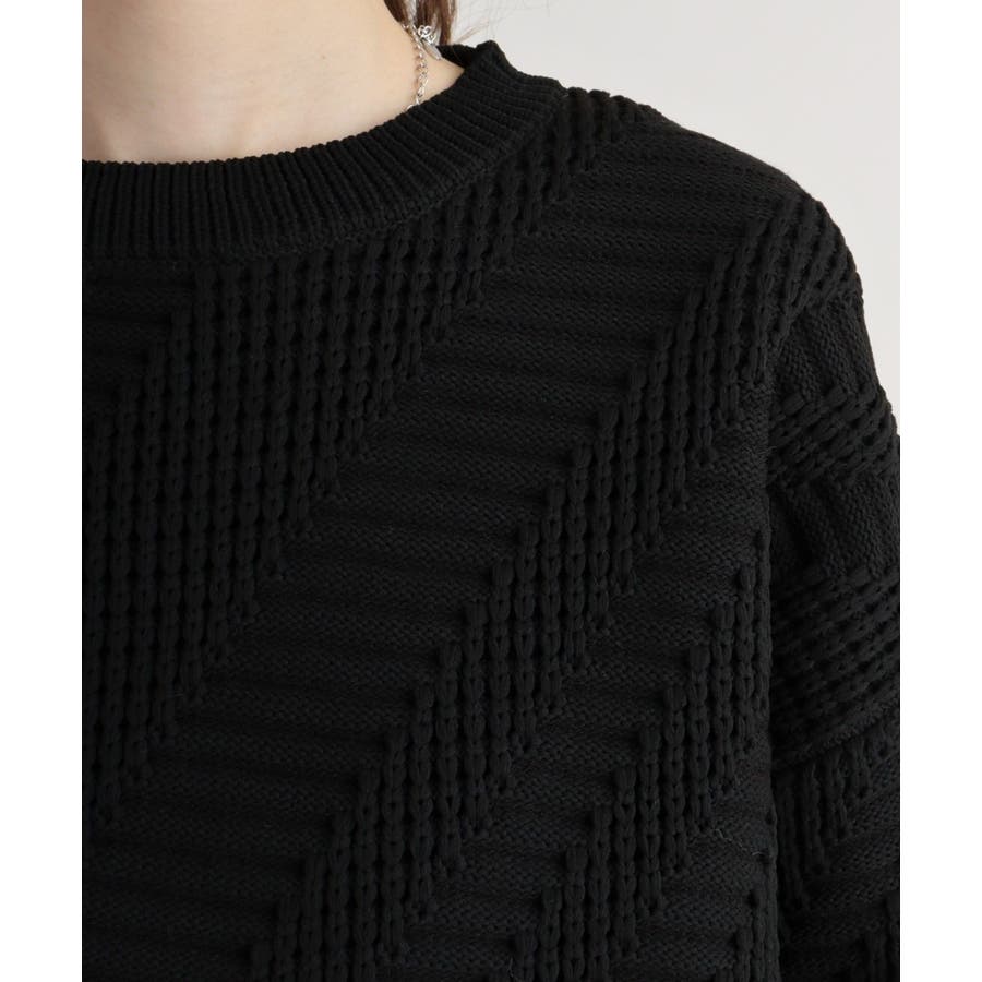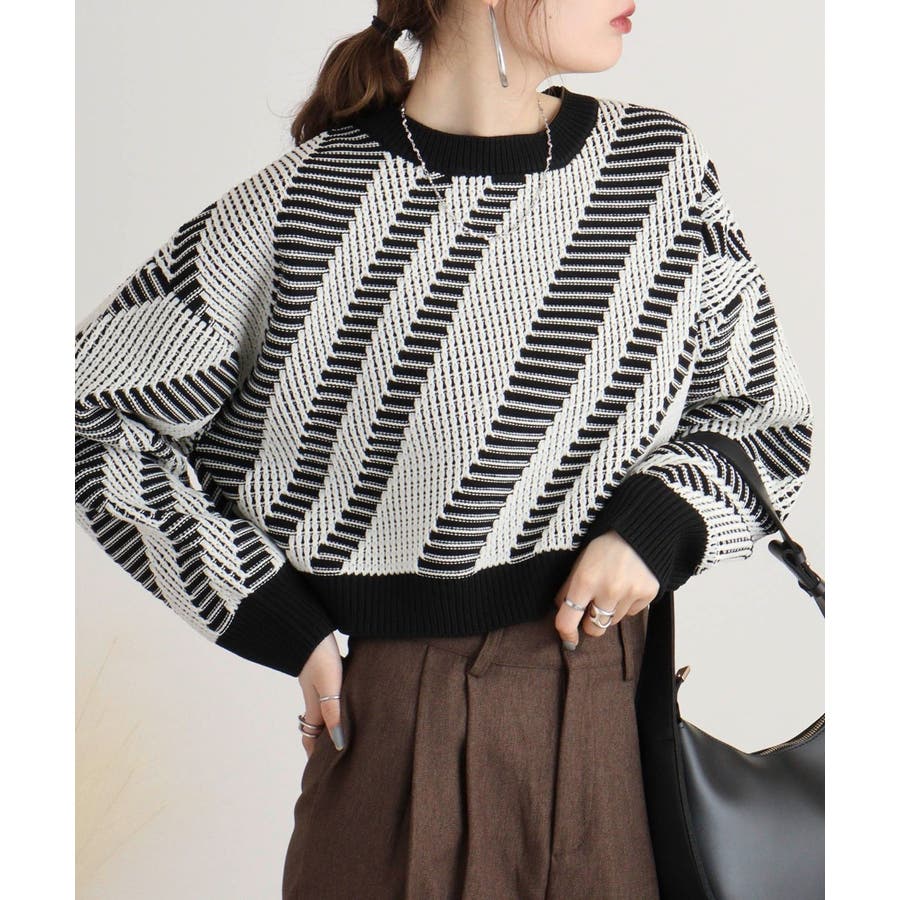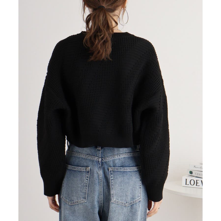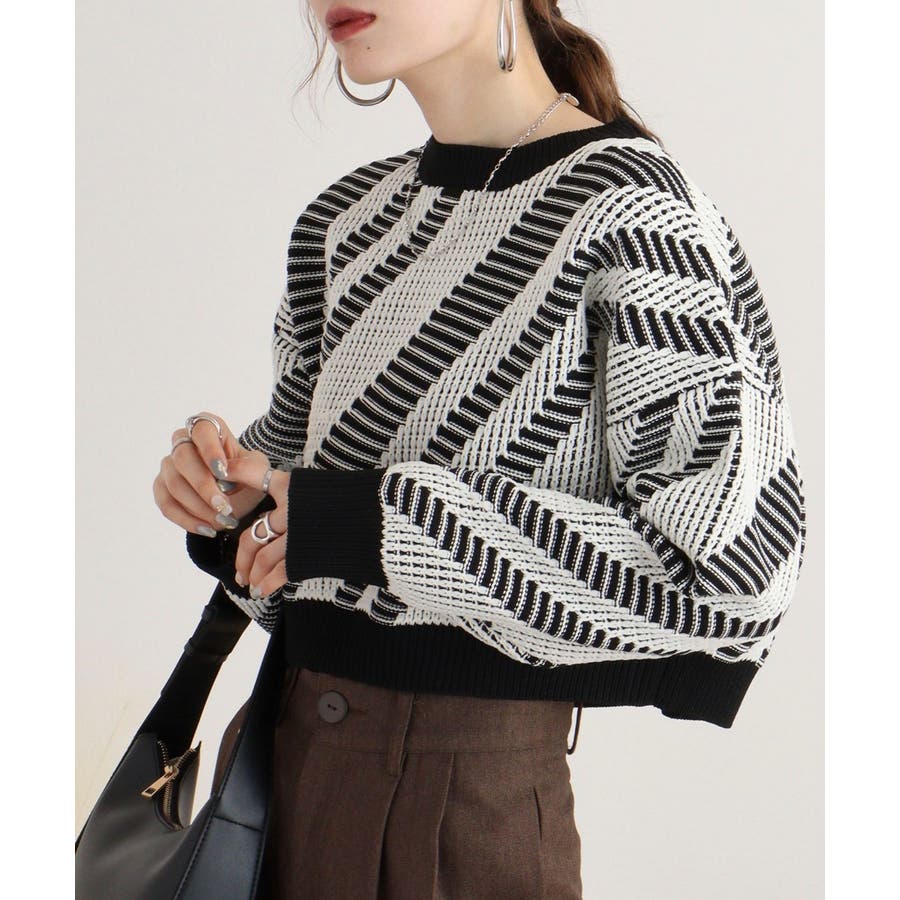 トレンド感のあるデザインとショート丈が特徴のニットトップス。