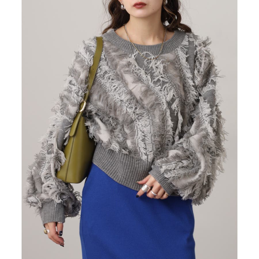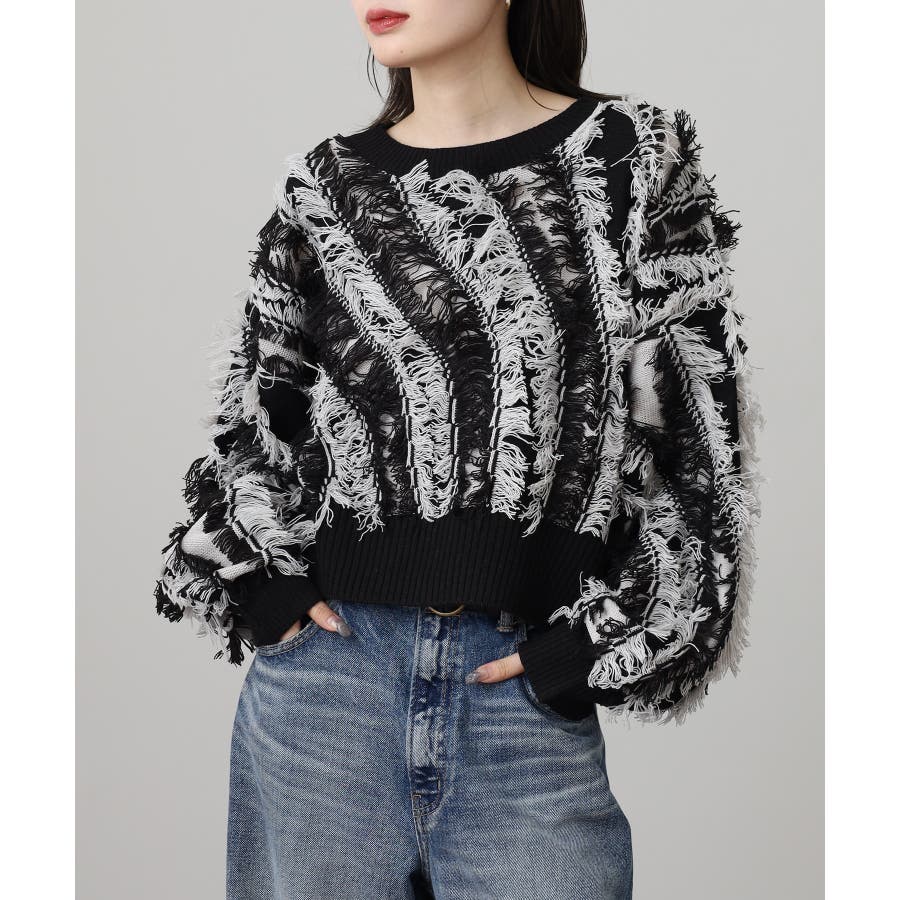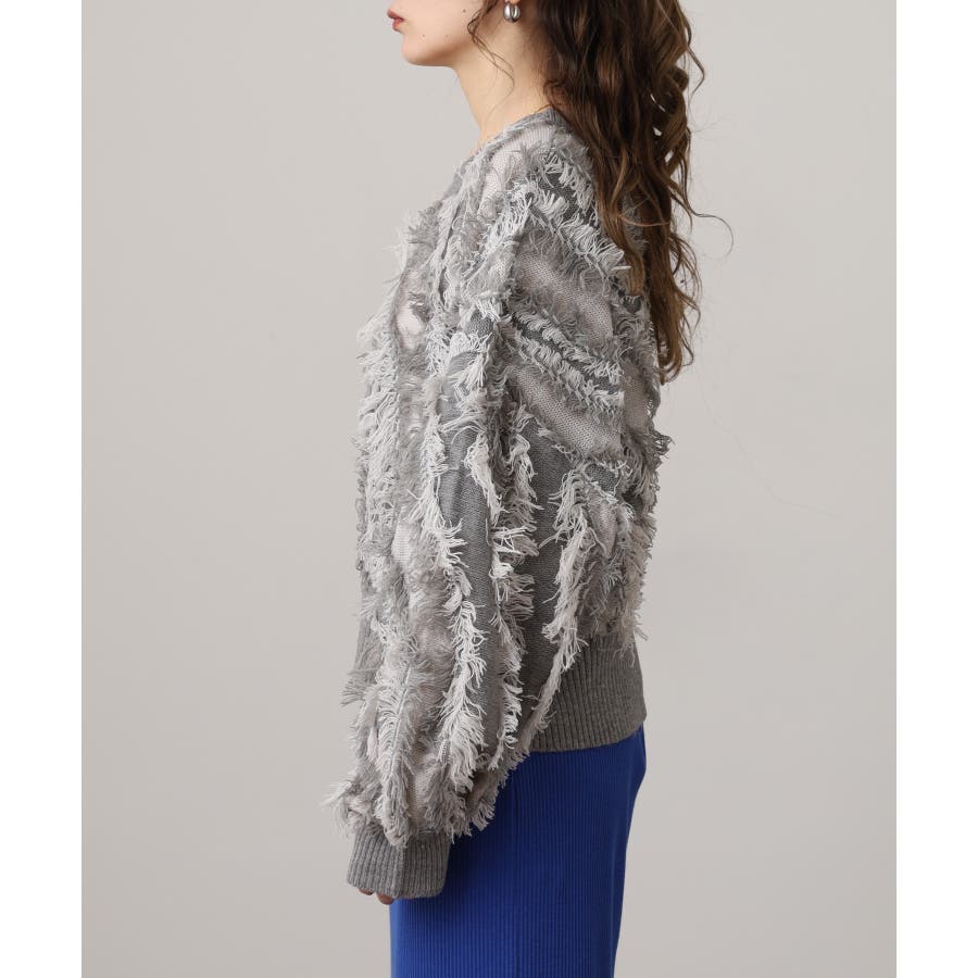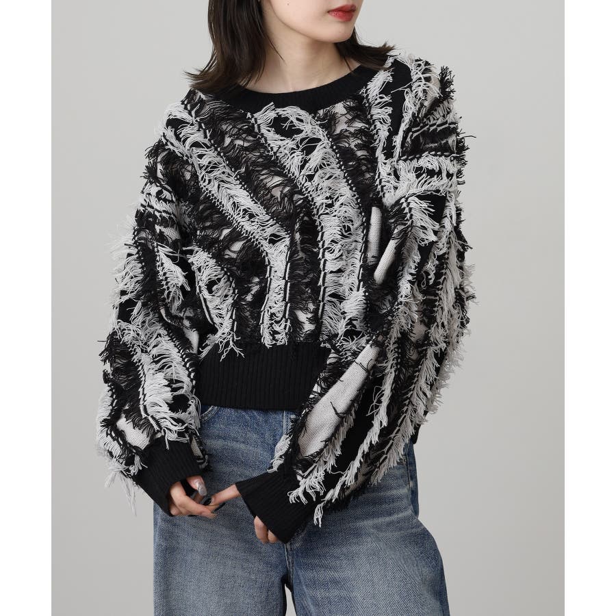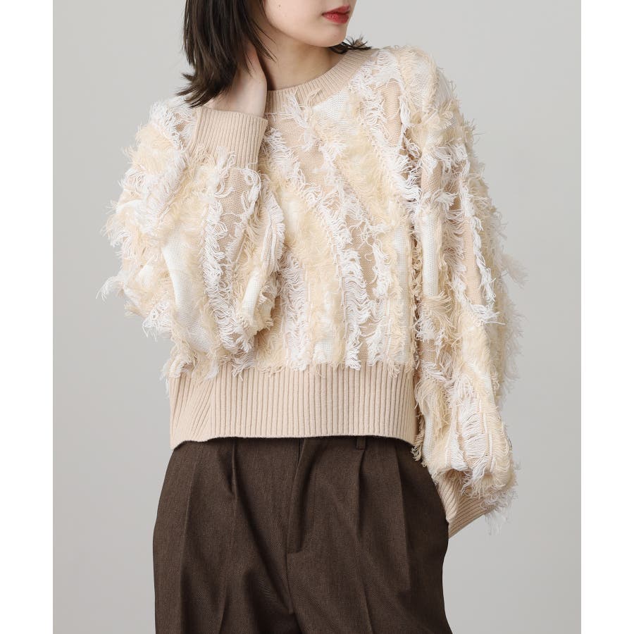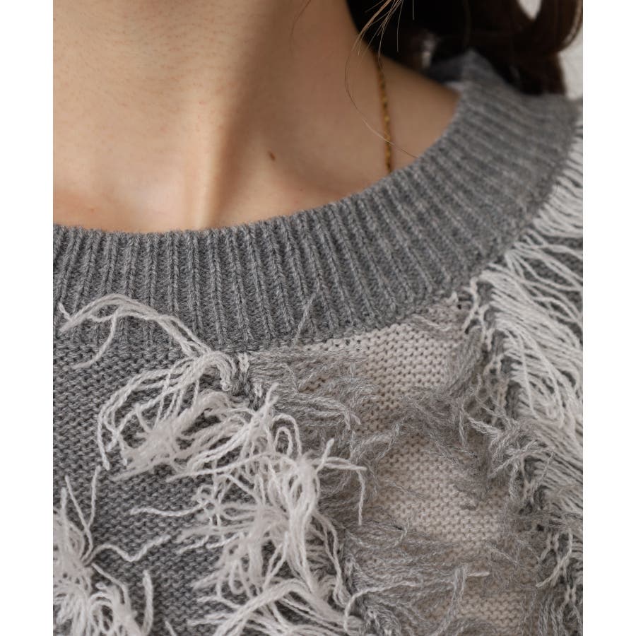 モヘアタッチ フリンジジャガード ニット プルオーバー