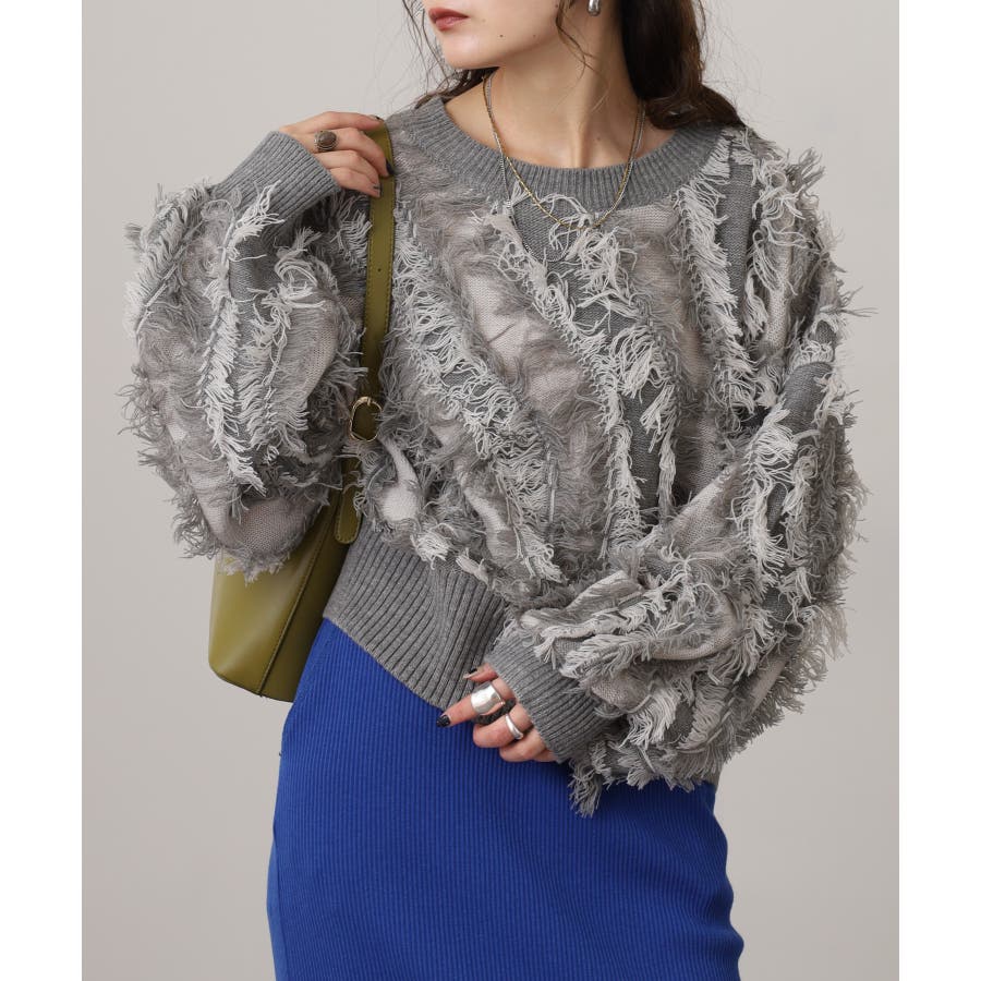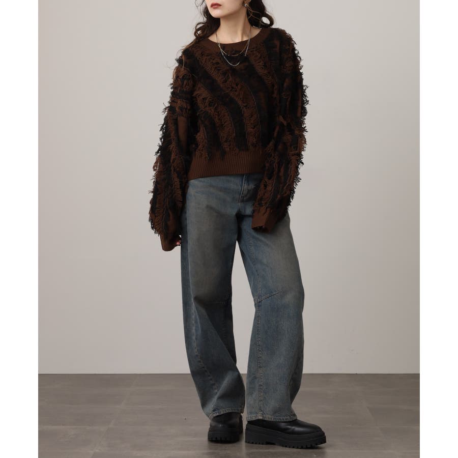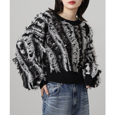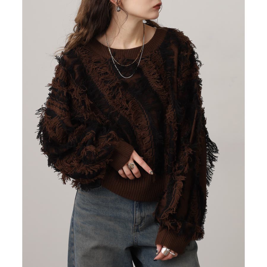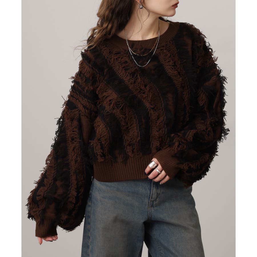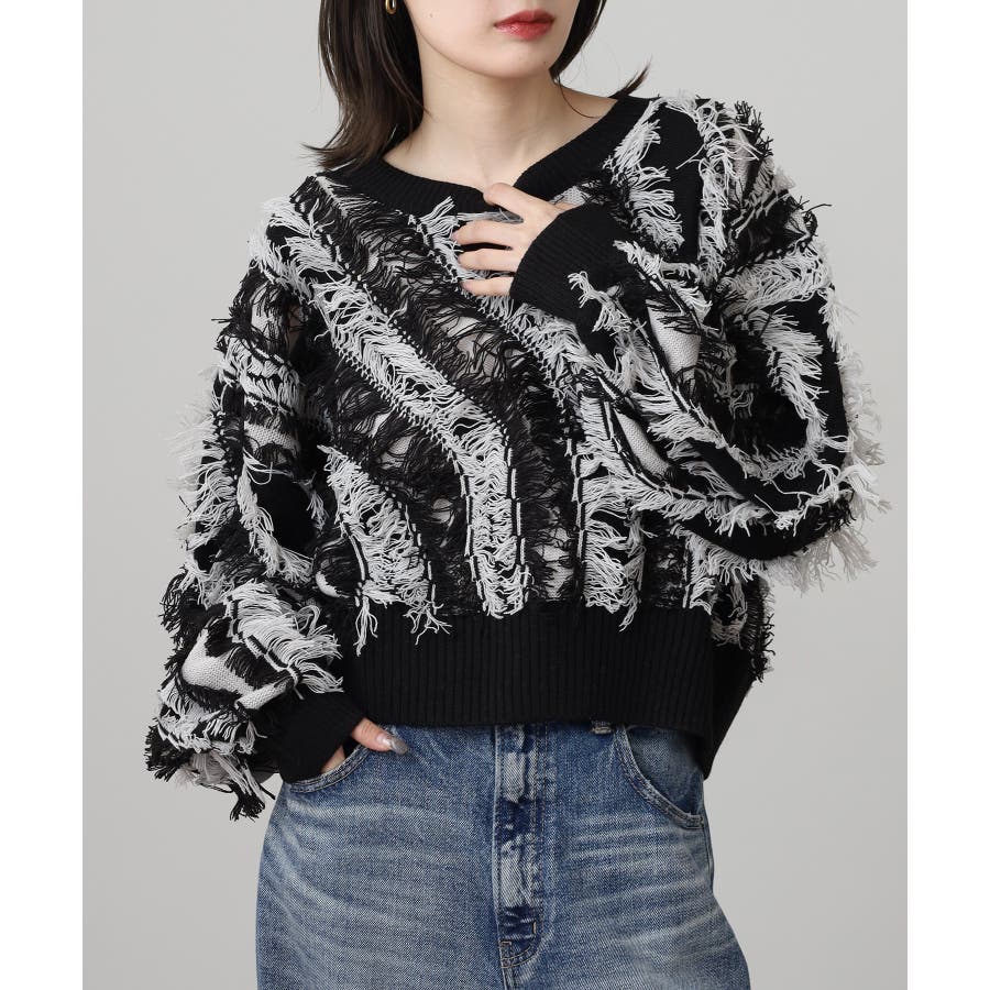 モヘアタッチ フリンジジャガード ニット プルオーバー