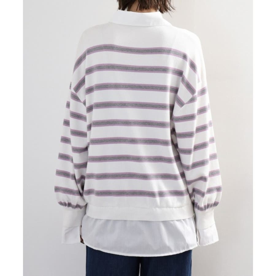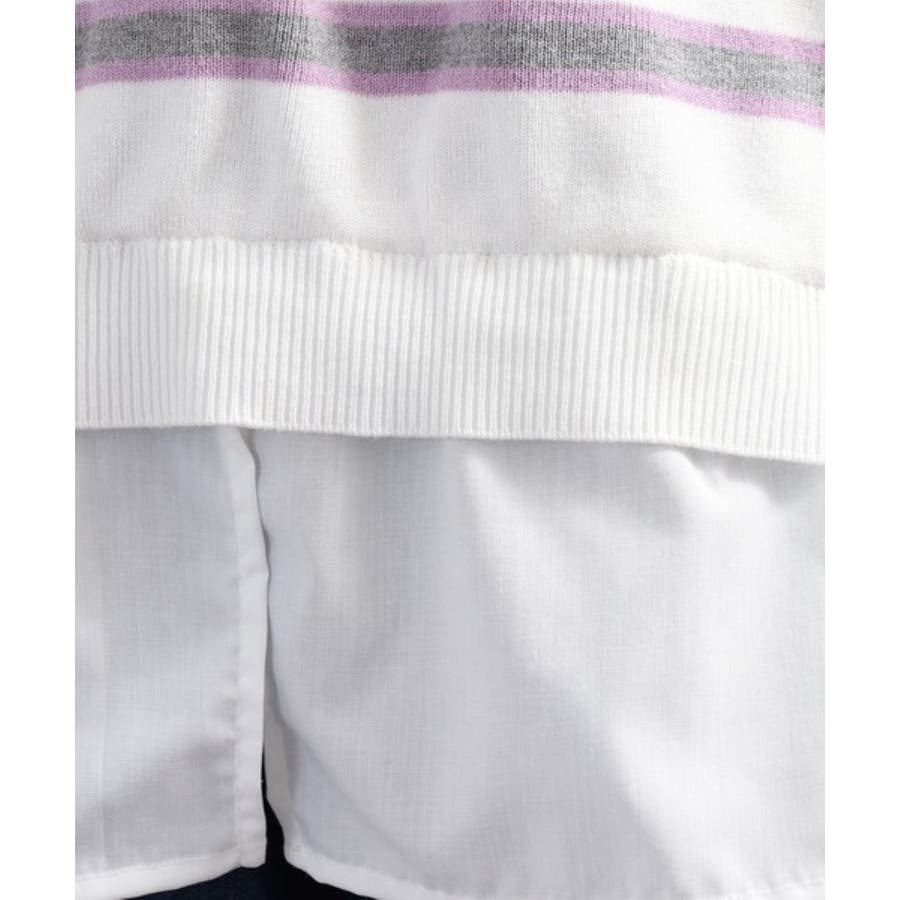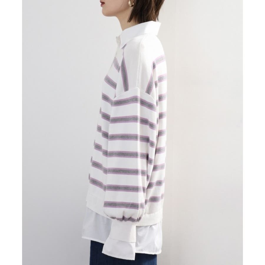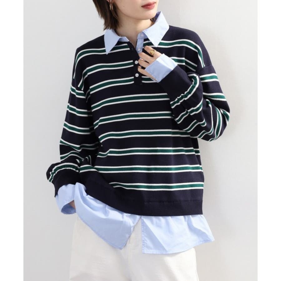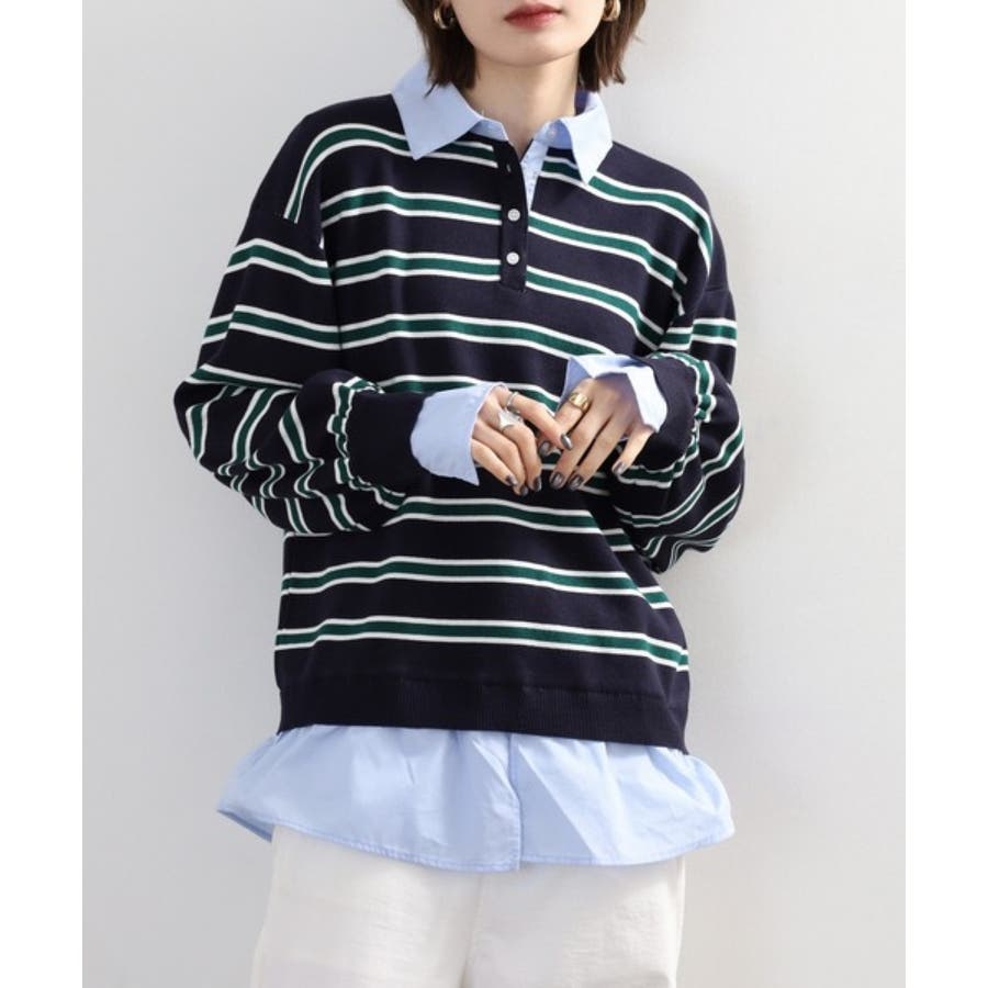 シャツドッキングレイヤード風ランダムボーダーニットプルオーバー