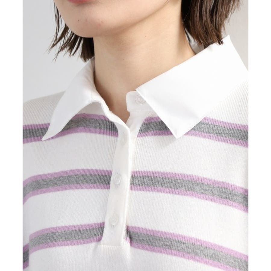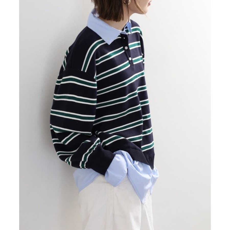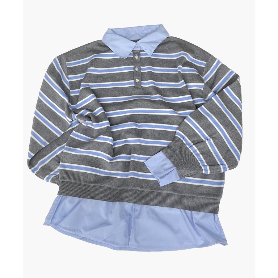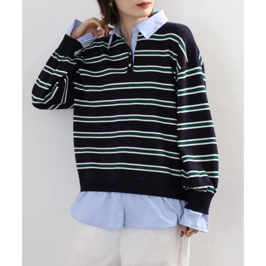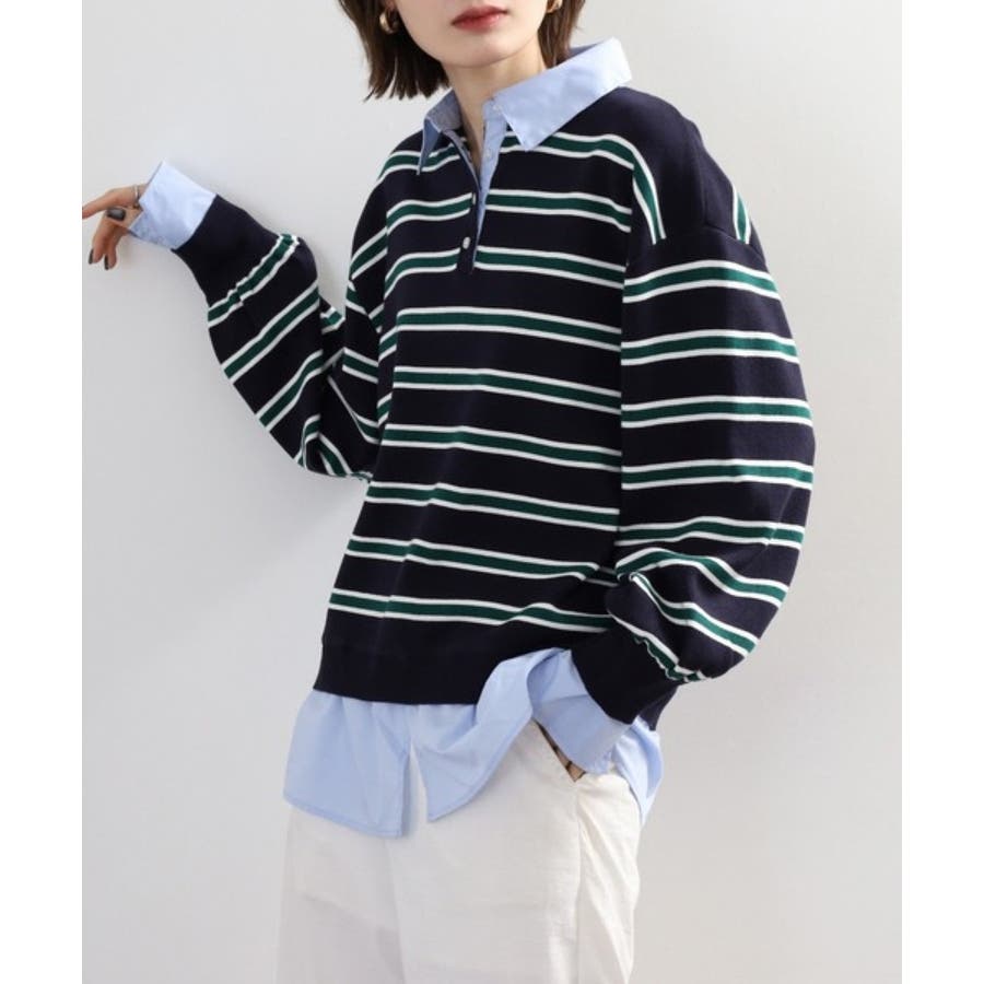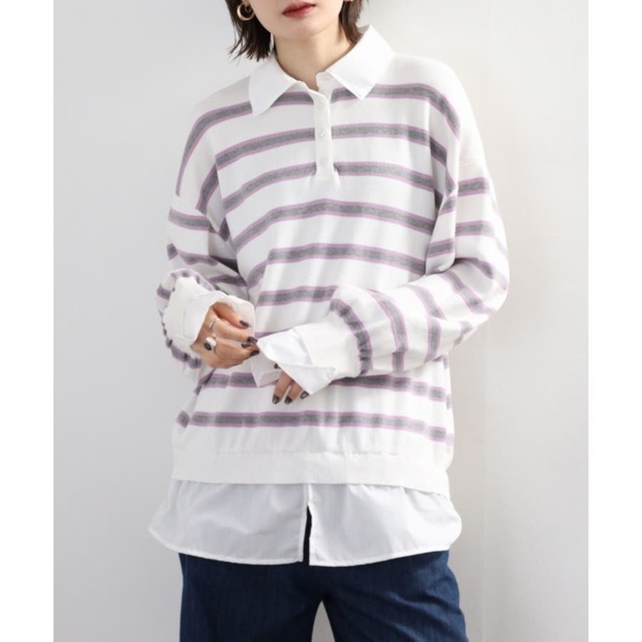 シャツドッキングレイヤード風ランダムボーダーニットプルオーバー