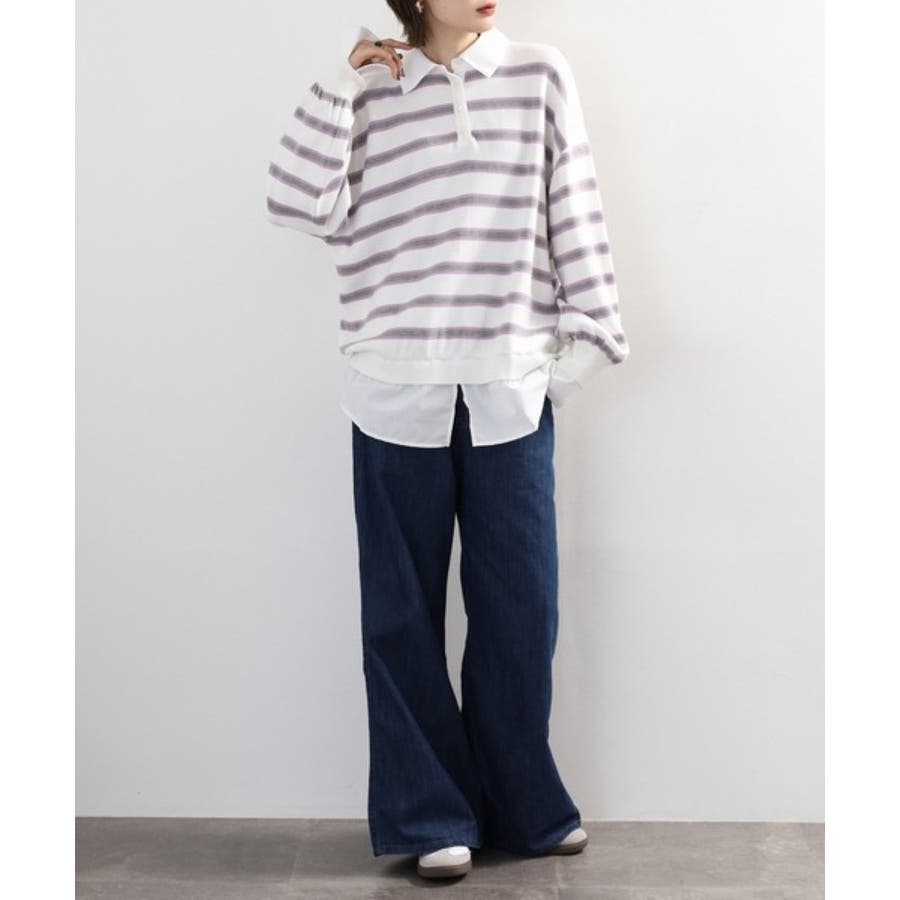 シャツを重ねたように見えるドッキングデザインが特徴で、ランダムボーダーが程よいアクセントに。