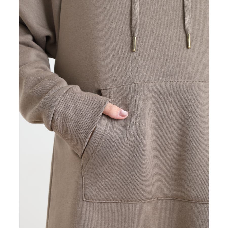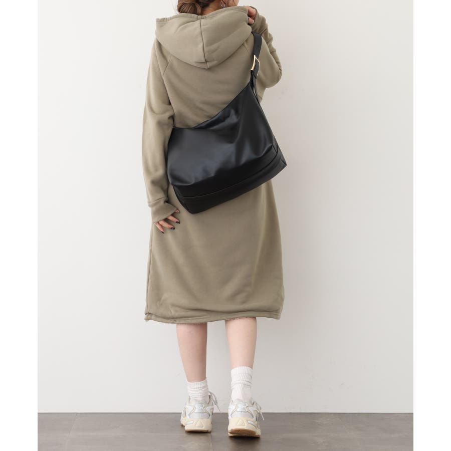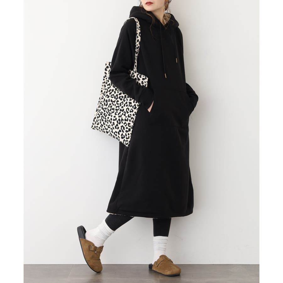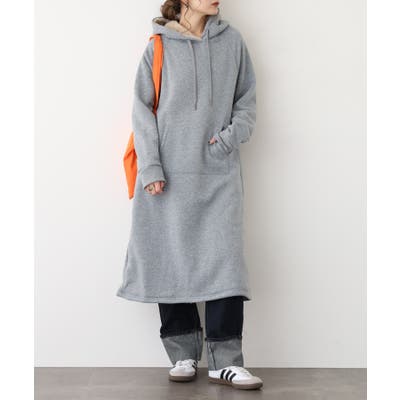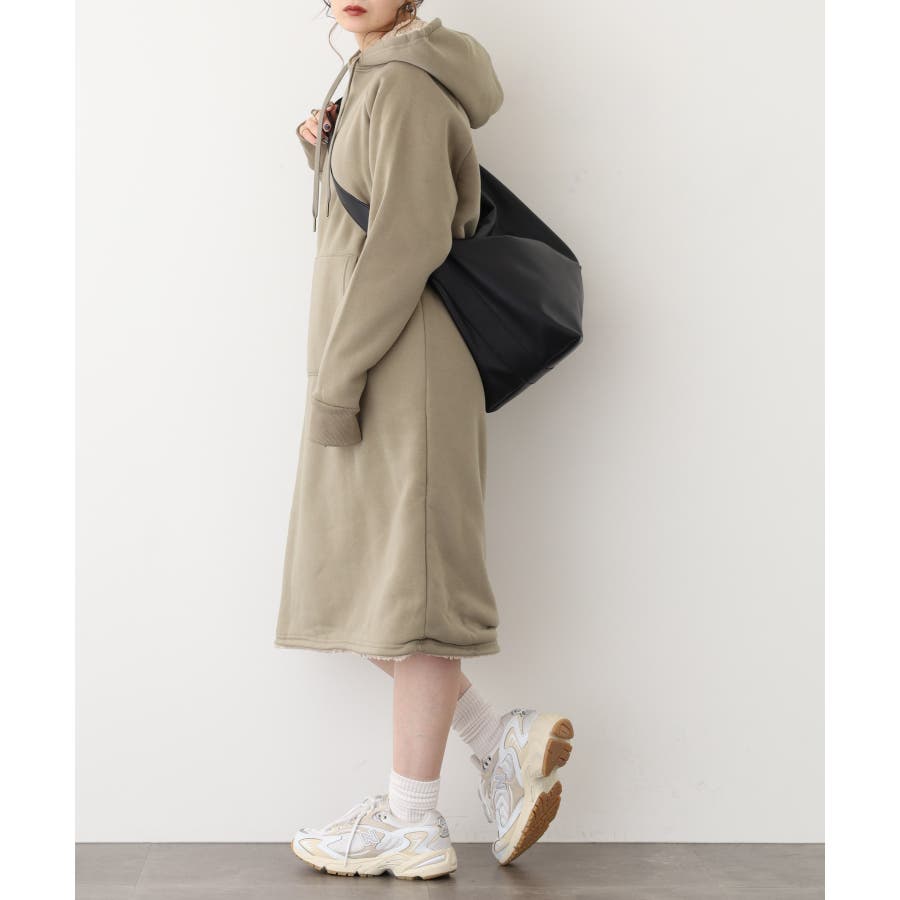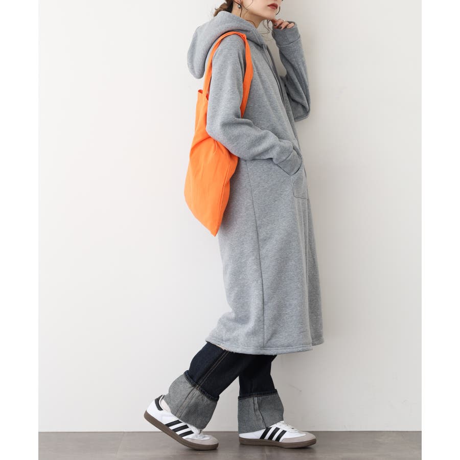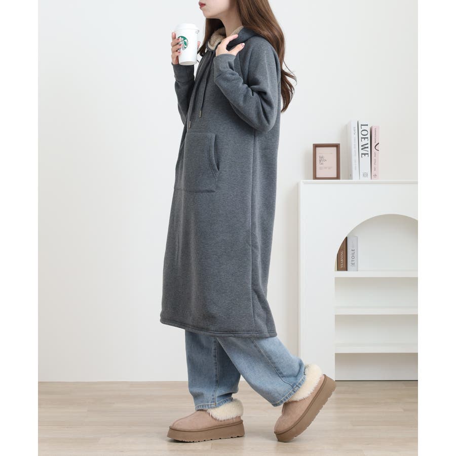 袖は裏起毛で着ぶくれしにくく、冬の一枚着としても重宝するパーカーワンピースです。