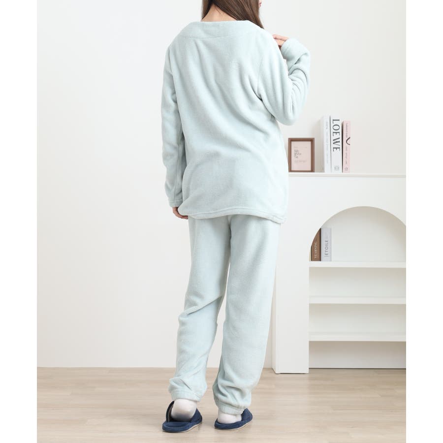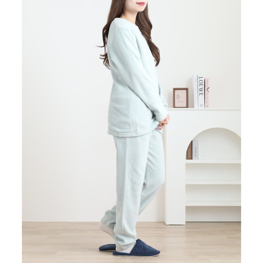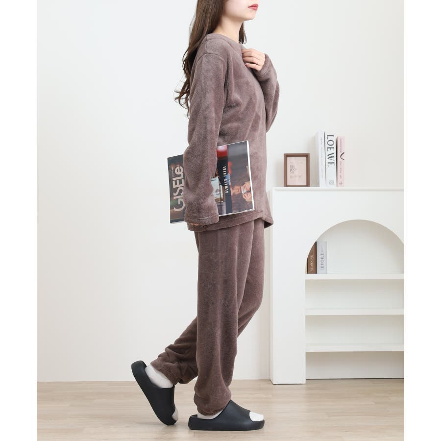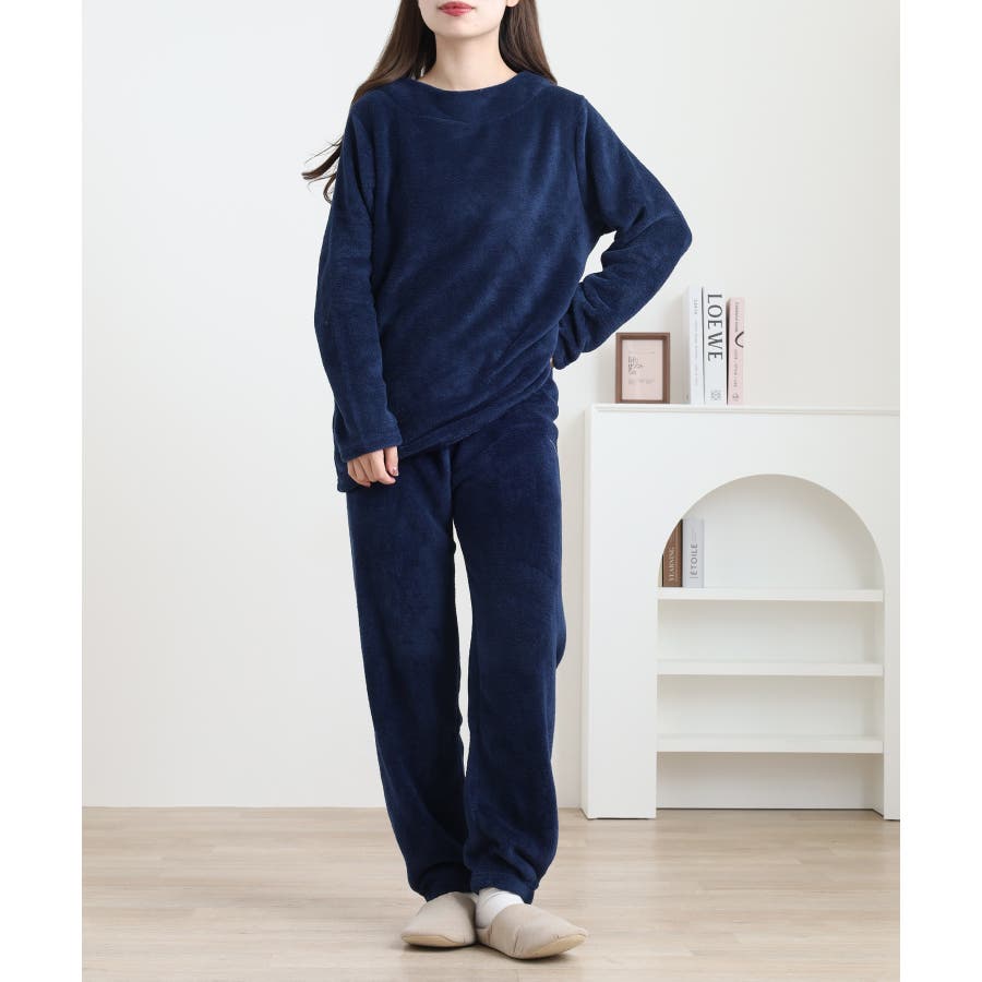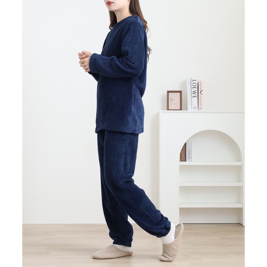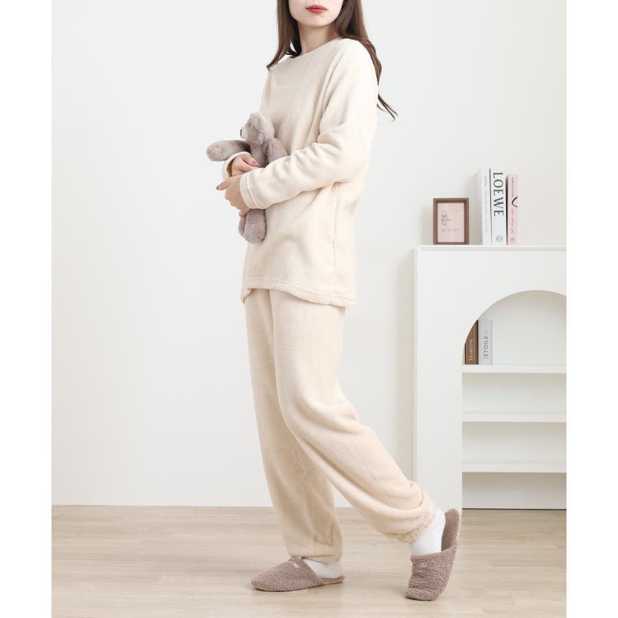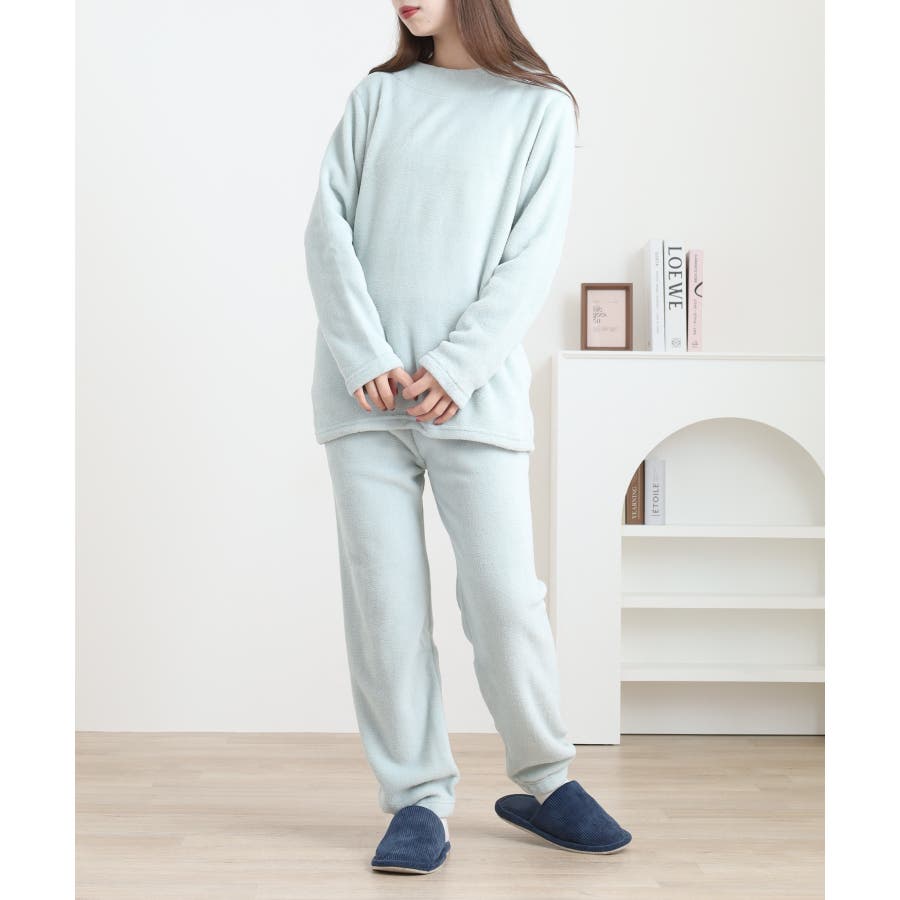 ふんわりとしたマイクロファイバー素材で、軽くて暖かくリラックス感のある上下セット。