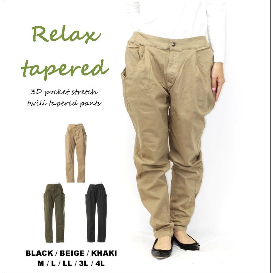 立体ポケットストレッチツイルテイパードパンツ ゆったり リラックス