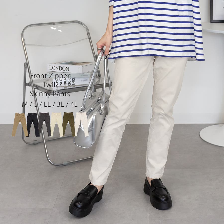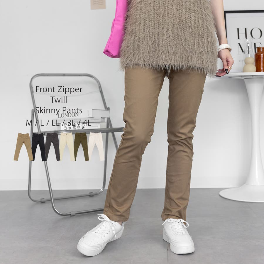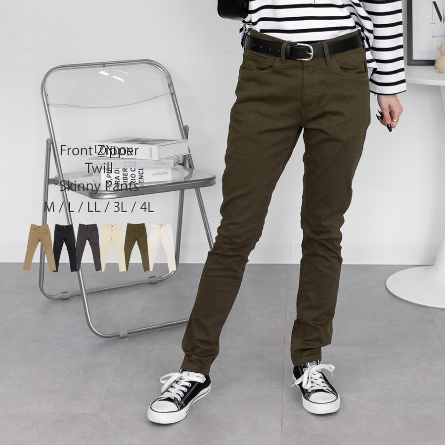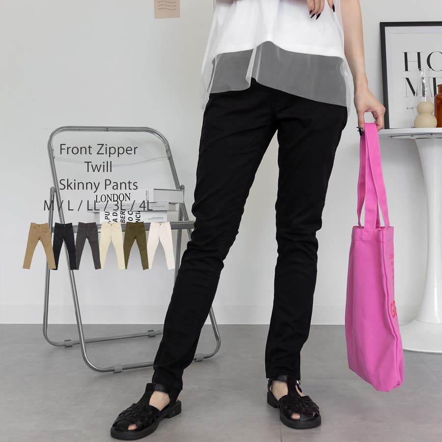 フロントジッパーツイルスキニーパンツ スリム ゆったり
