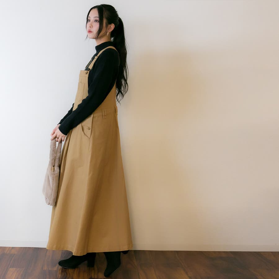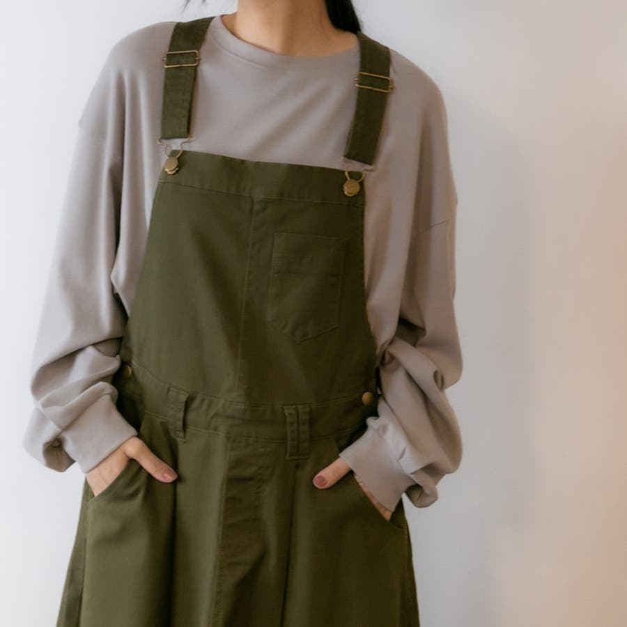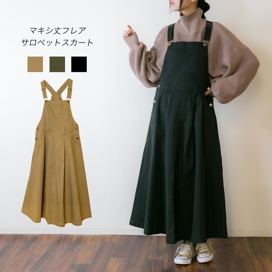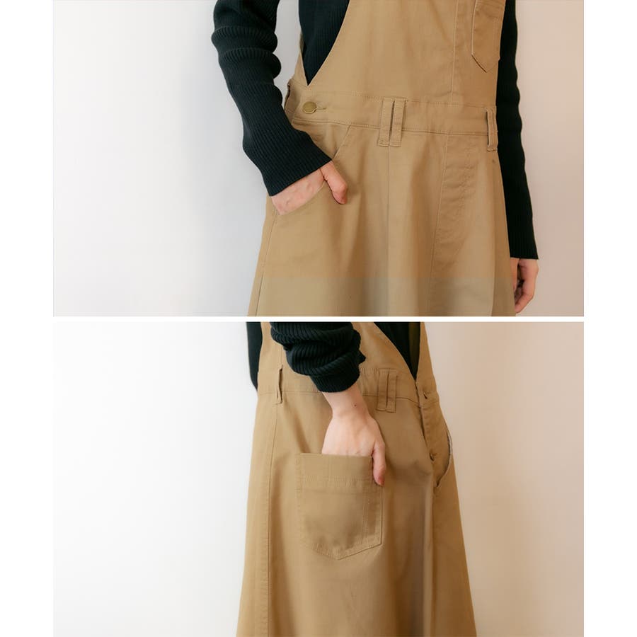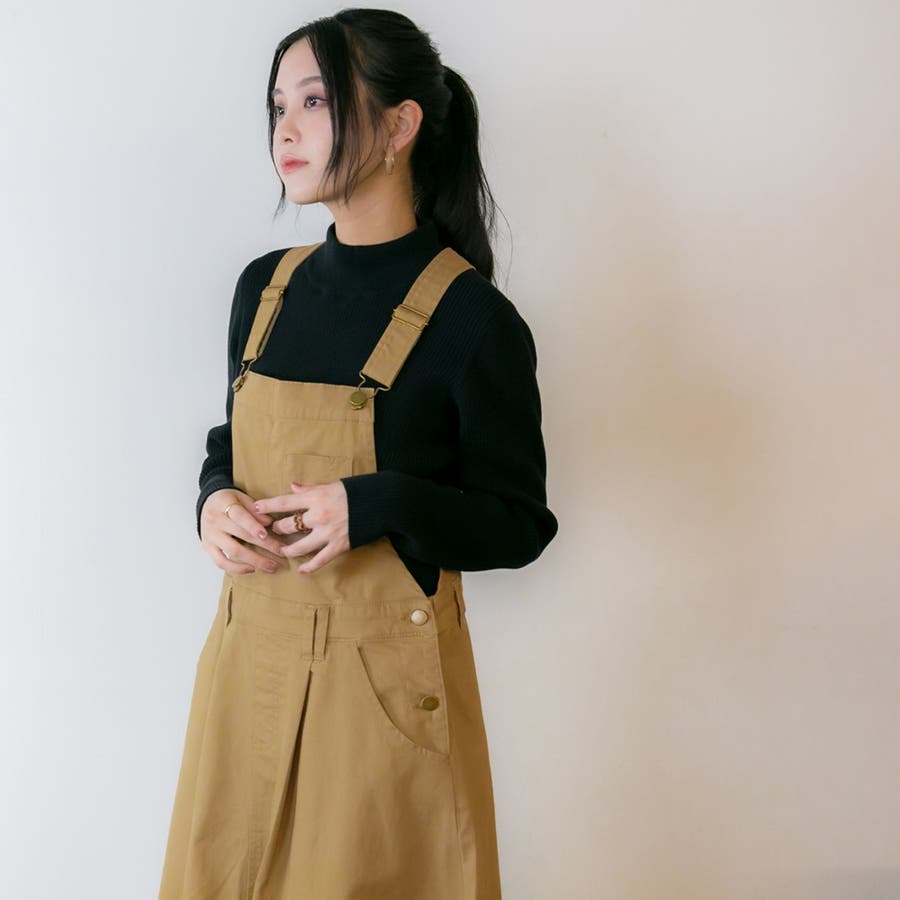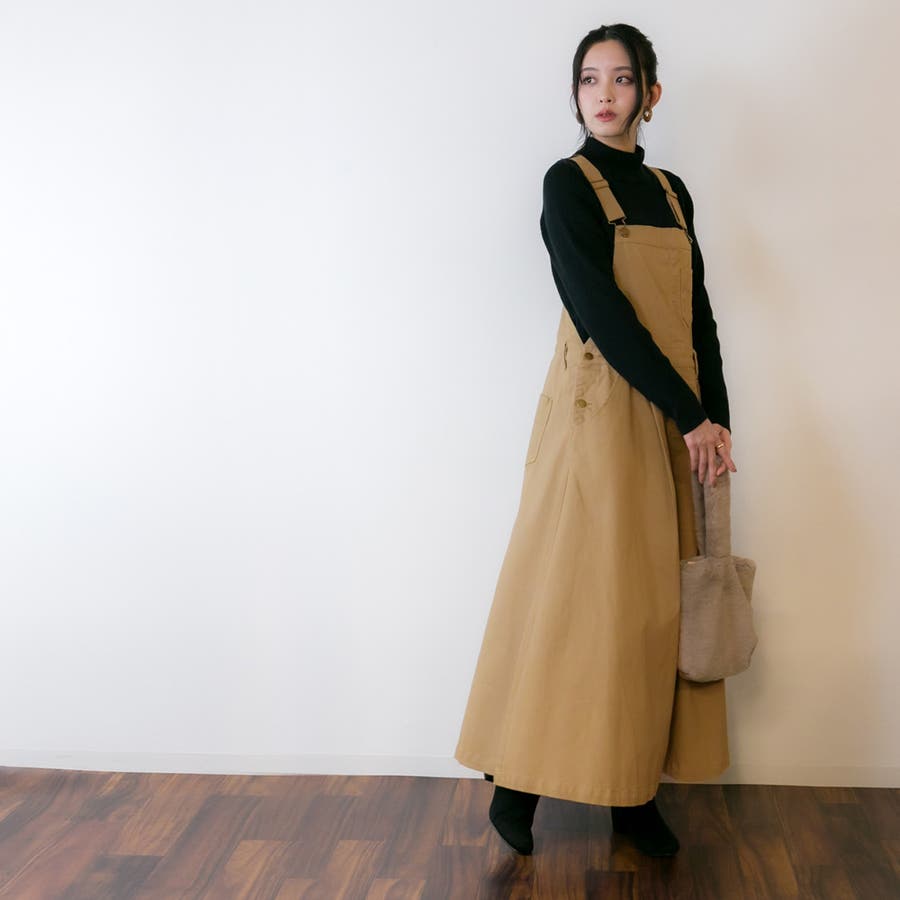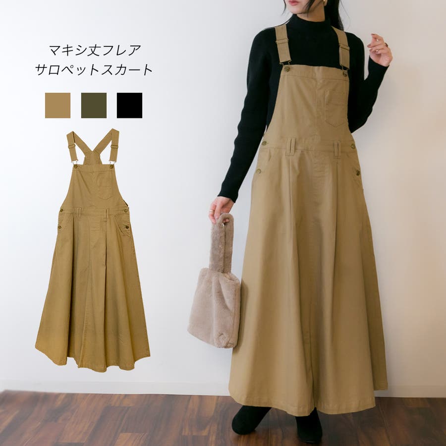 ウエスト周りがカバーできる、ゆったりサイズのサロペットスカート。