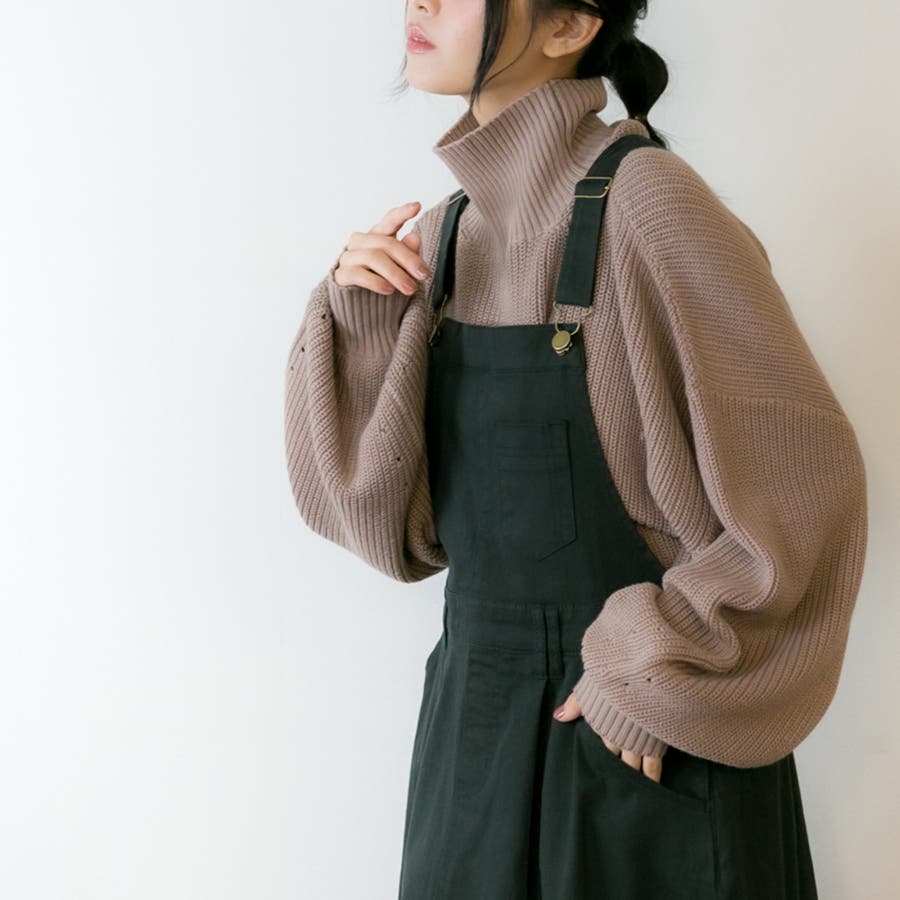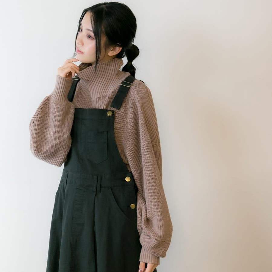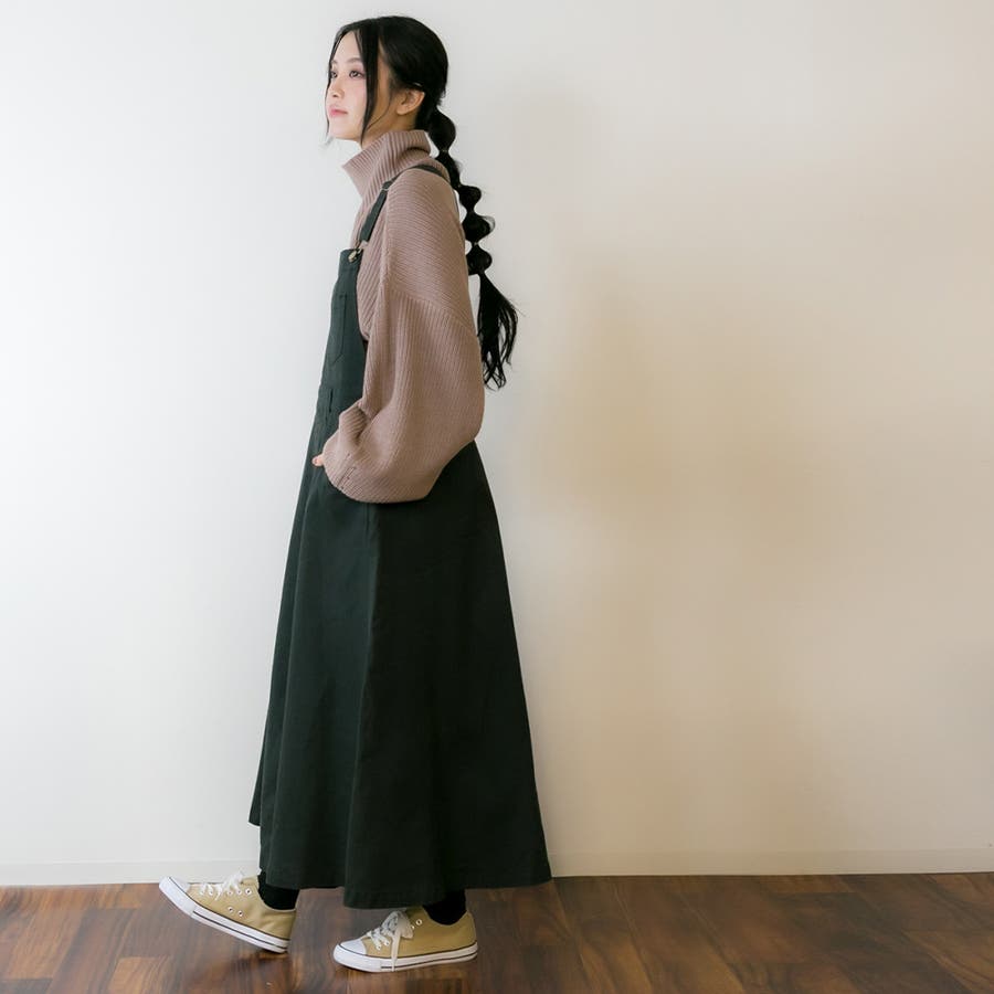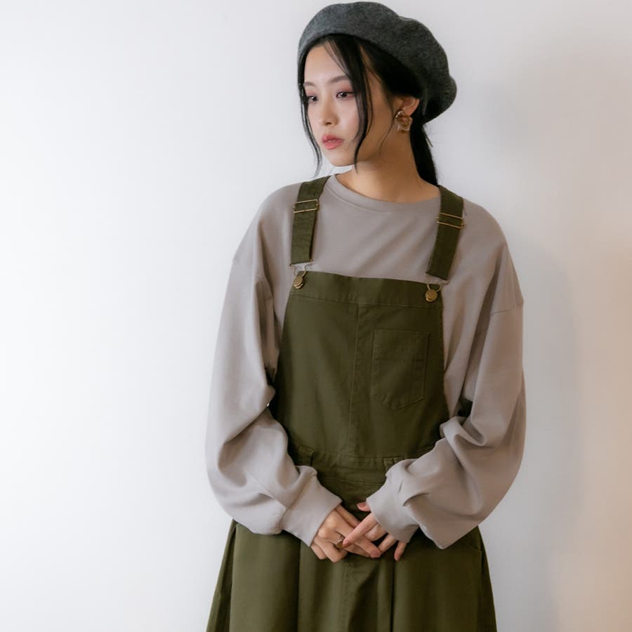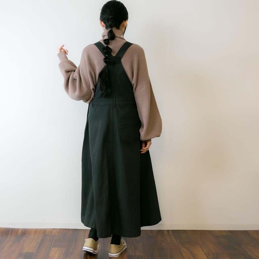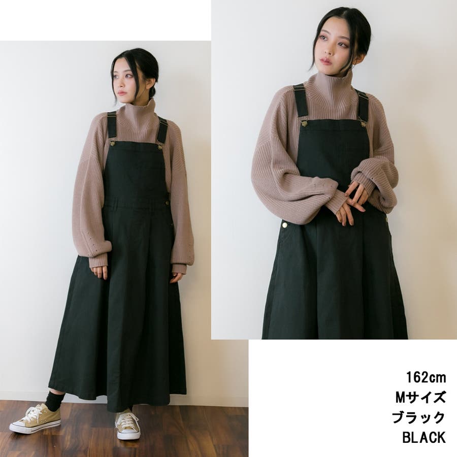 ウエスト周りがカバーできる、ゆったりサイズのサロペットスカート。