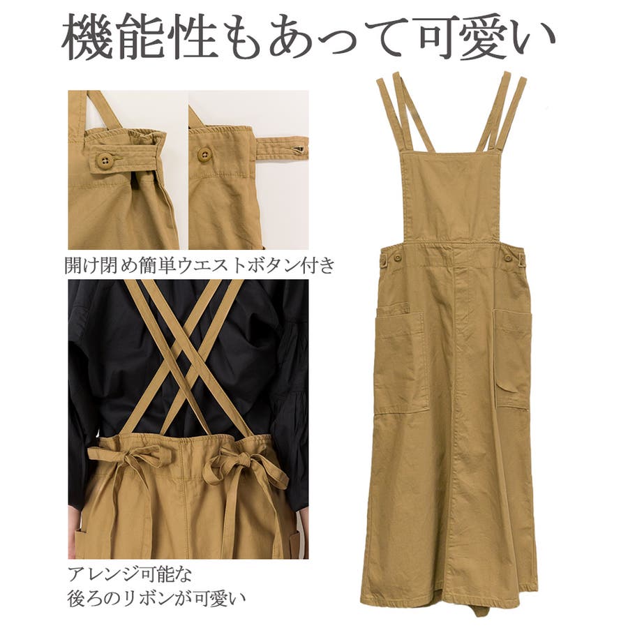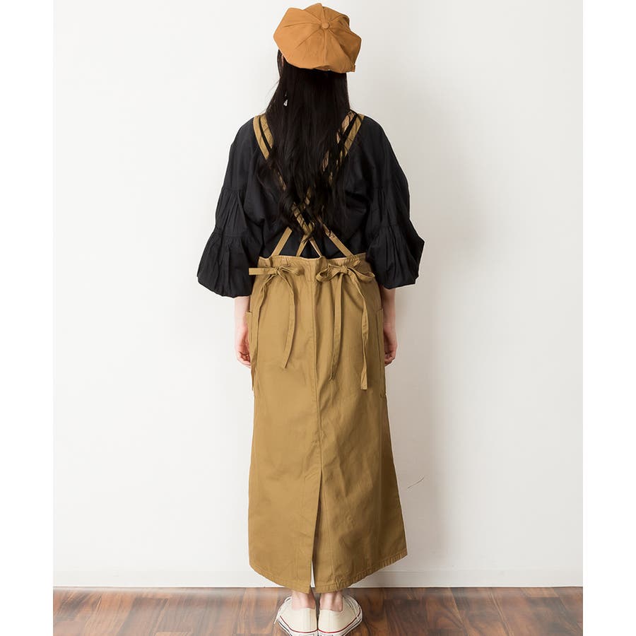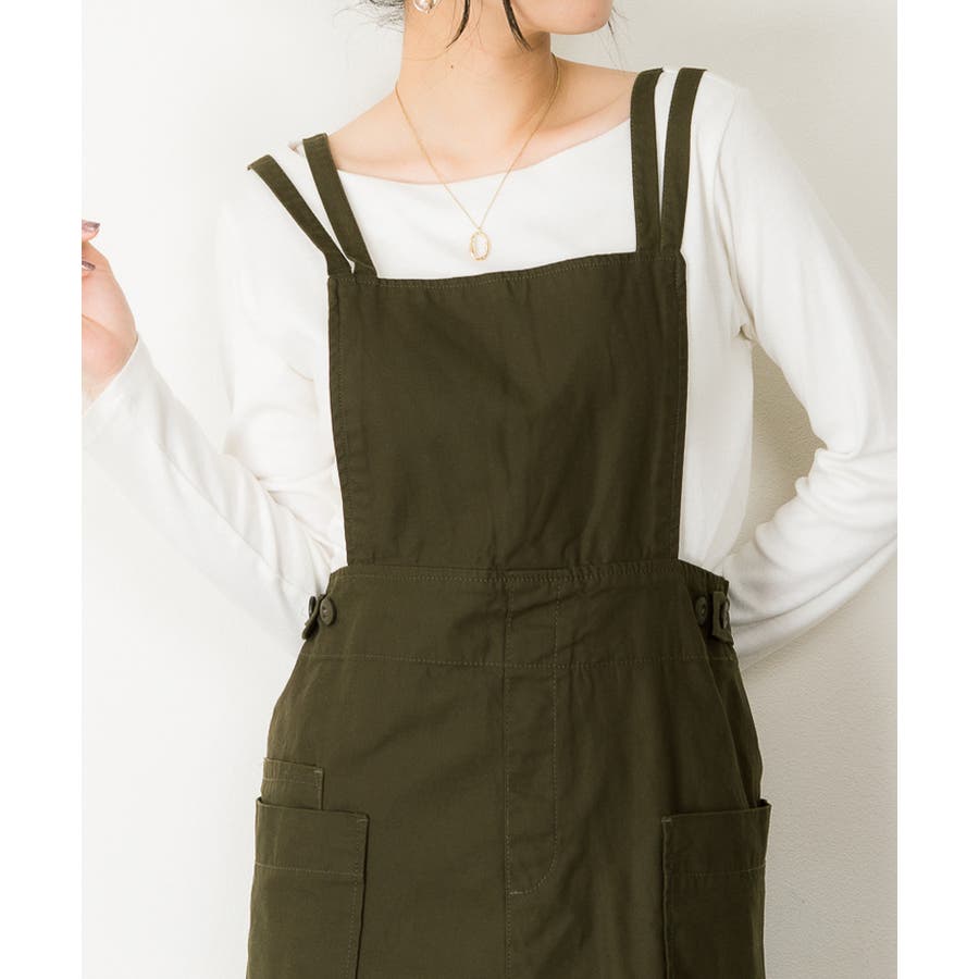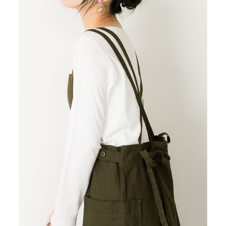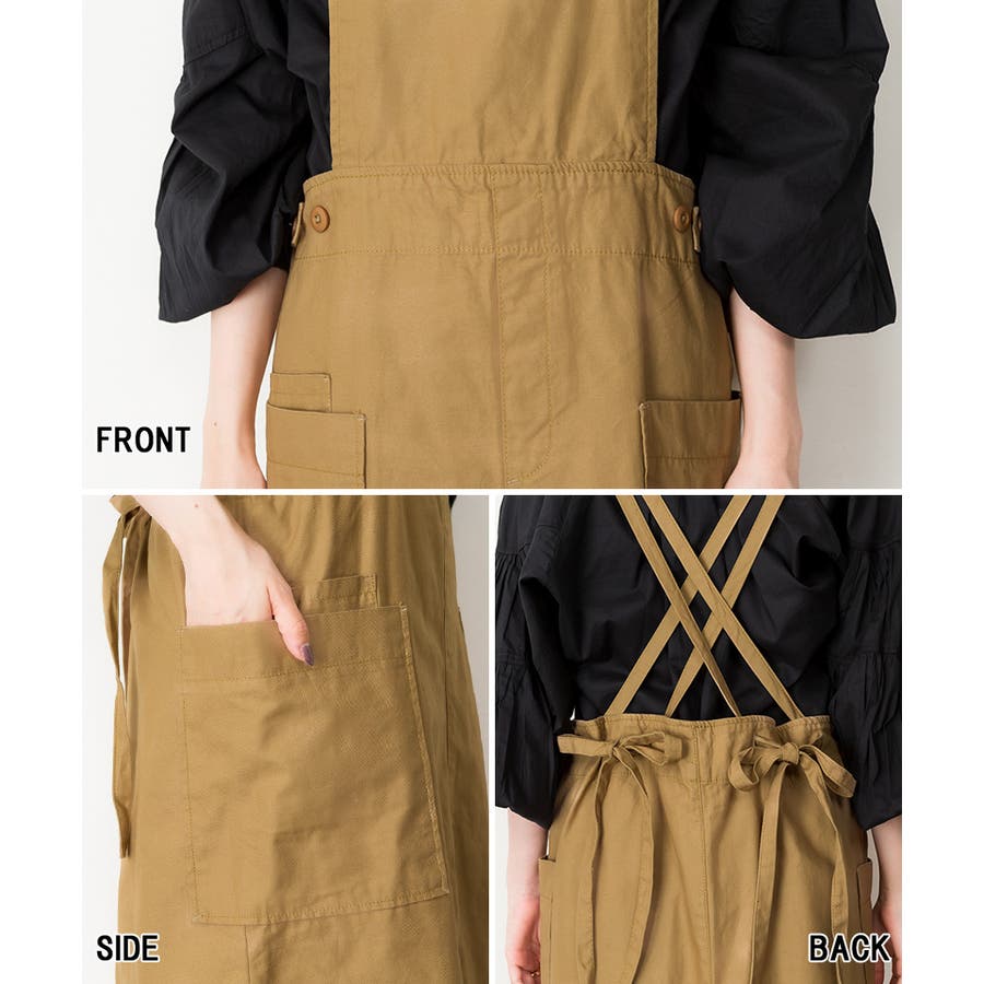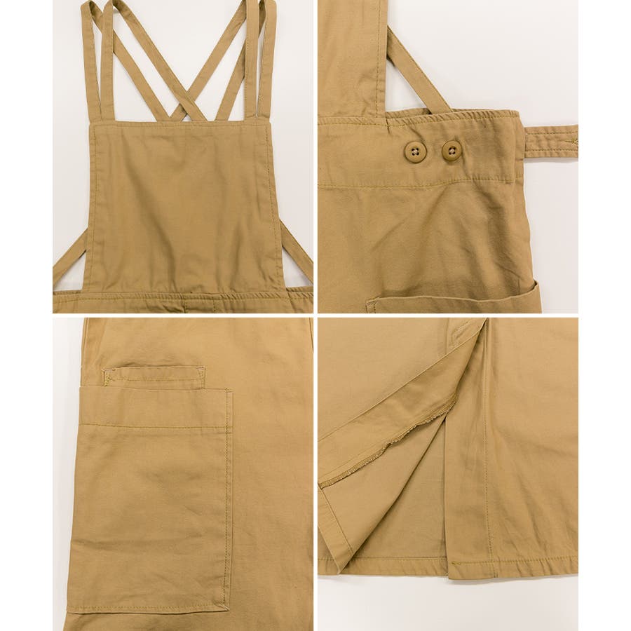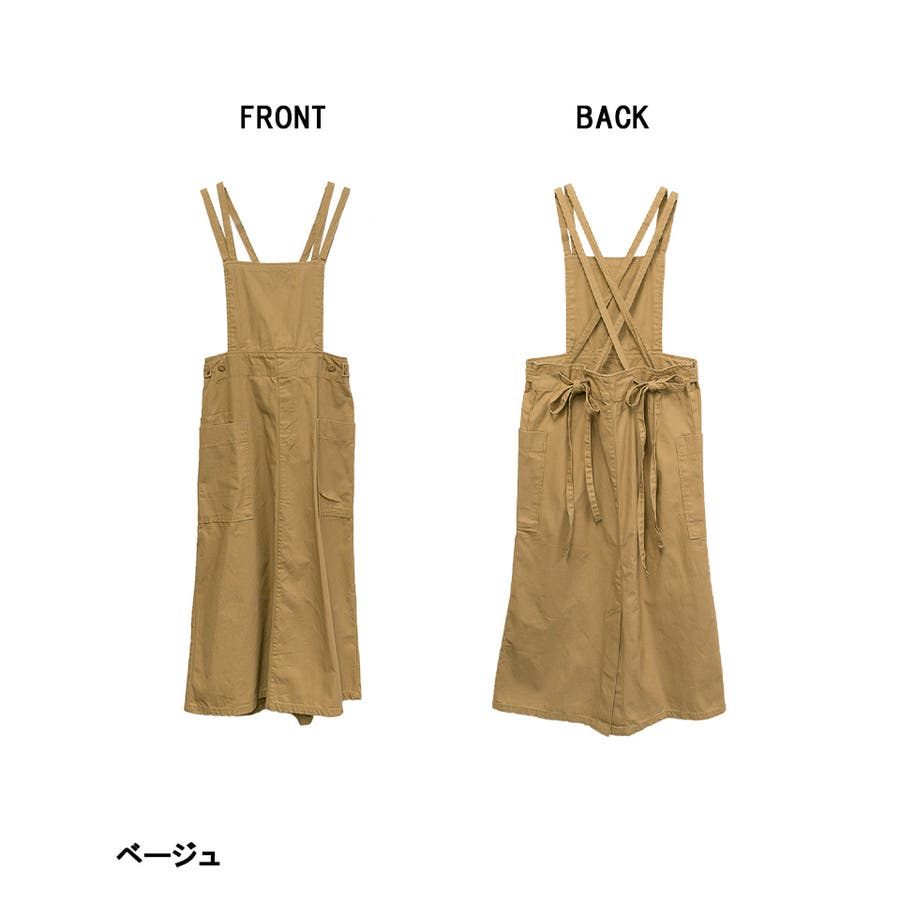 【ベージュ】ツイルエプロンサロペットスカート