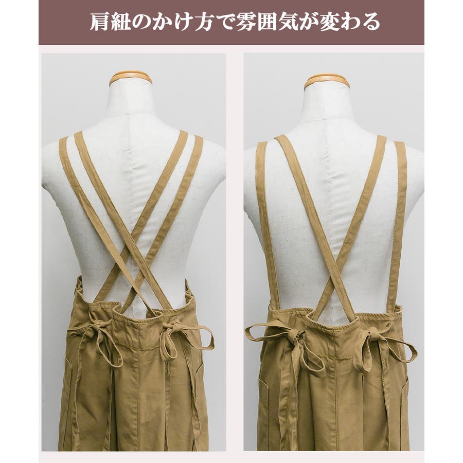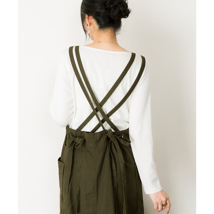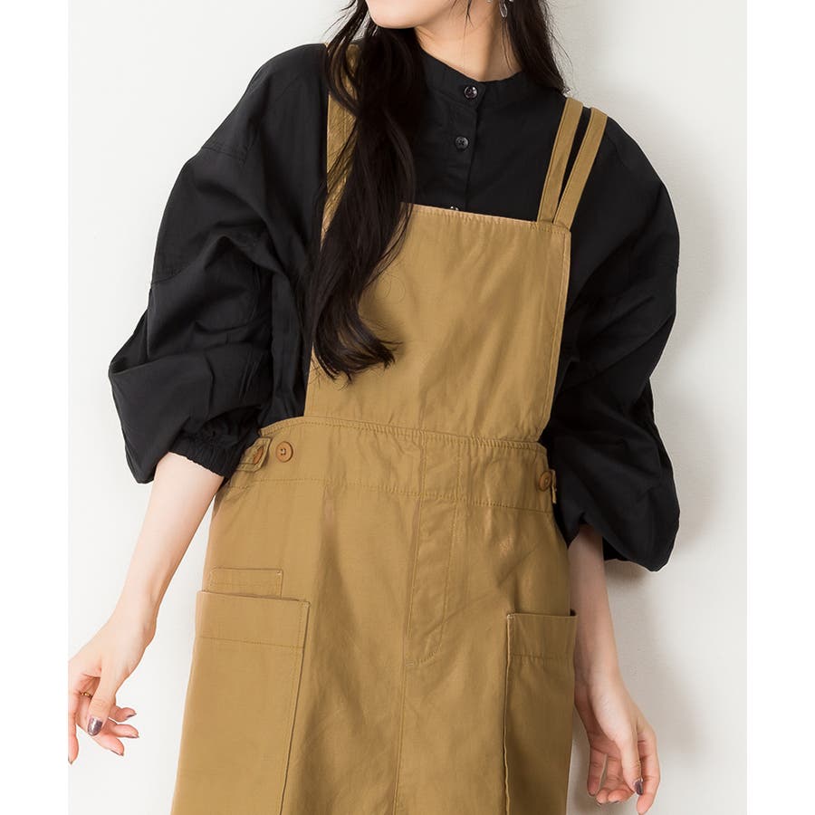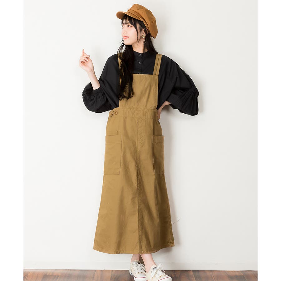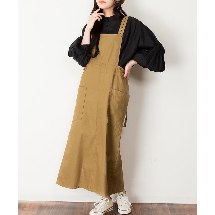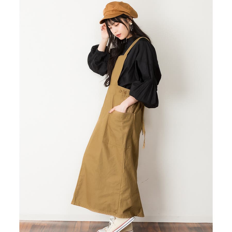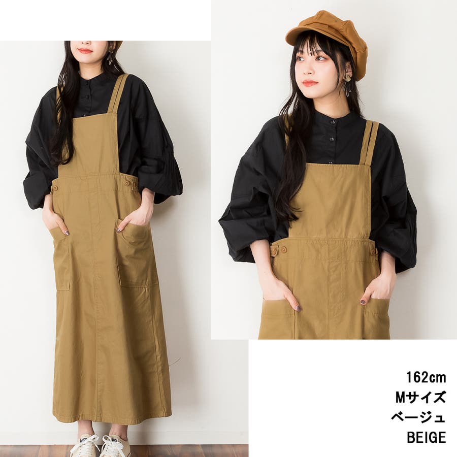 【ベージュ】ツイルエプロンサロペットスカート