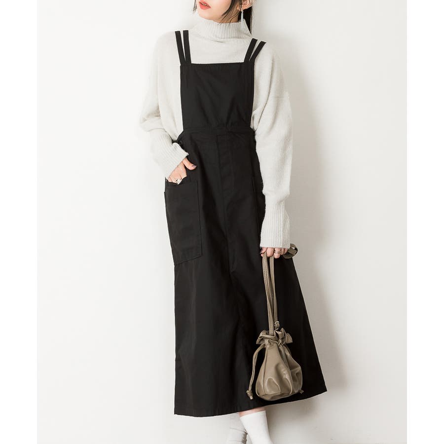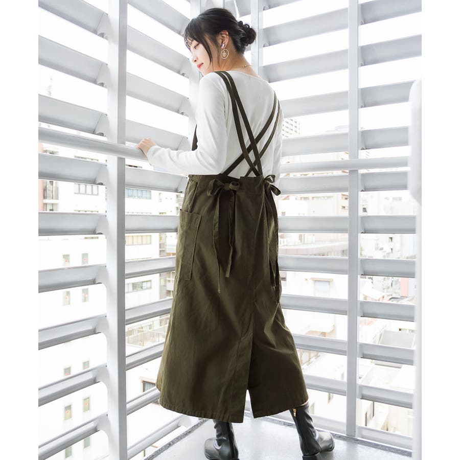 大人っぽく着こなせるロング丈のサロペットスカート。