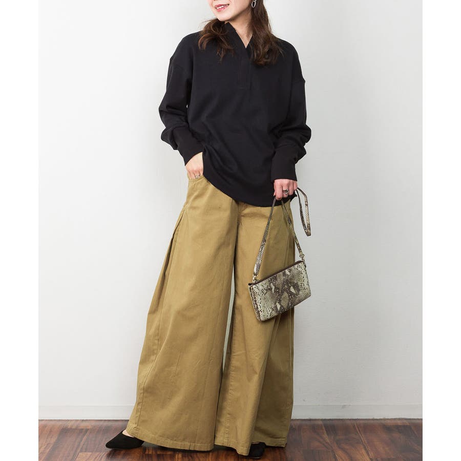 目を引くワイドシルエットがこなれ感あるスタイリングに仕上げます。