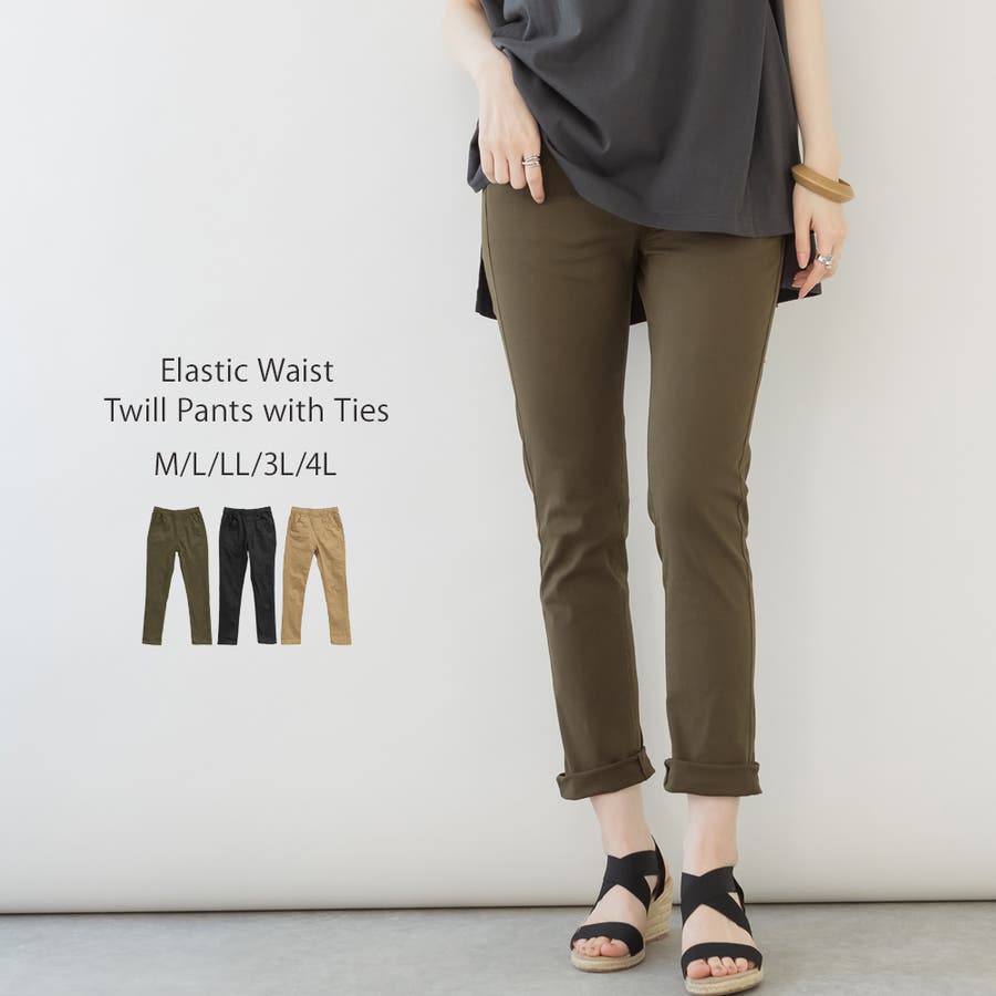 紐付きウエストゴムツイルパンツ