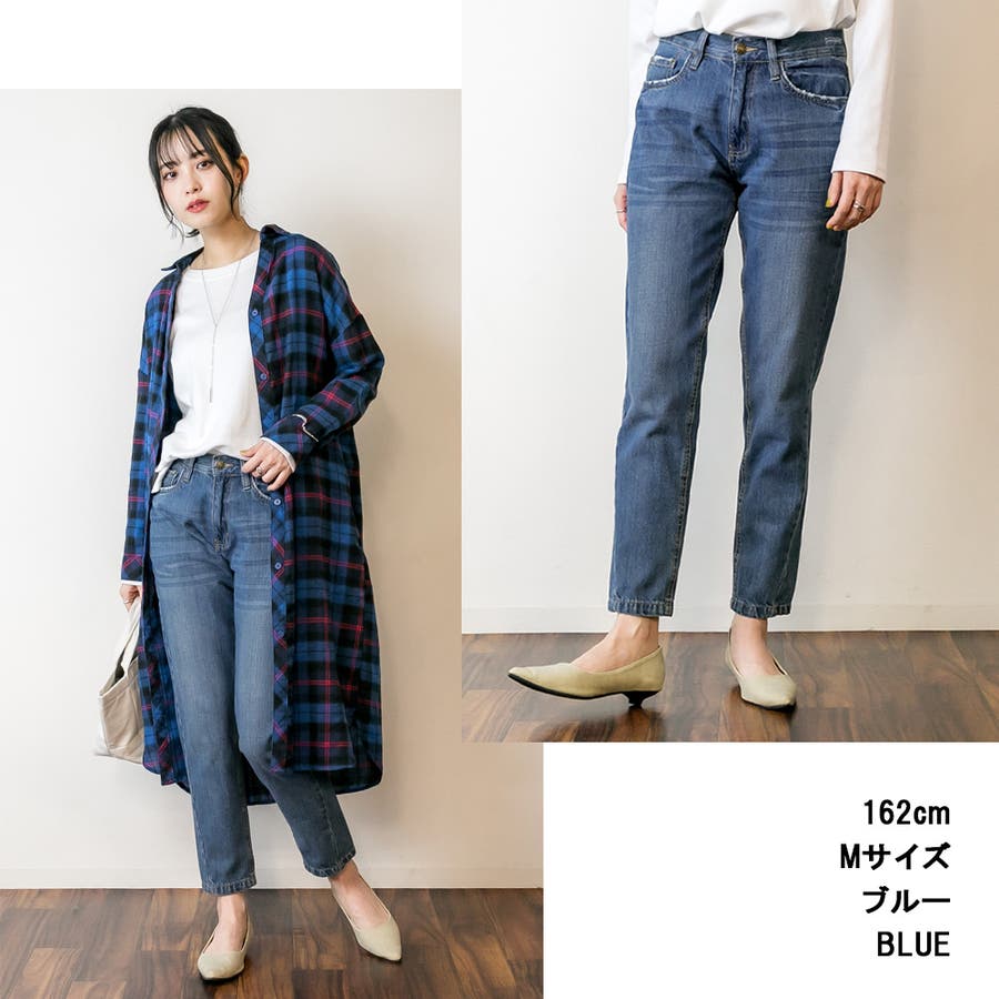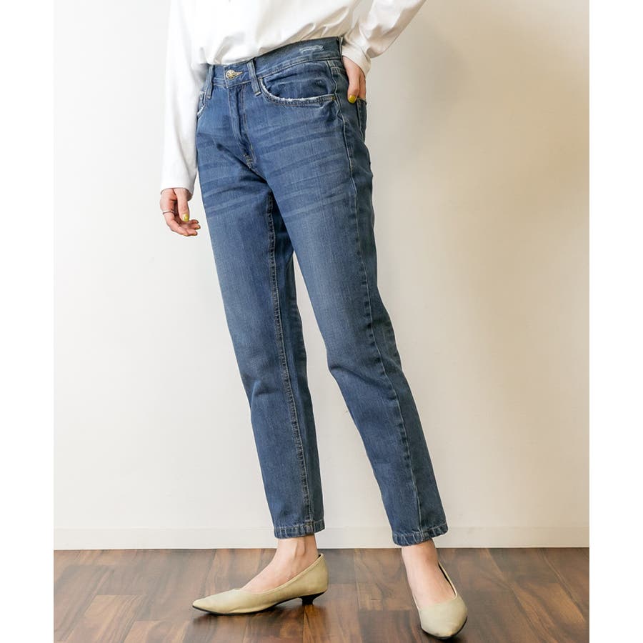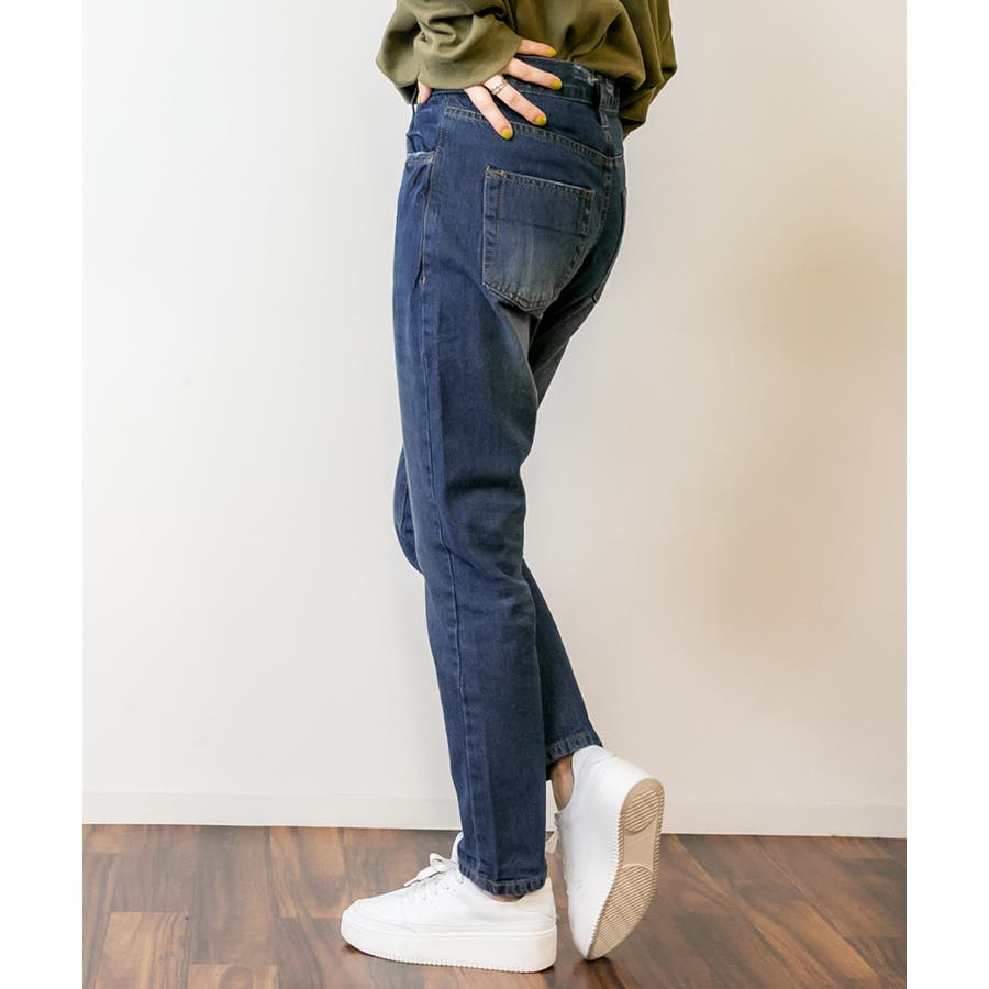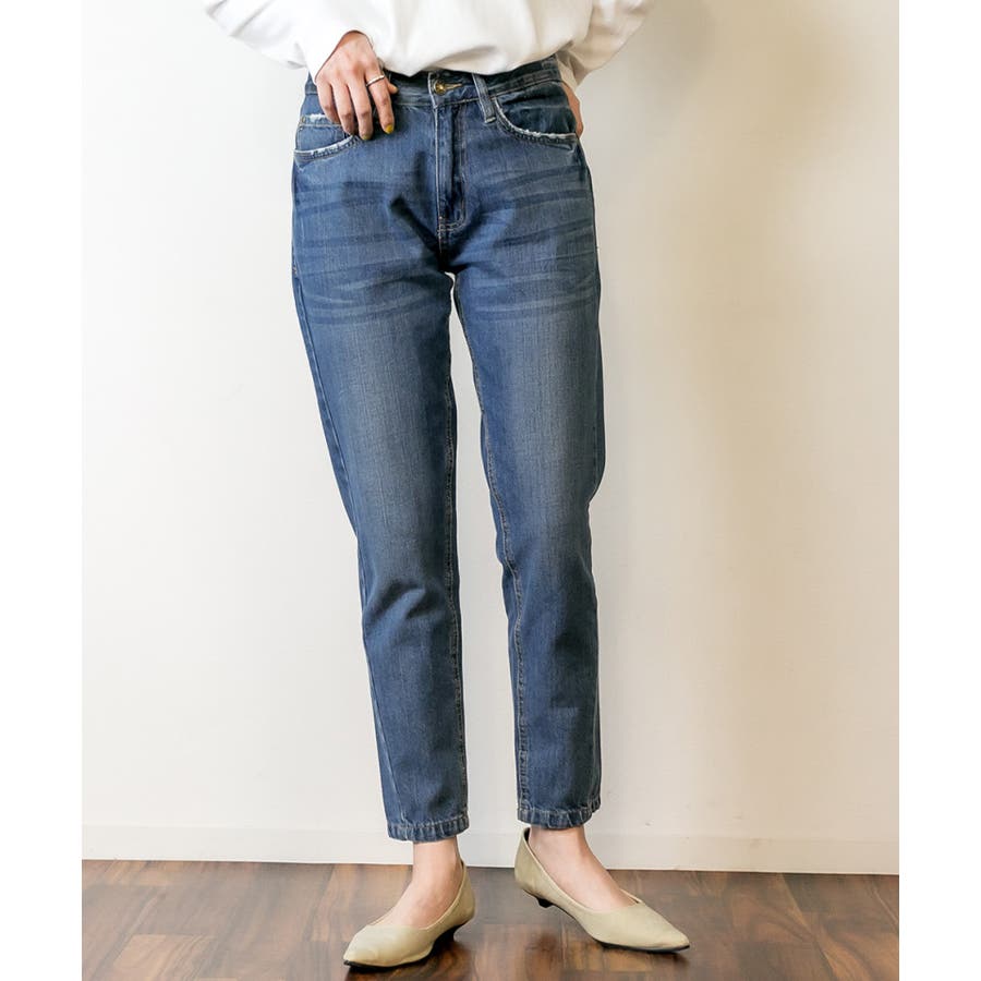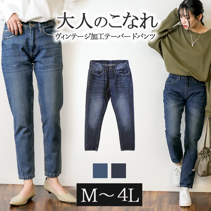 女性らしい綺麗なシルエットが完成するテーパードパンツは、1本は持っておいて損はないデニムです。
