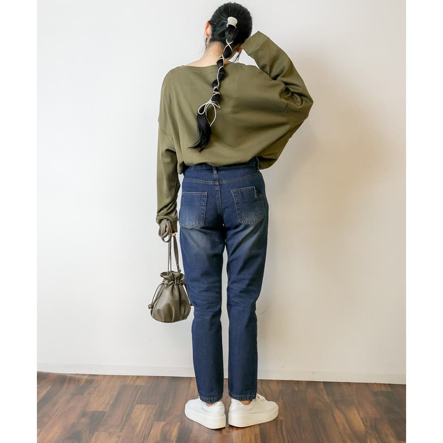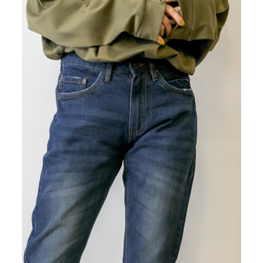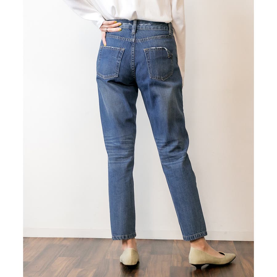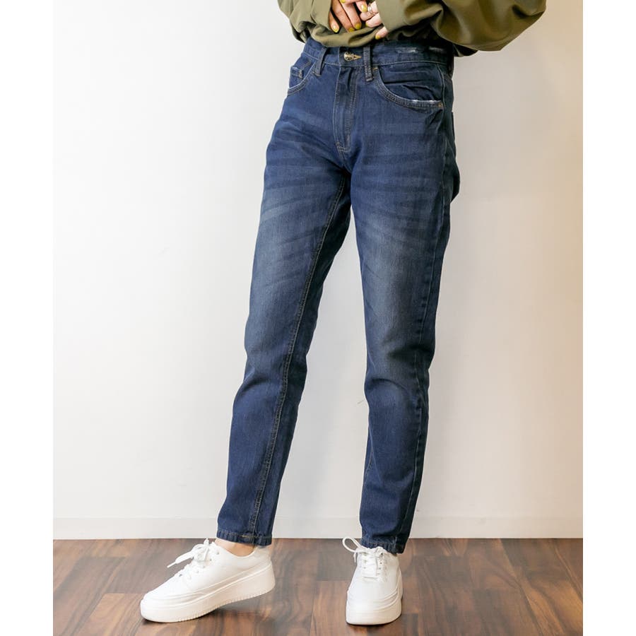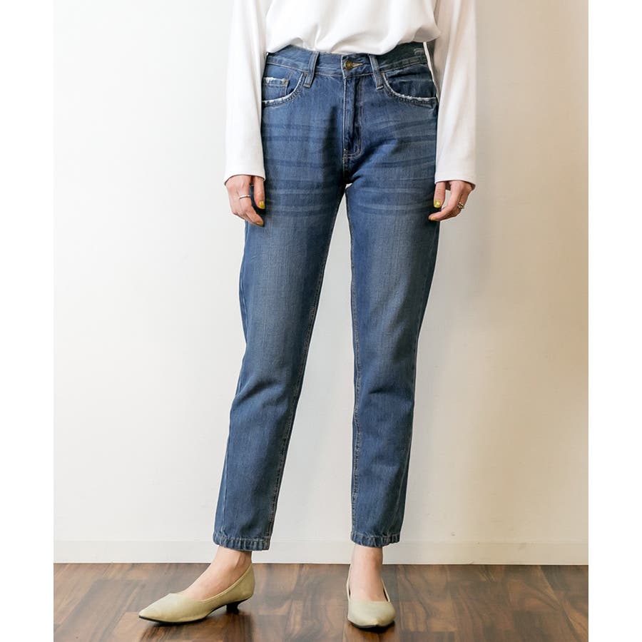 女性らしい綺麗なシルエットが完成するテーパードパンツは、1本は持っておいて損はないデニムです。