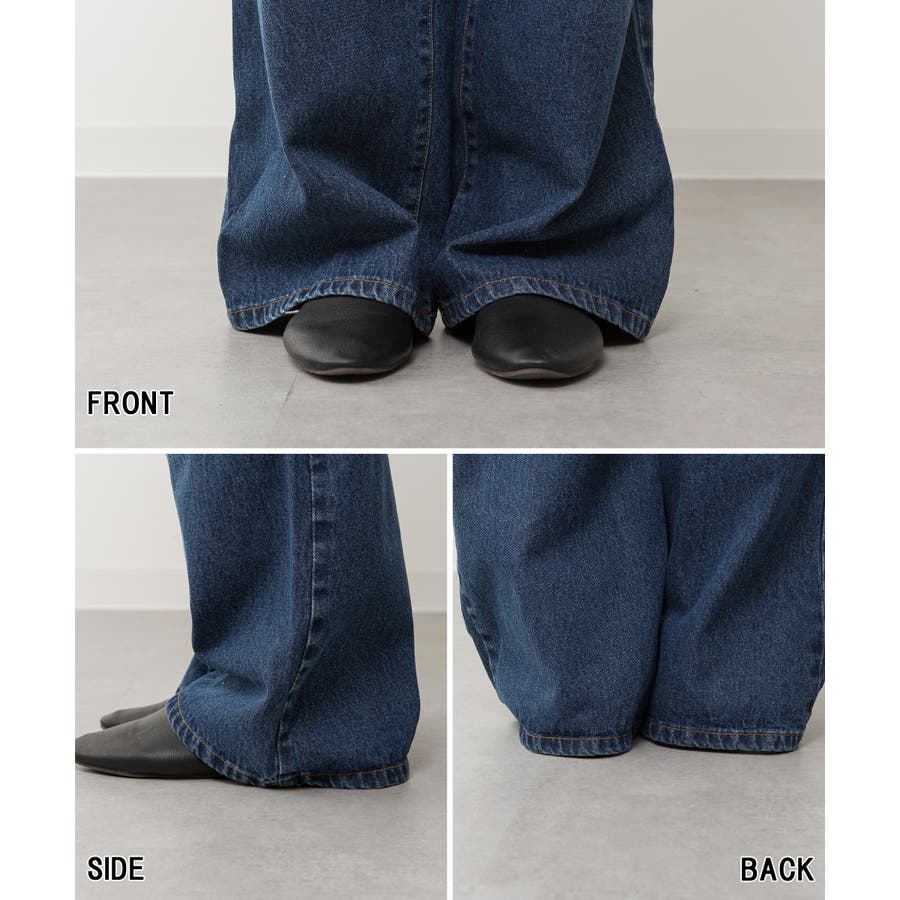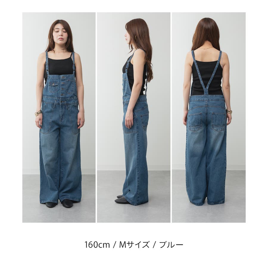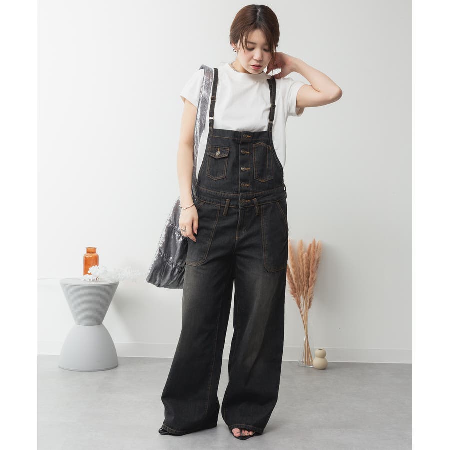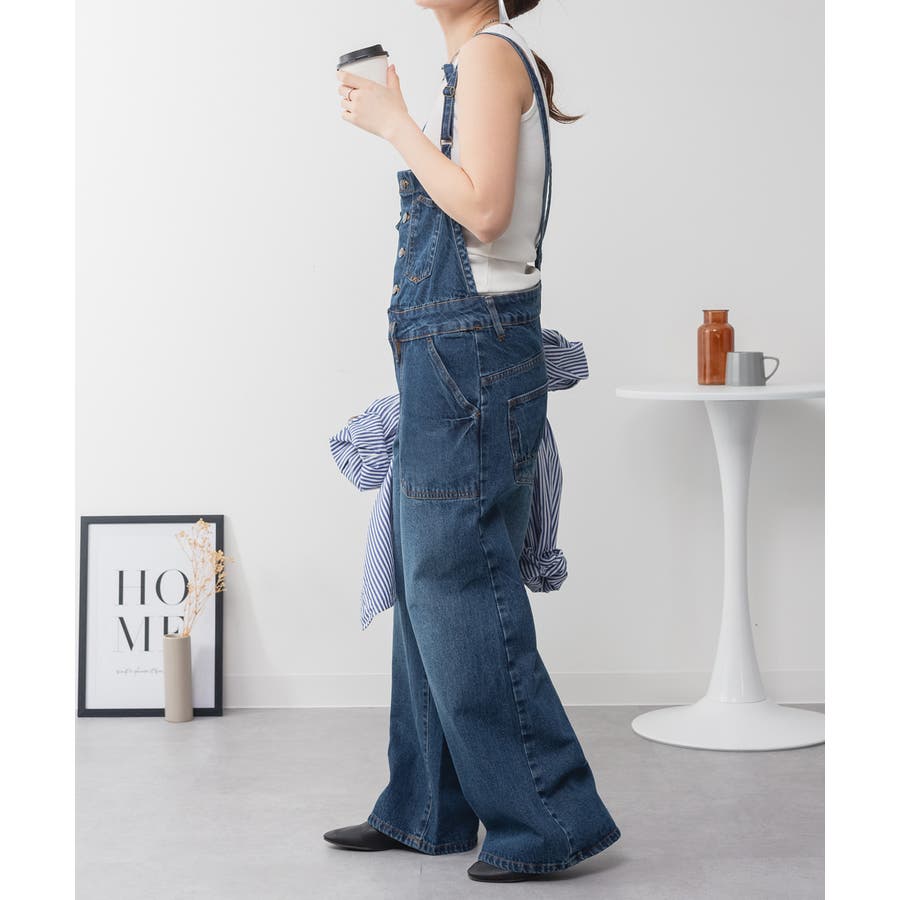 ワイドシルエットなボトムでトレンドをおさえた仕上がり♪ポケットやボタン等こだわりのディテールを詰め込んだ綿100%の本格デニムながら、穿き心地の良さも追及!サイドポケット・バックポケットあり。ストラップで着丈の調節が可能です。少しゆったりとしたサイズ感がルーズで「こなれ感」たっぷりのアイテムです。