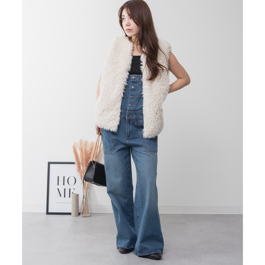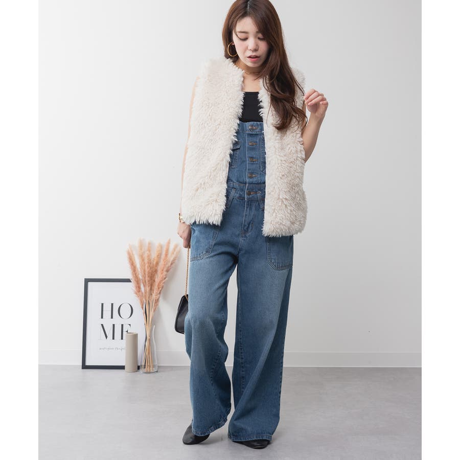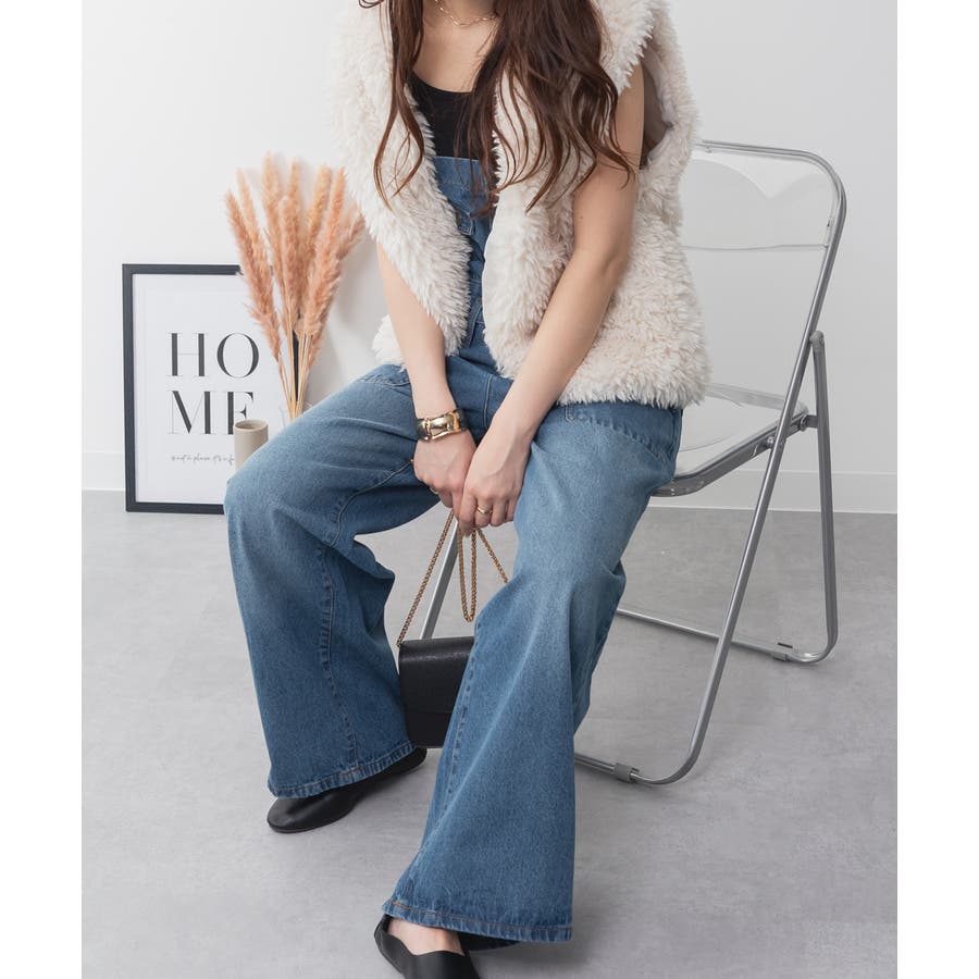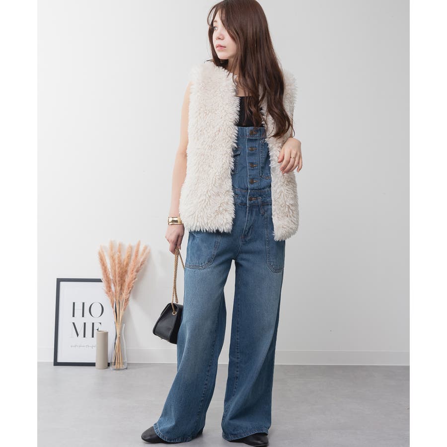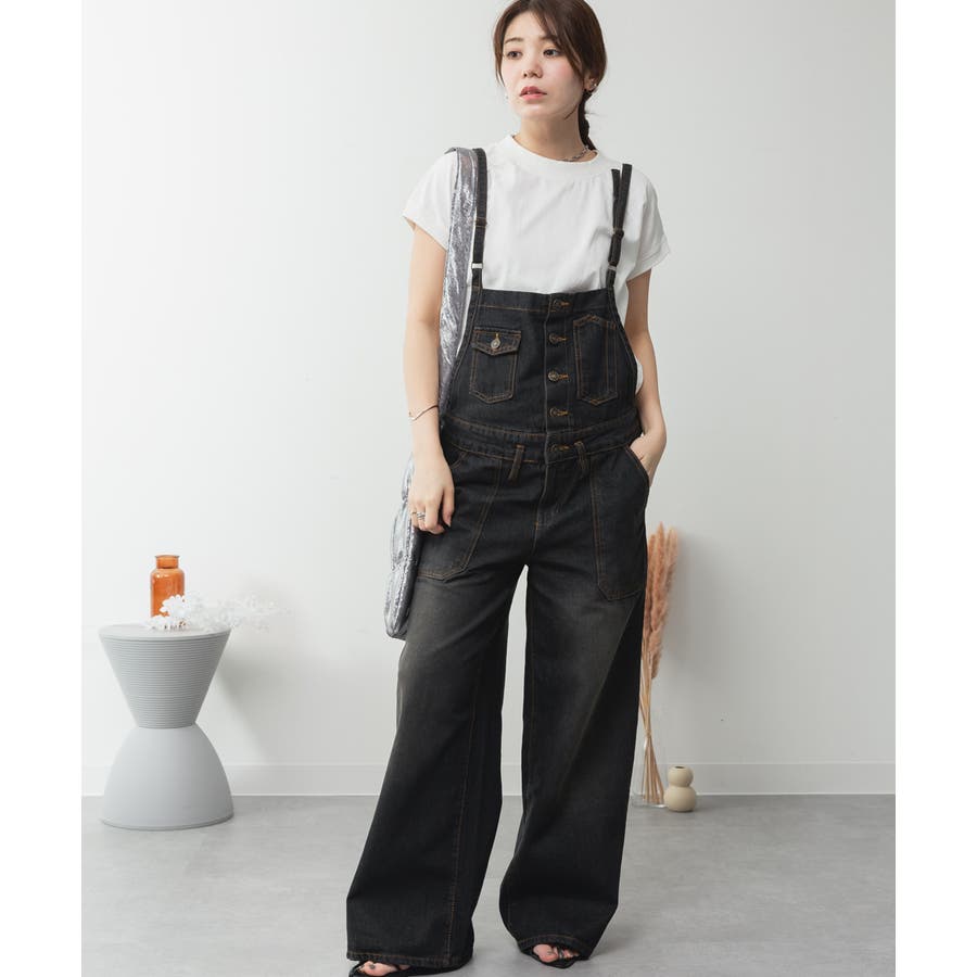 ワイドシルエットなボトムでトレンドをおさえた仕上がり♪ポケットやボタン等こだわりのディテールを詰め込んだ綿100%の本格デニムながら、穿き心地の良さも追及!サイドポケット・バックポケットあり。ストラップで着丈の調節が可能です。少しゆったりとしたサイズ感がルーズで「こなれ感」たっぷりのアイテムです。