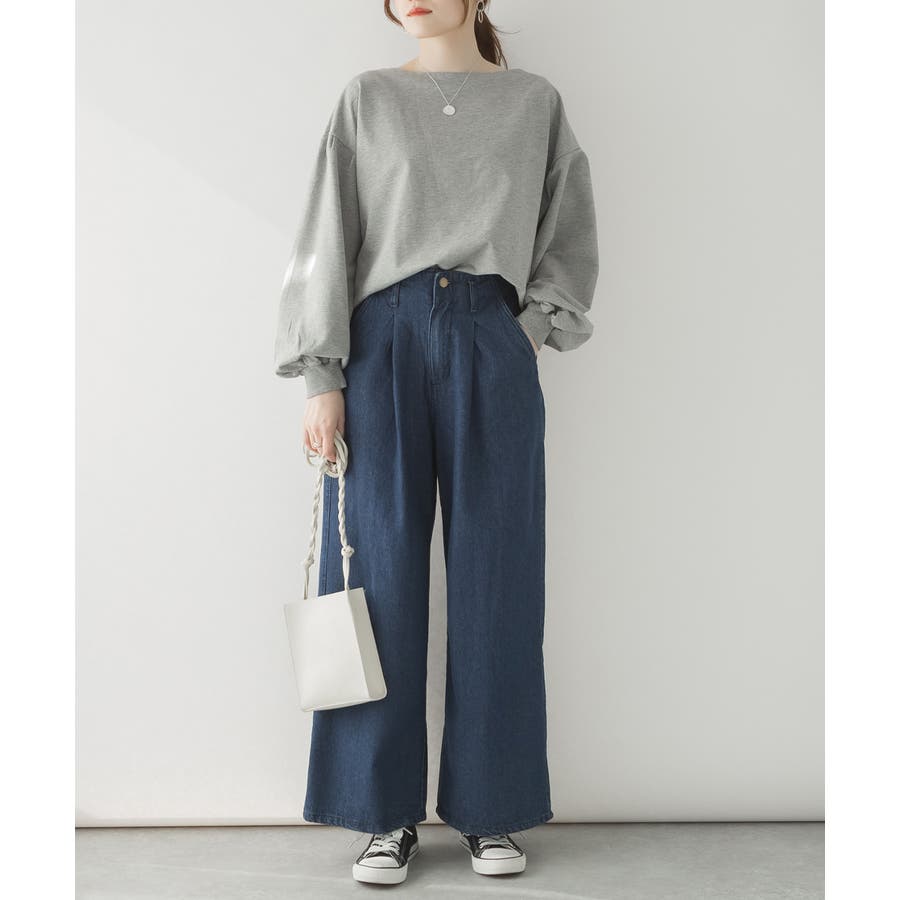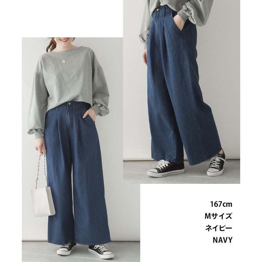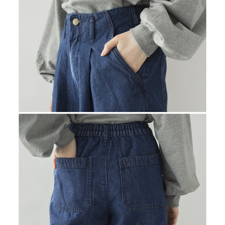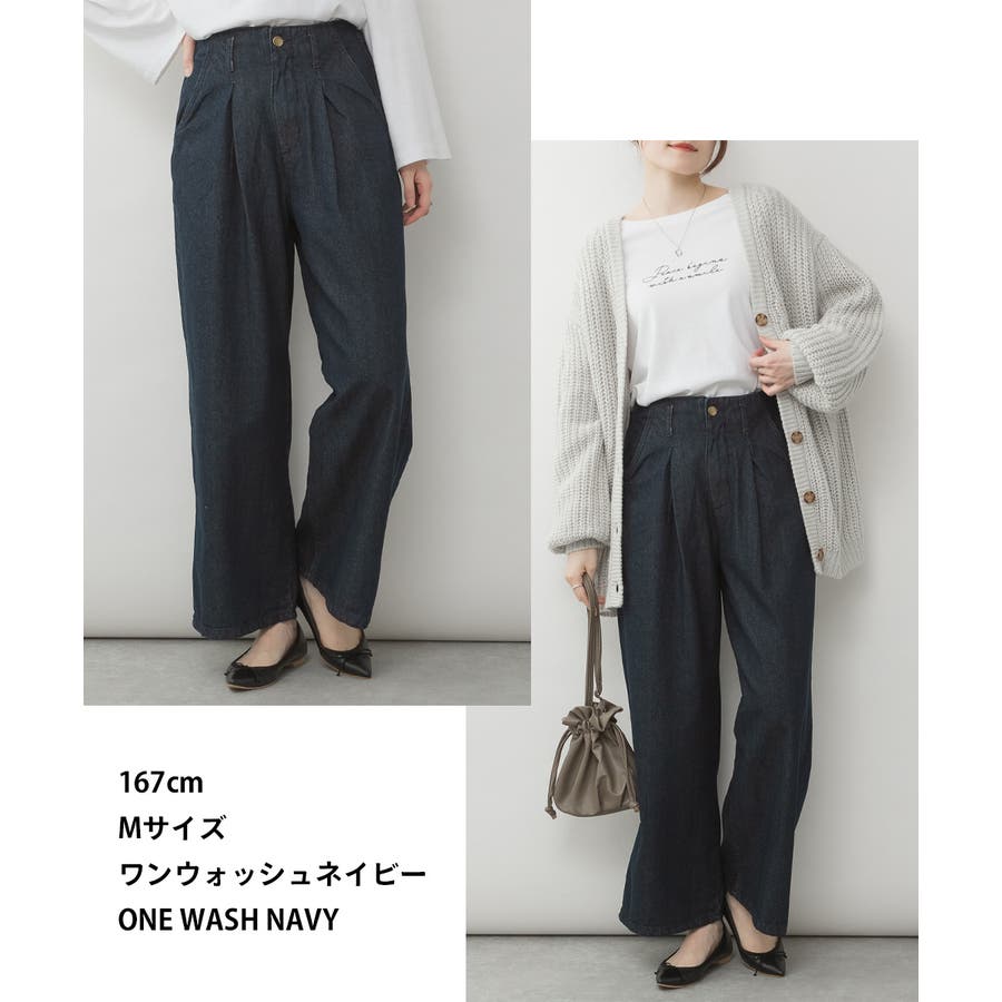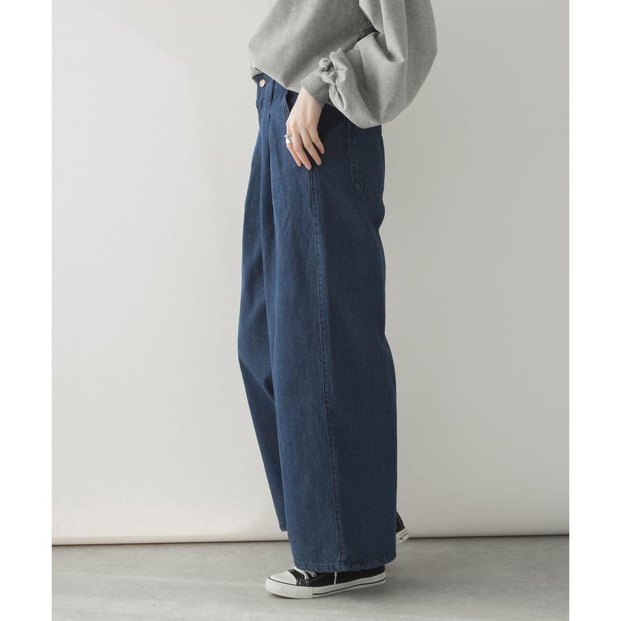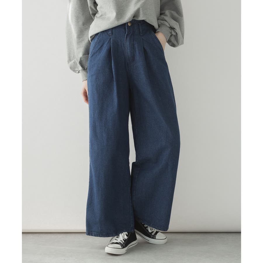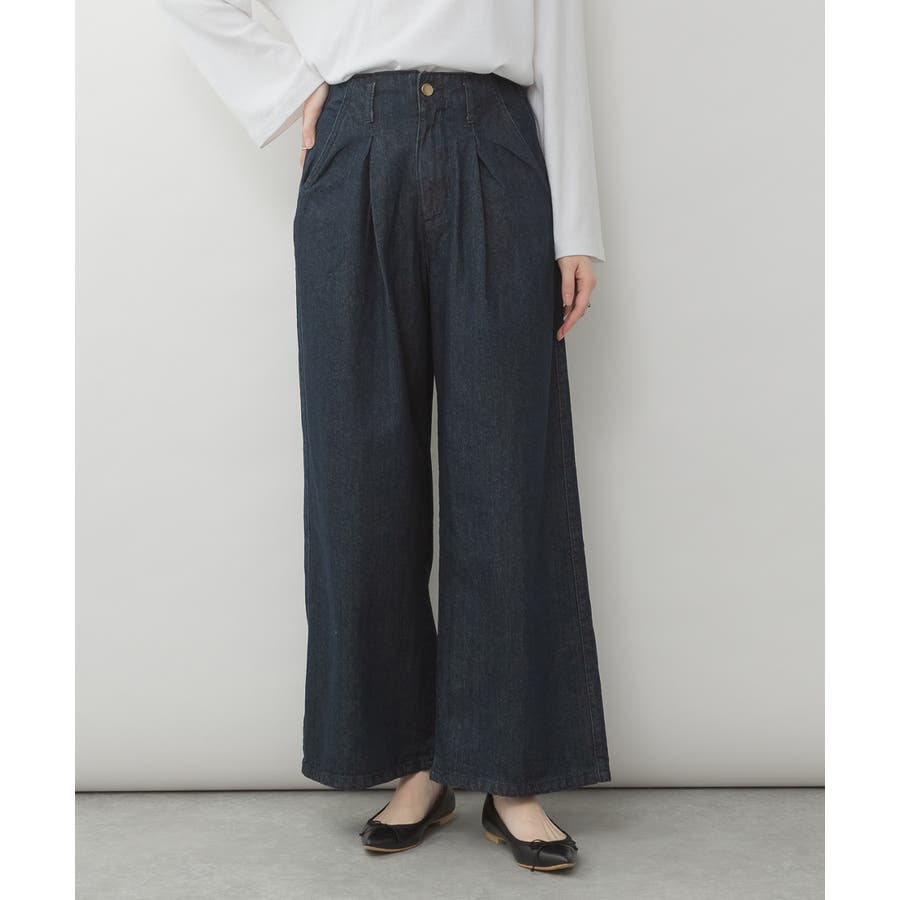 ウエストタックハイウエストワイドデニムパンツ デニム パンツ