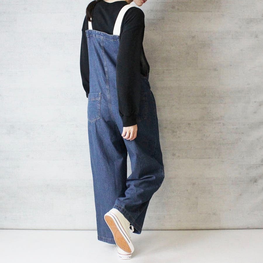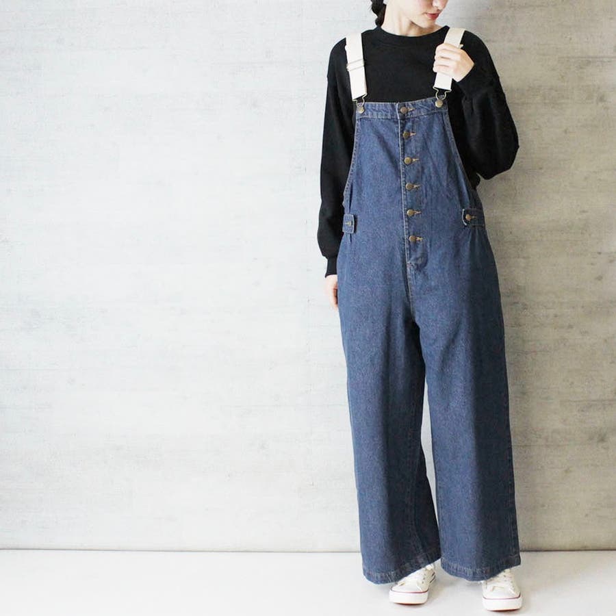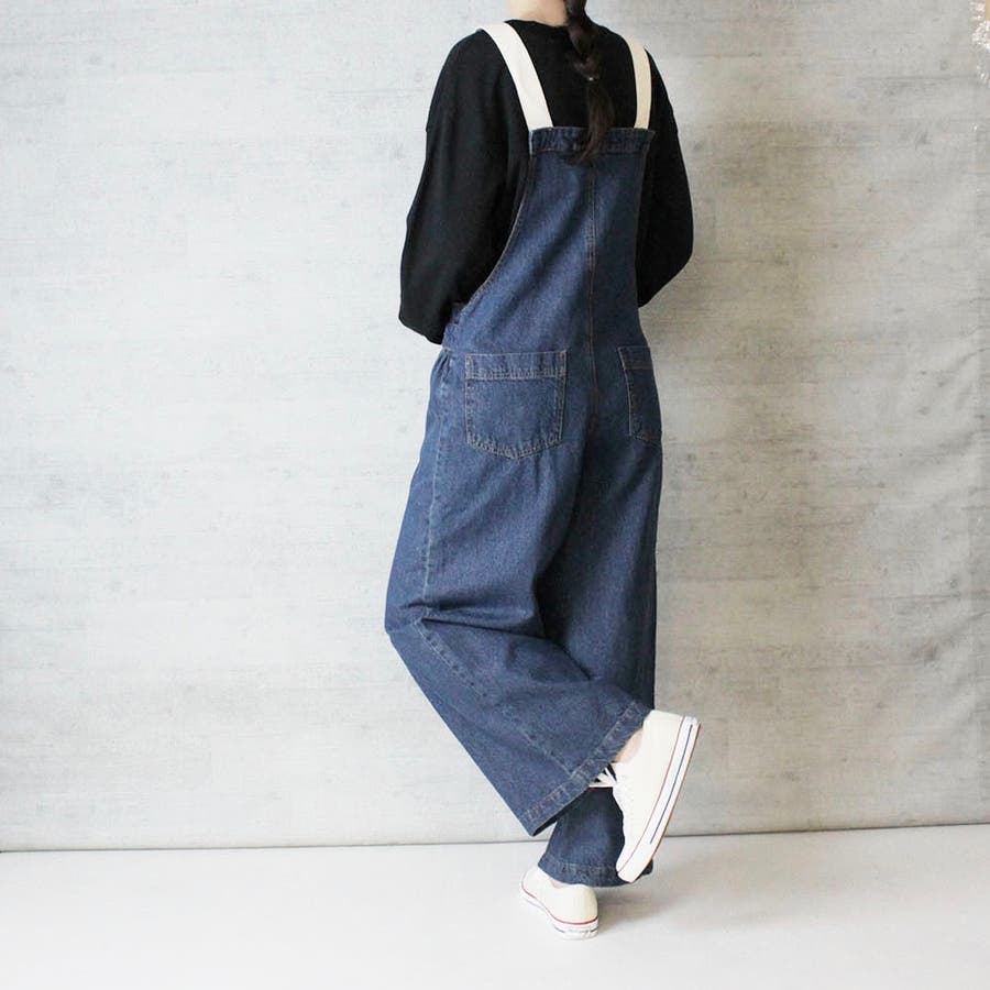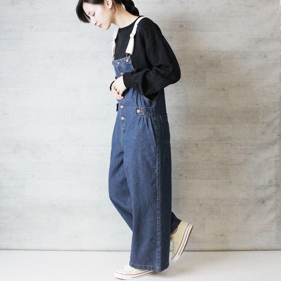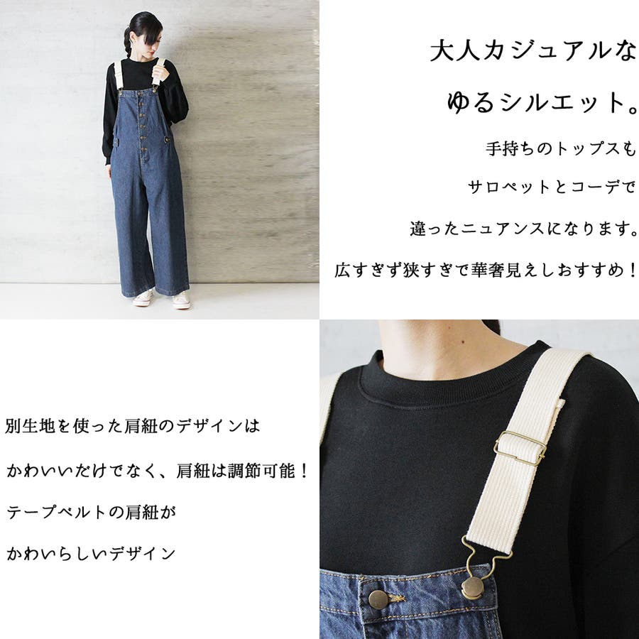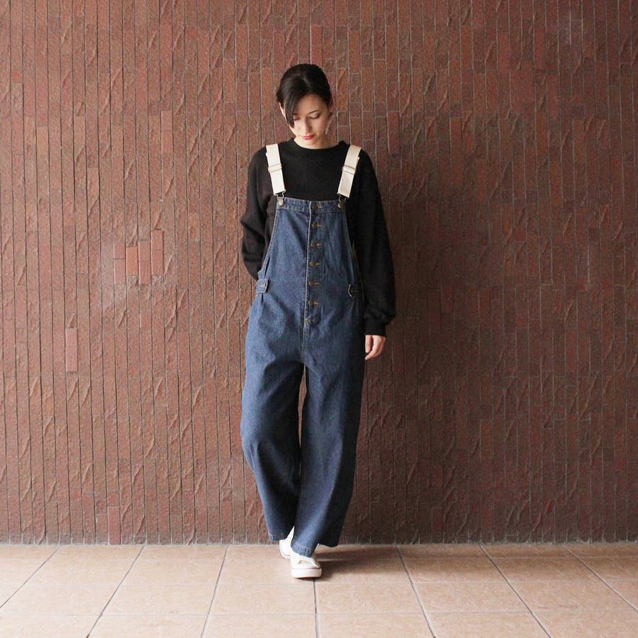 大人カジュアルなゆるシルエット。手持ちのトップスもサロペットとコーデで違ったニュアンスになります。広すぎず狭すぎで華奢見えしおすすめ!