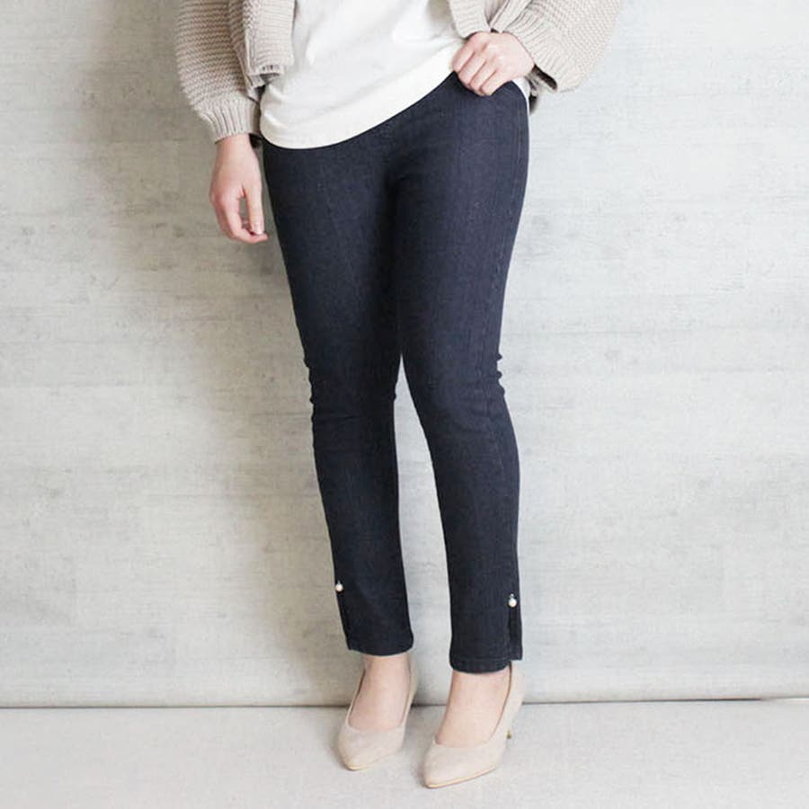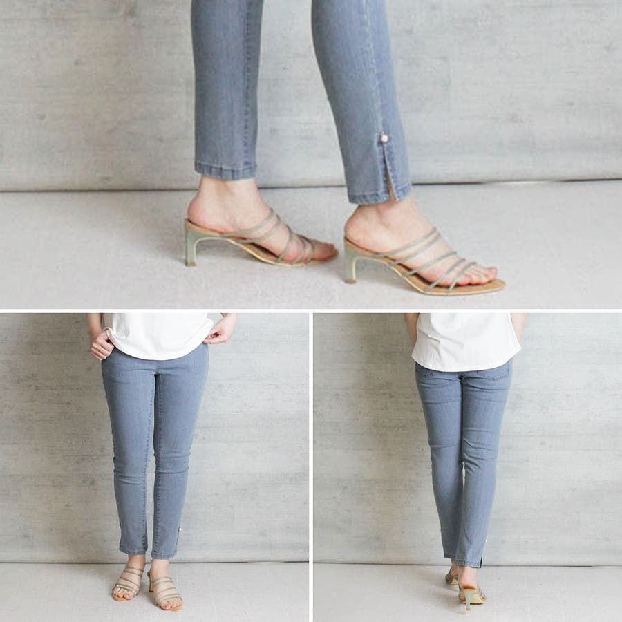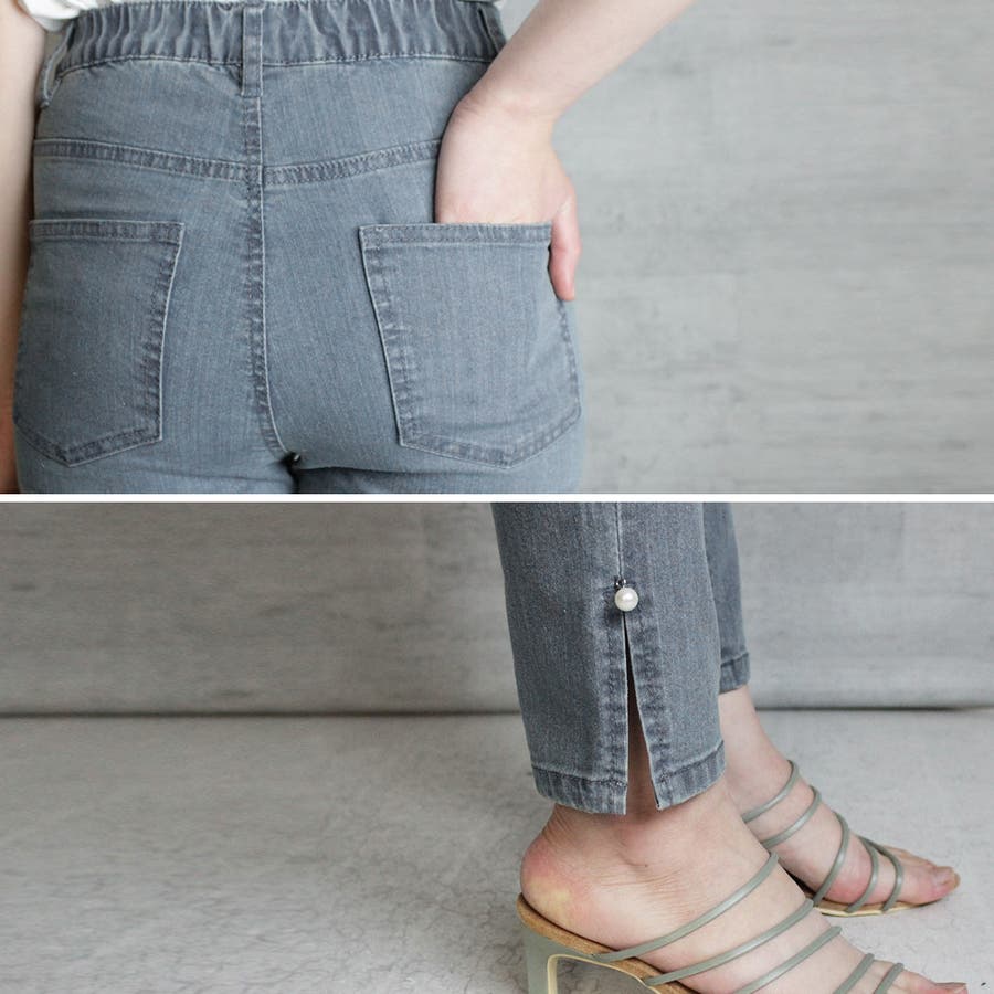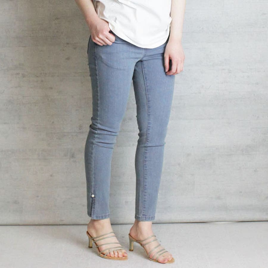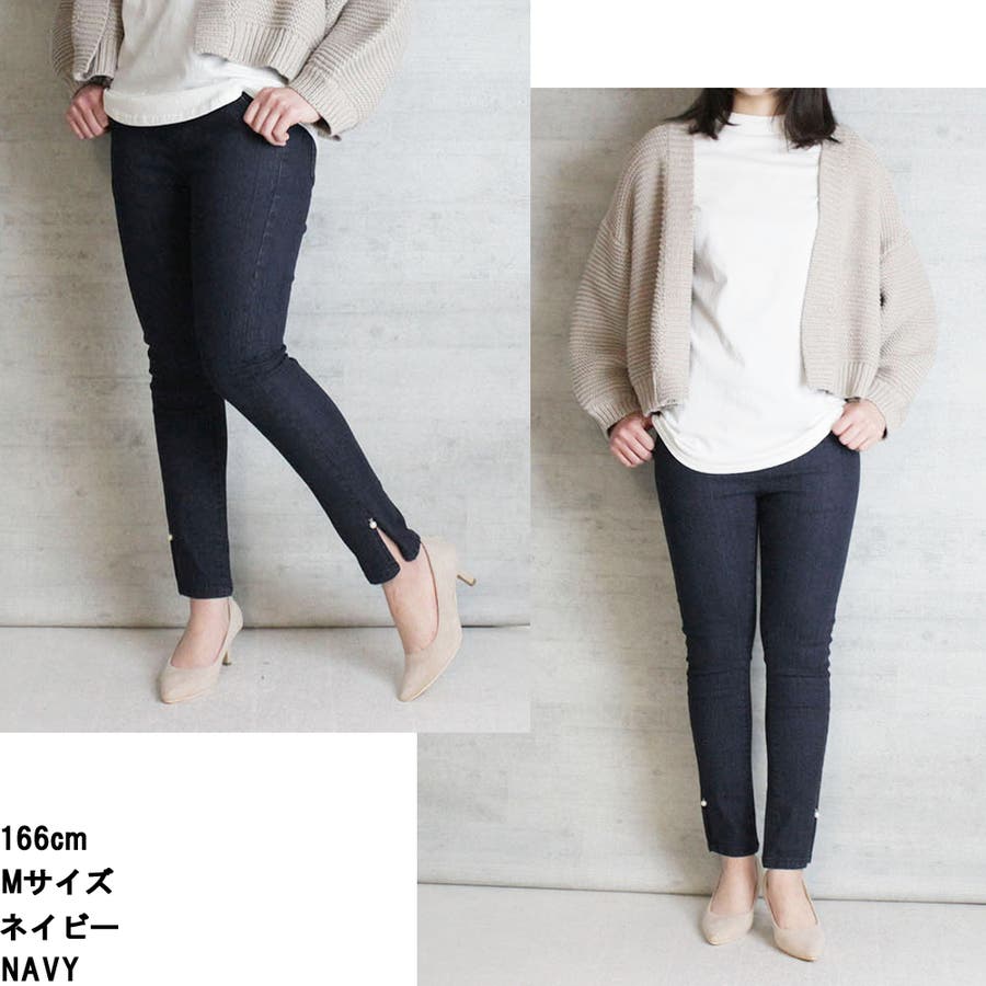 裾に入ったスリットとパールがついている大人可愛いスキニーパンツ♪