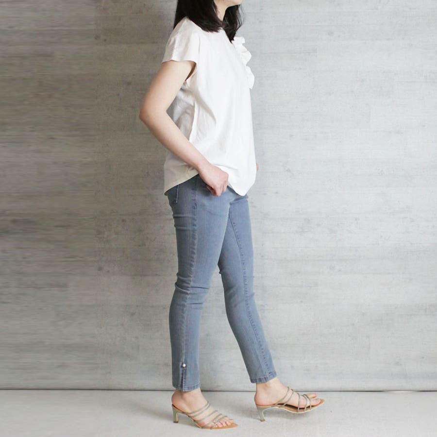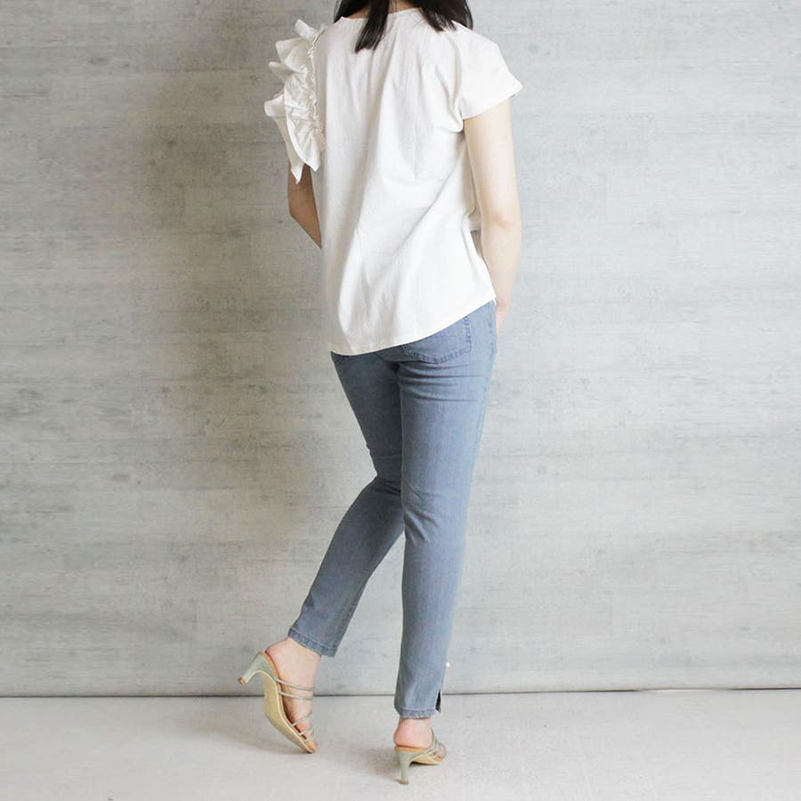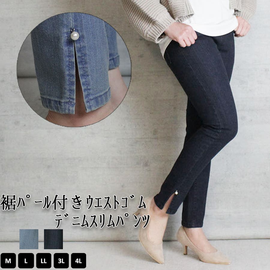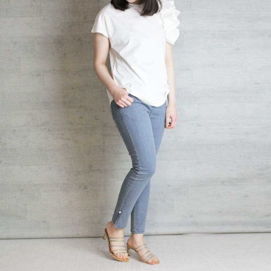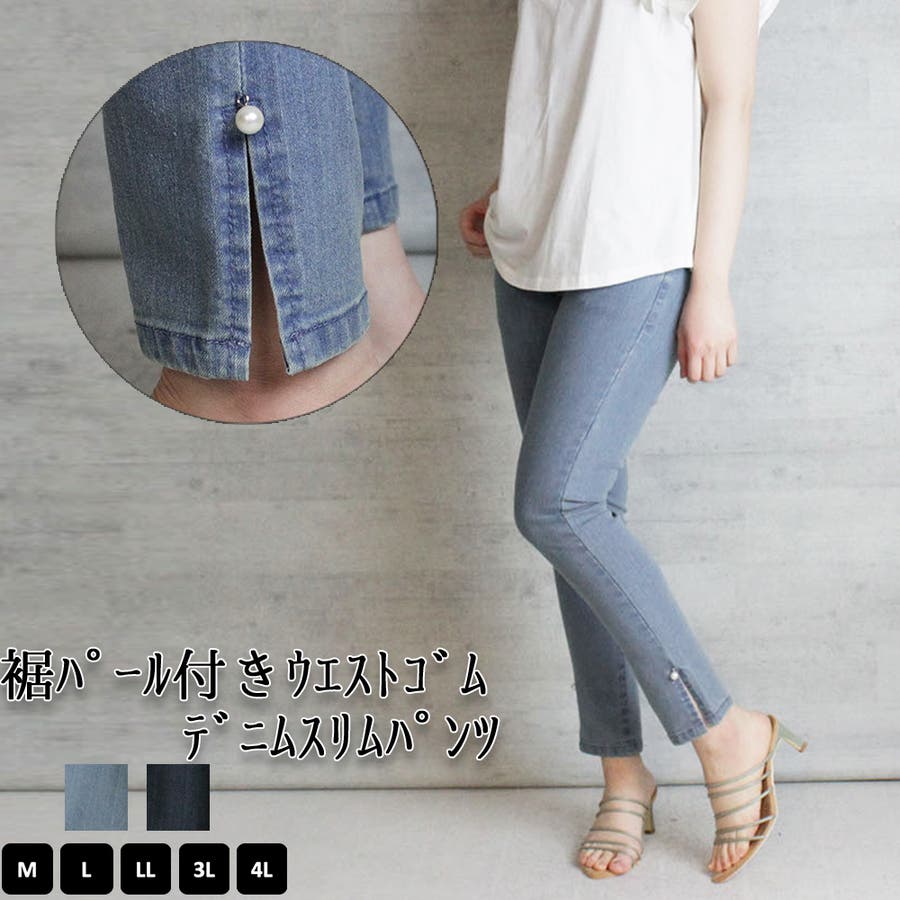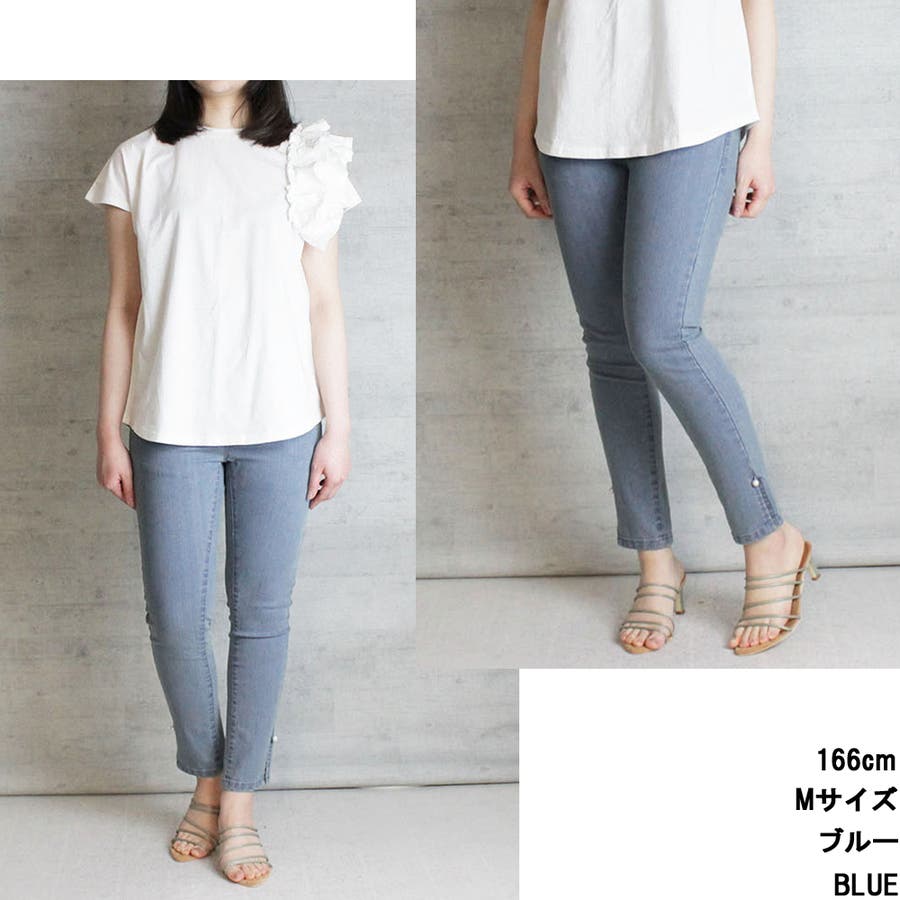 裾に入ったスリットとパールがついている大人可愛いスキニーパンツ♪